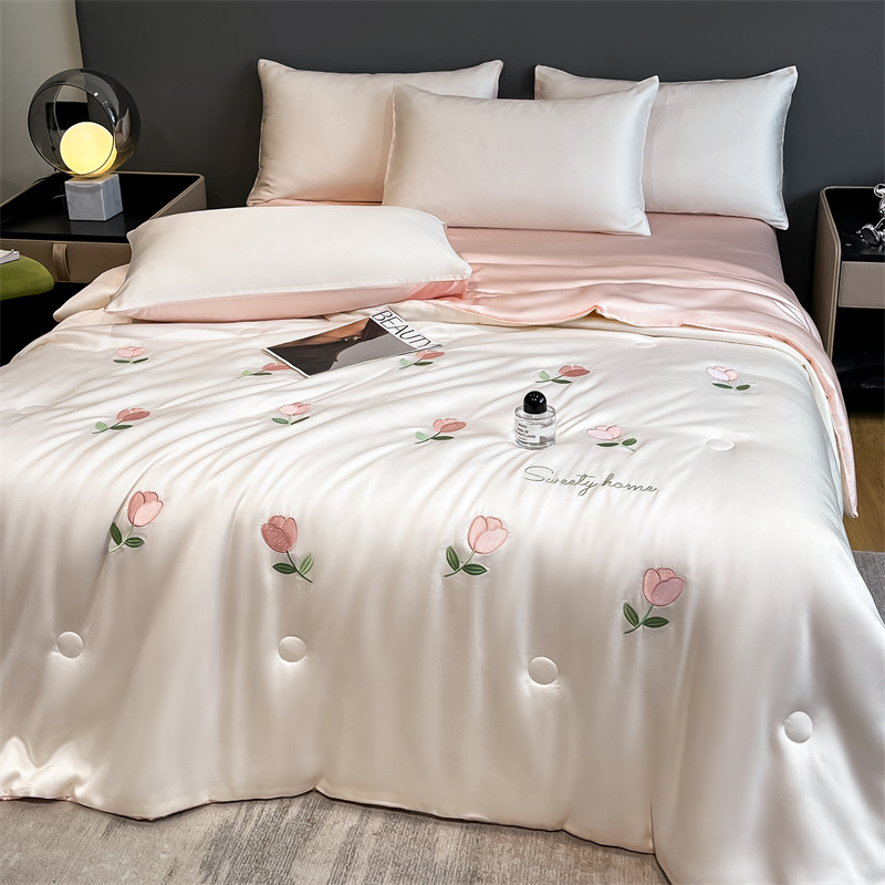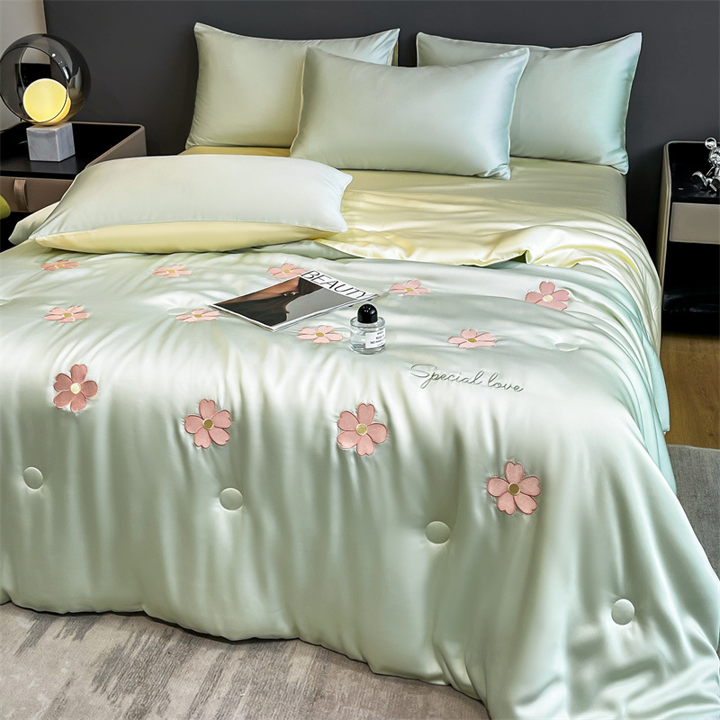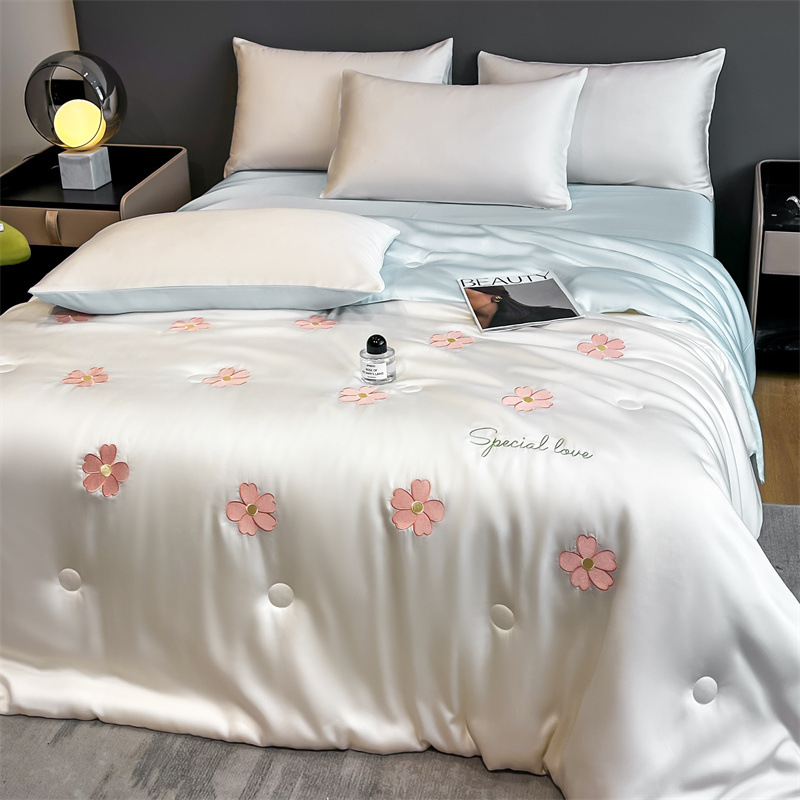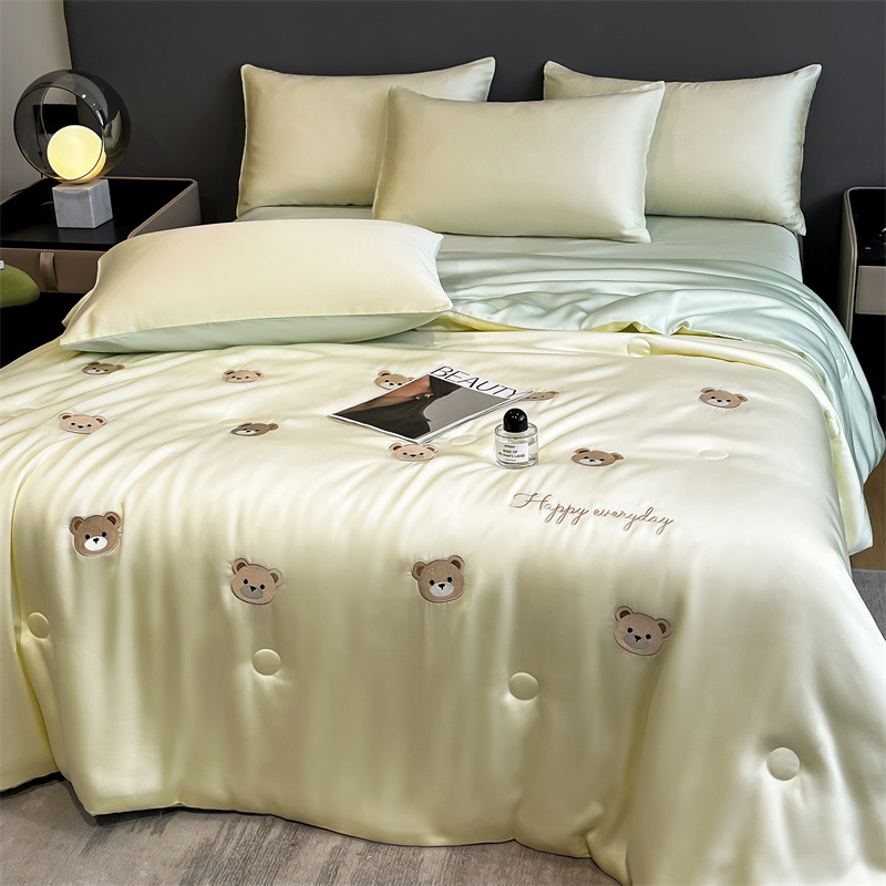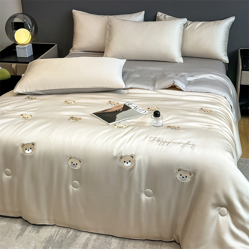 卡通夏季凉感空调被 水洗冰丝刺绣夏凉被四件套 夏被单双人薄被子