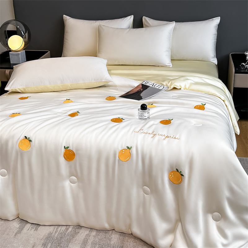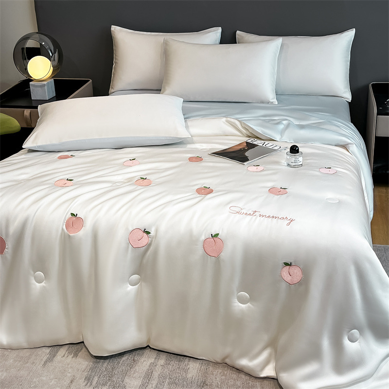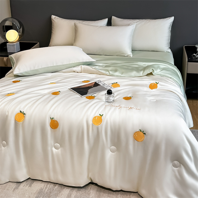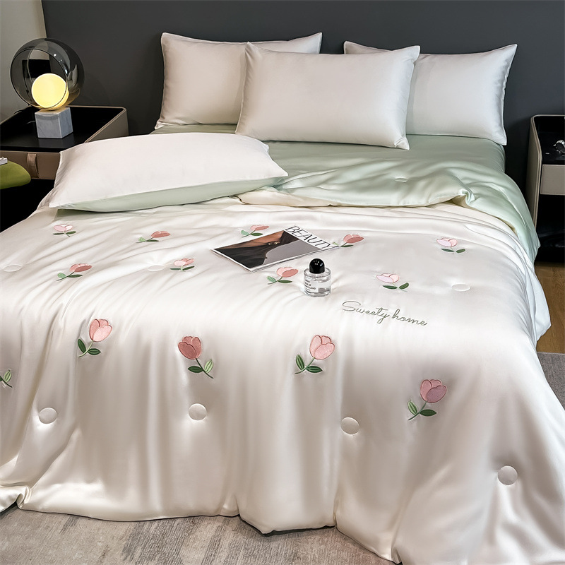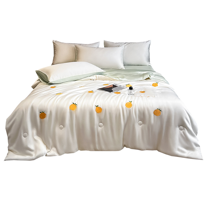 卡通夏季凉感空调被 水洗冰丝刺绣夏凉被四件套 夏被单双人薄被子