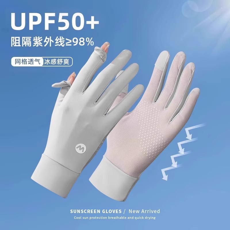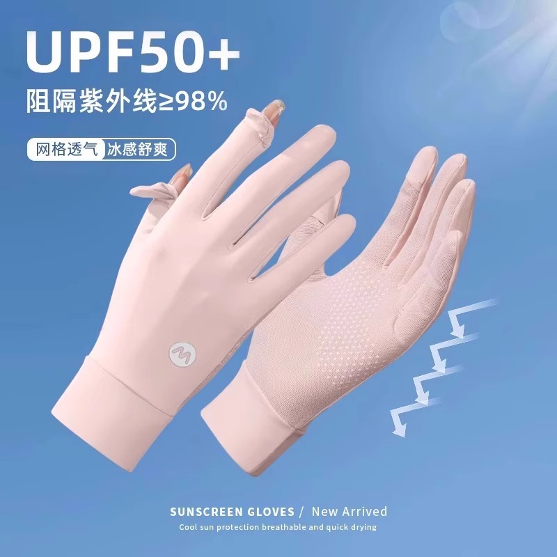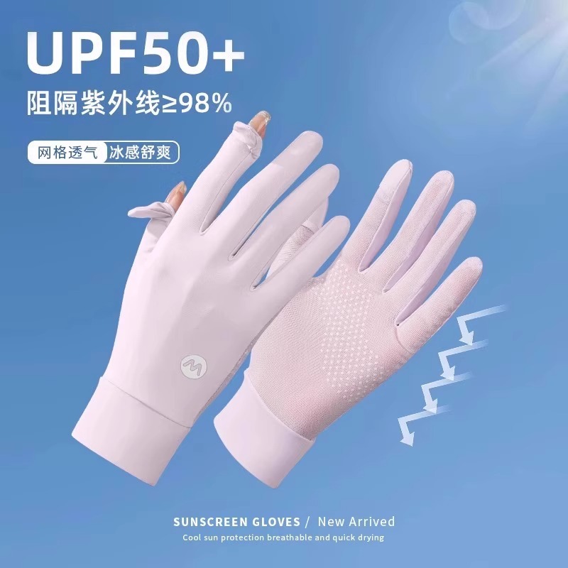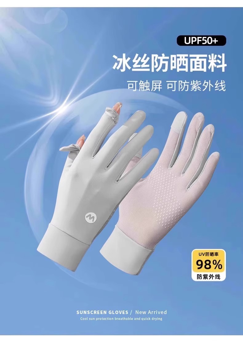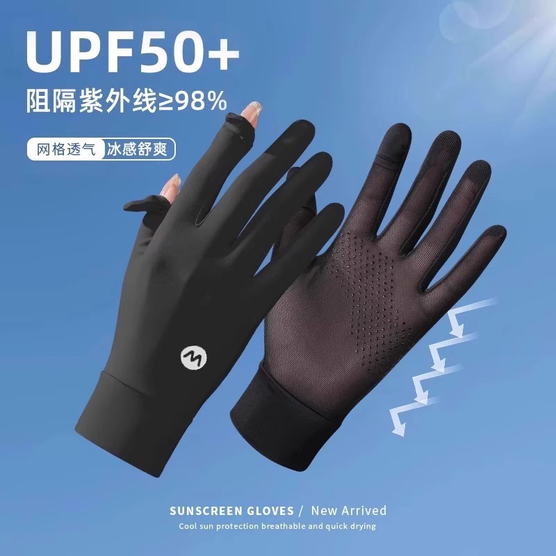 防晒手套女防紫外线开车司机专用露指冰丝骑行电动车英文字母触屏
