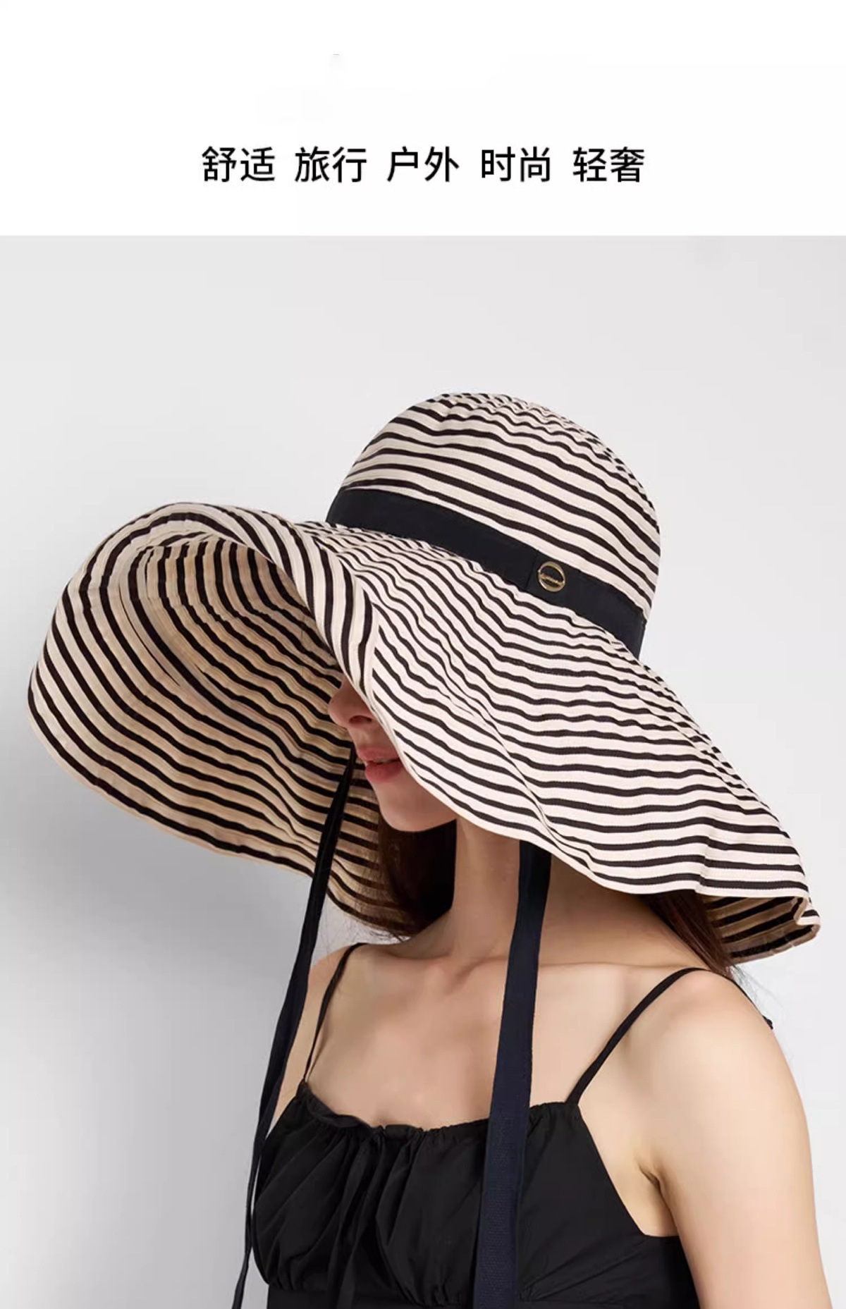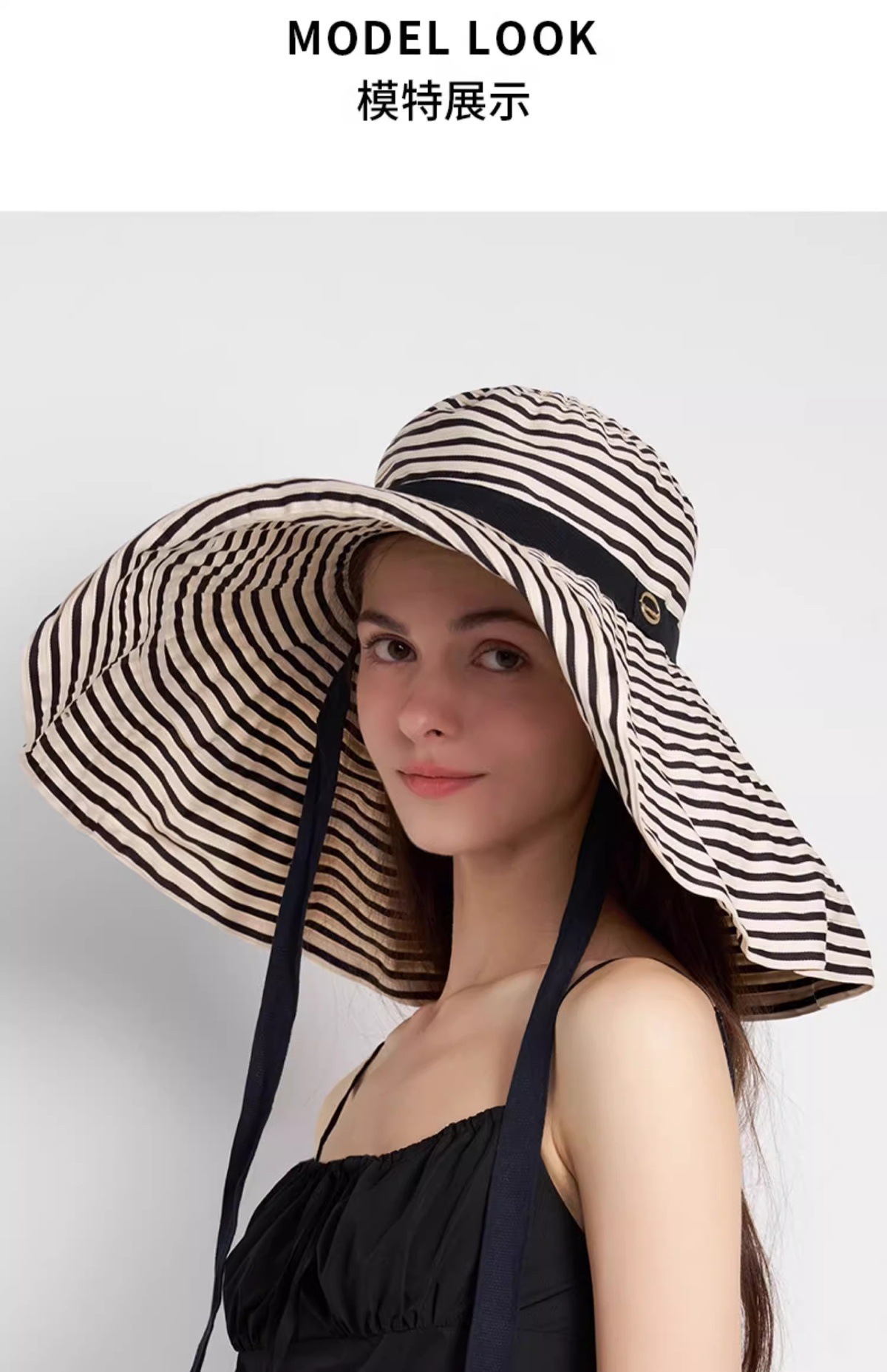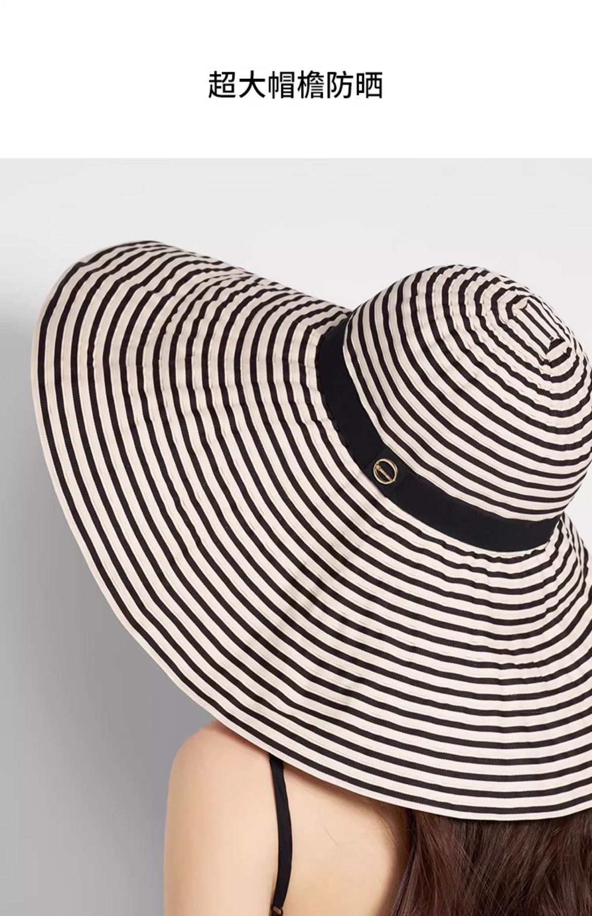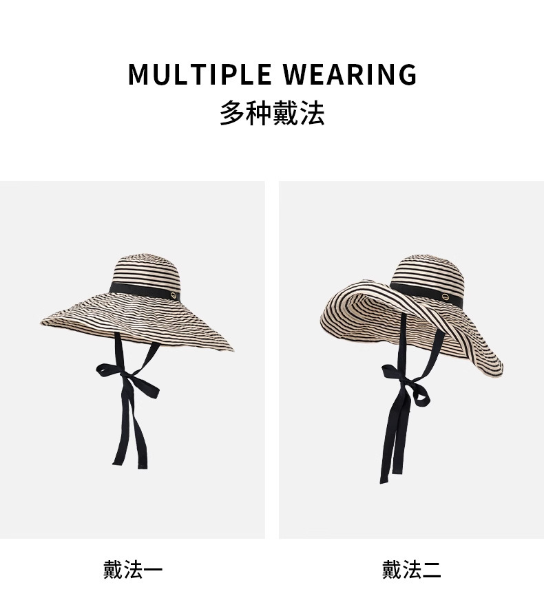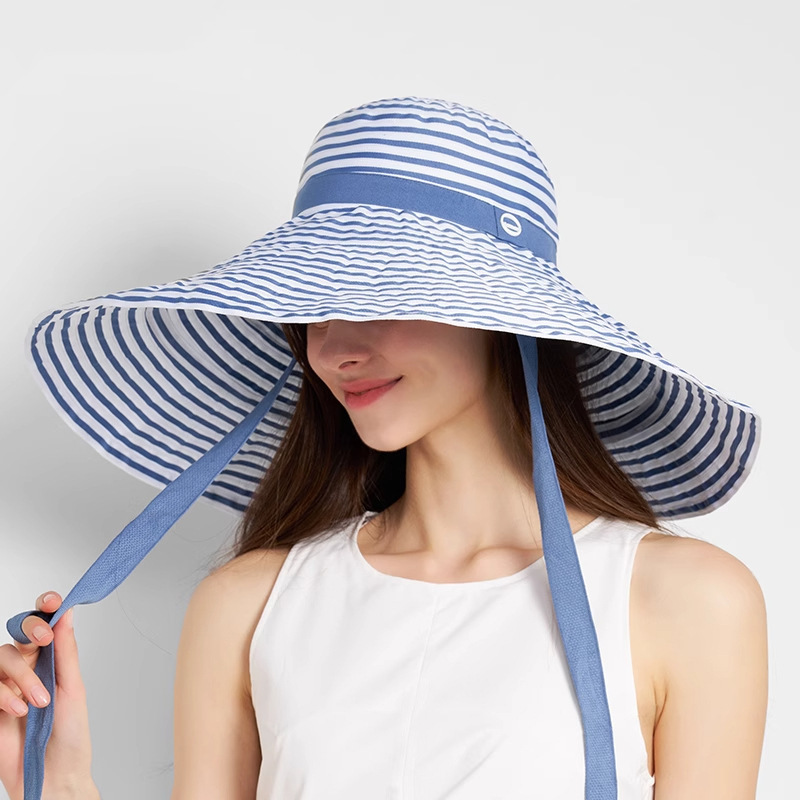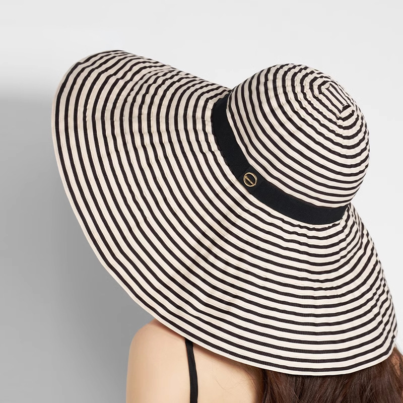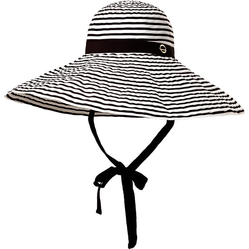 2025新款大檐韩版时尚条纹渔夫帽子女夏季海边出游护颈遮阳太阳帽