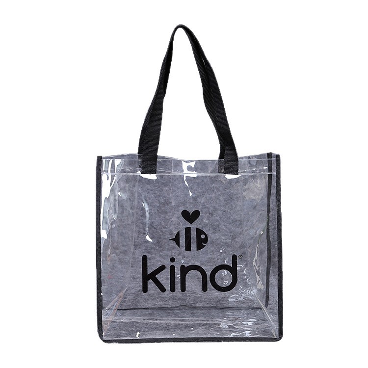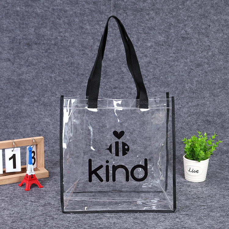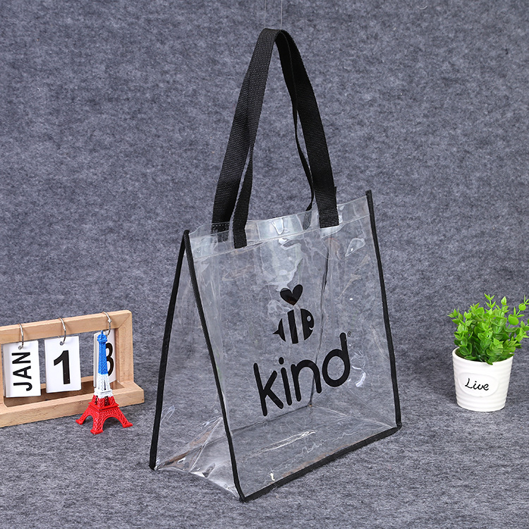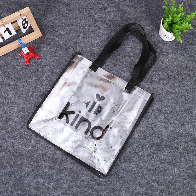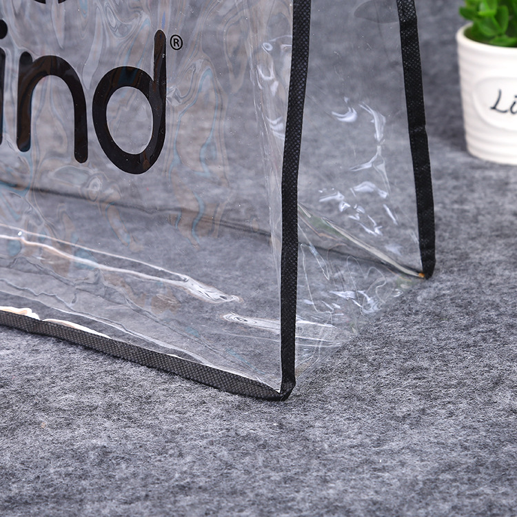 透明pvc手提袋批发塑料包装袋 定 制车缝托特包无纺布包边购物袋