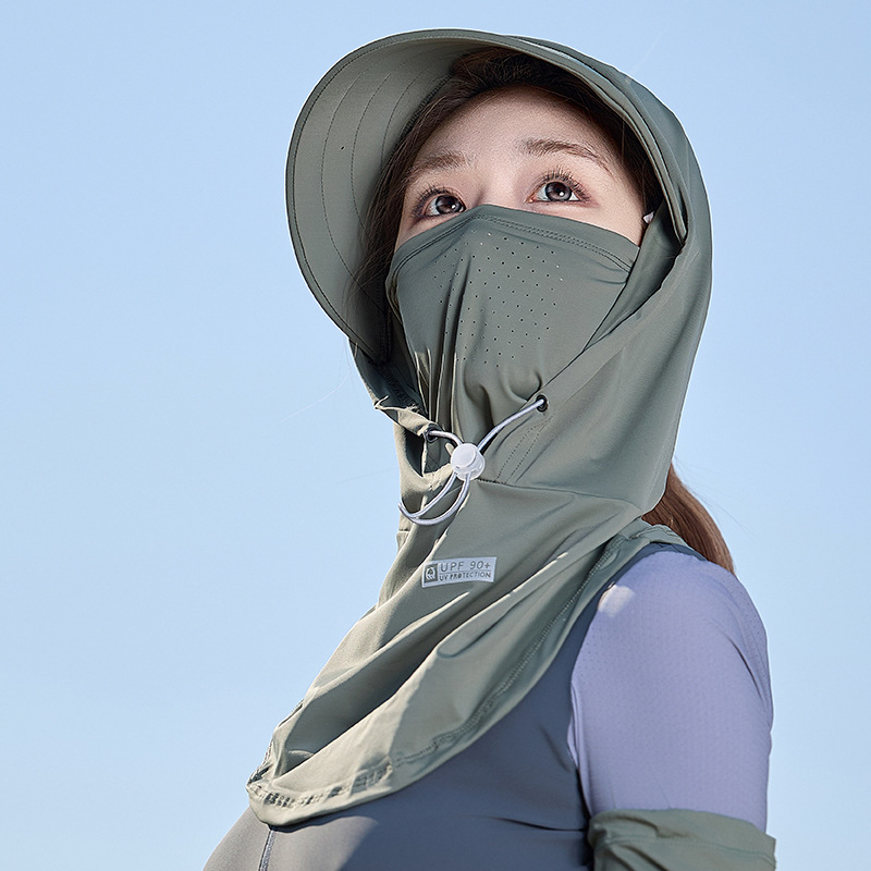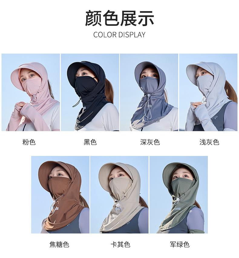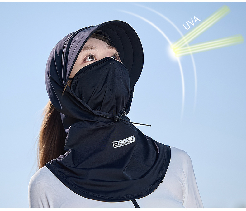 夏季遮阳帽女骑车防紫外线大檐帽子护全脸护颈透面罩防晒全脸口罩