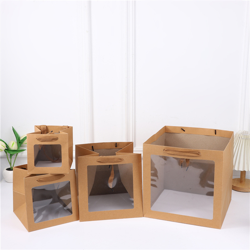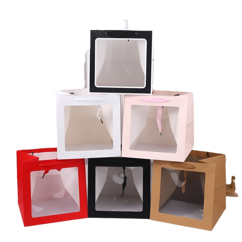 正方形礼品袋开窗手提礼袋透明玩偶节日礼袋教师节礼品包装袋批发