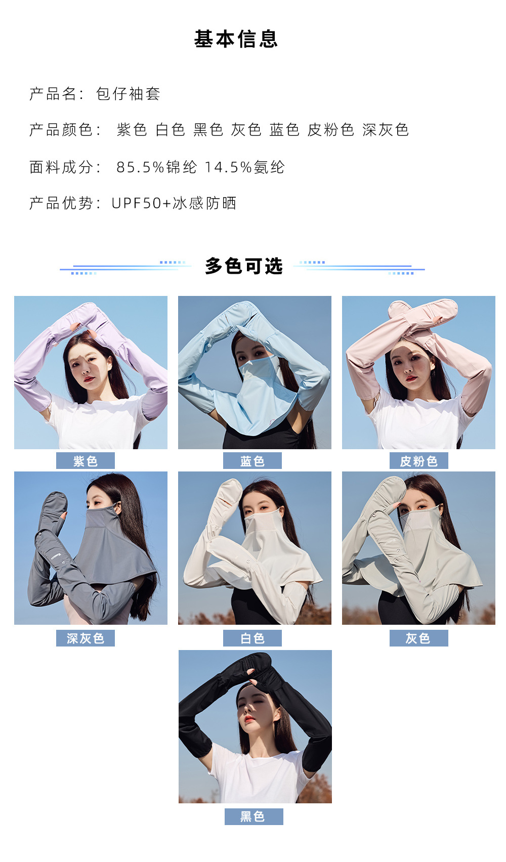王子路路防晒锦纶透气面纱护手冰袖遮阳凉感防紫外线套装速干冰感