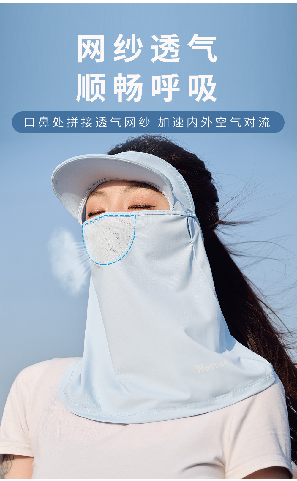 王子路路夏季冰丝凉感帽檐面罩男女同款遮阳透气防晒防紫外线面纱