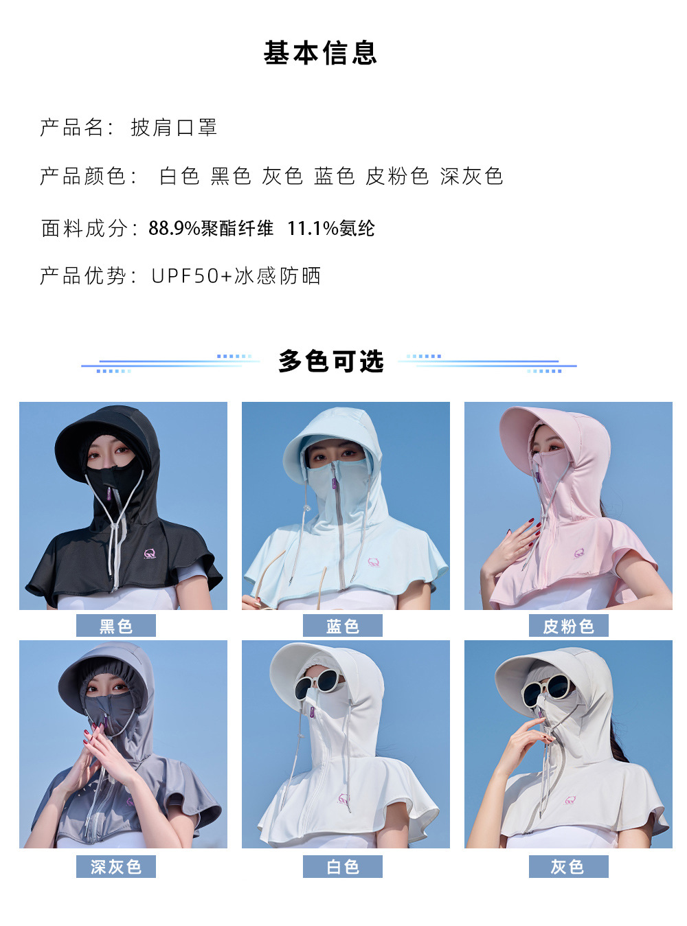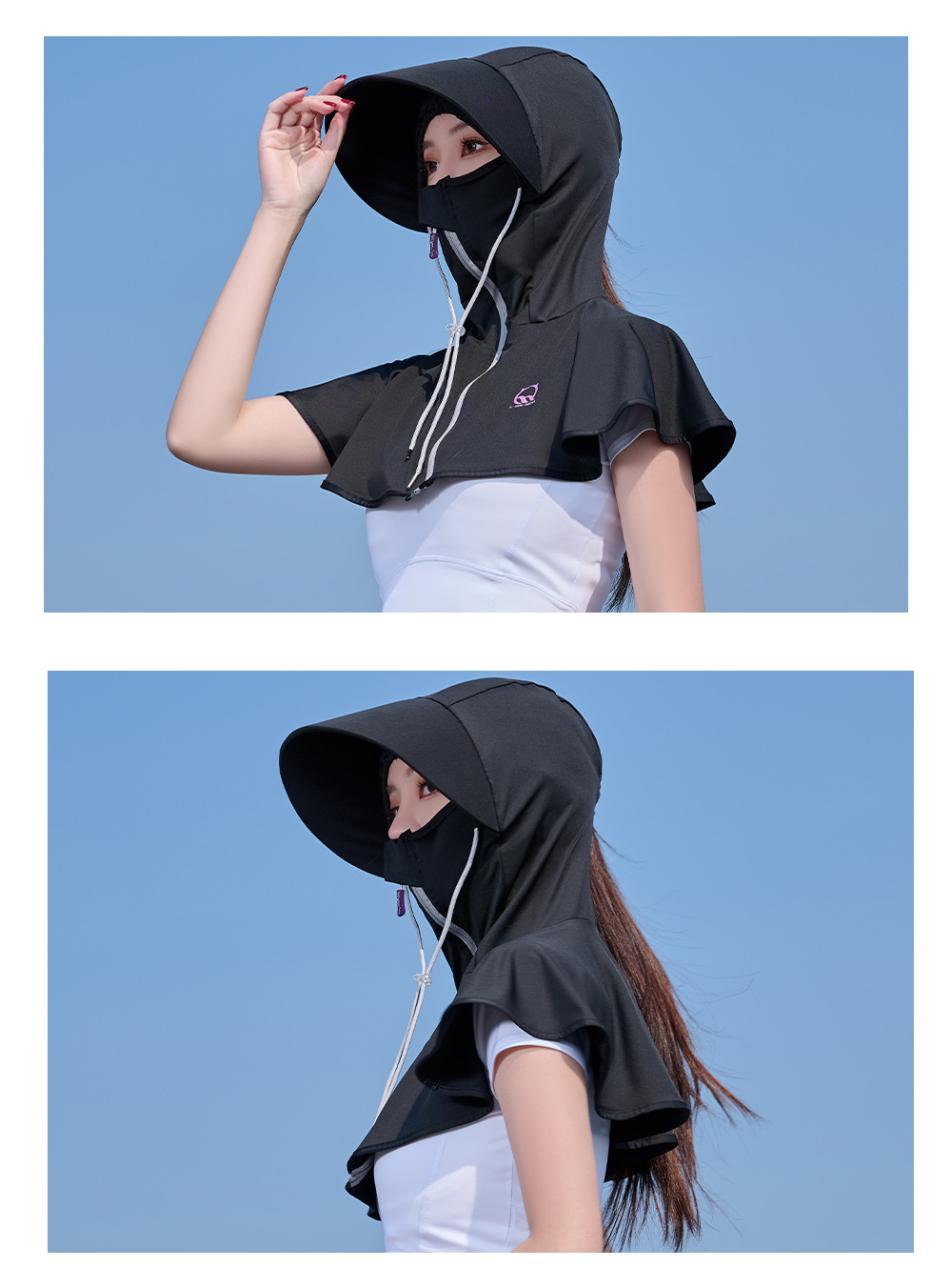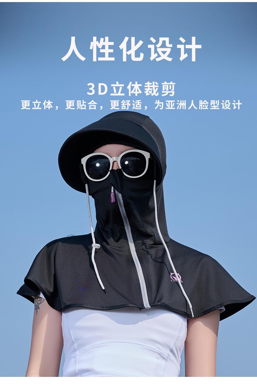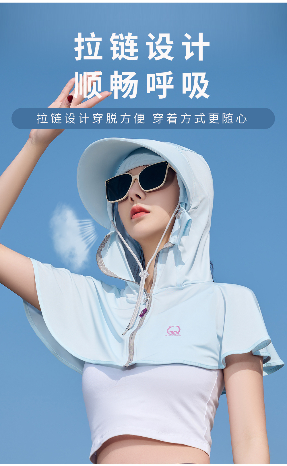 王子璐璐夏季防晒凉感披肩帽遮阳防紫外线骑行透气小披肩透气防晒