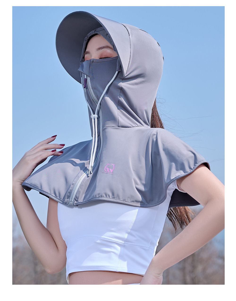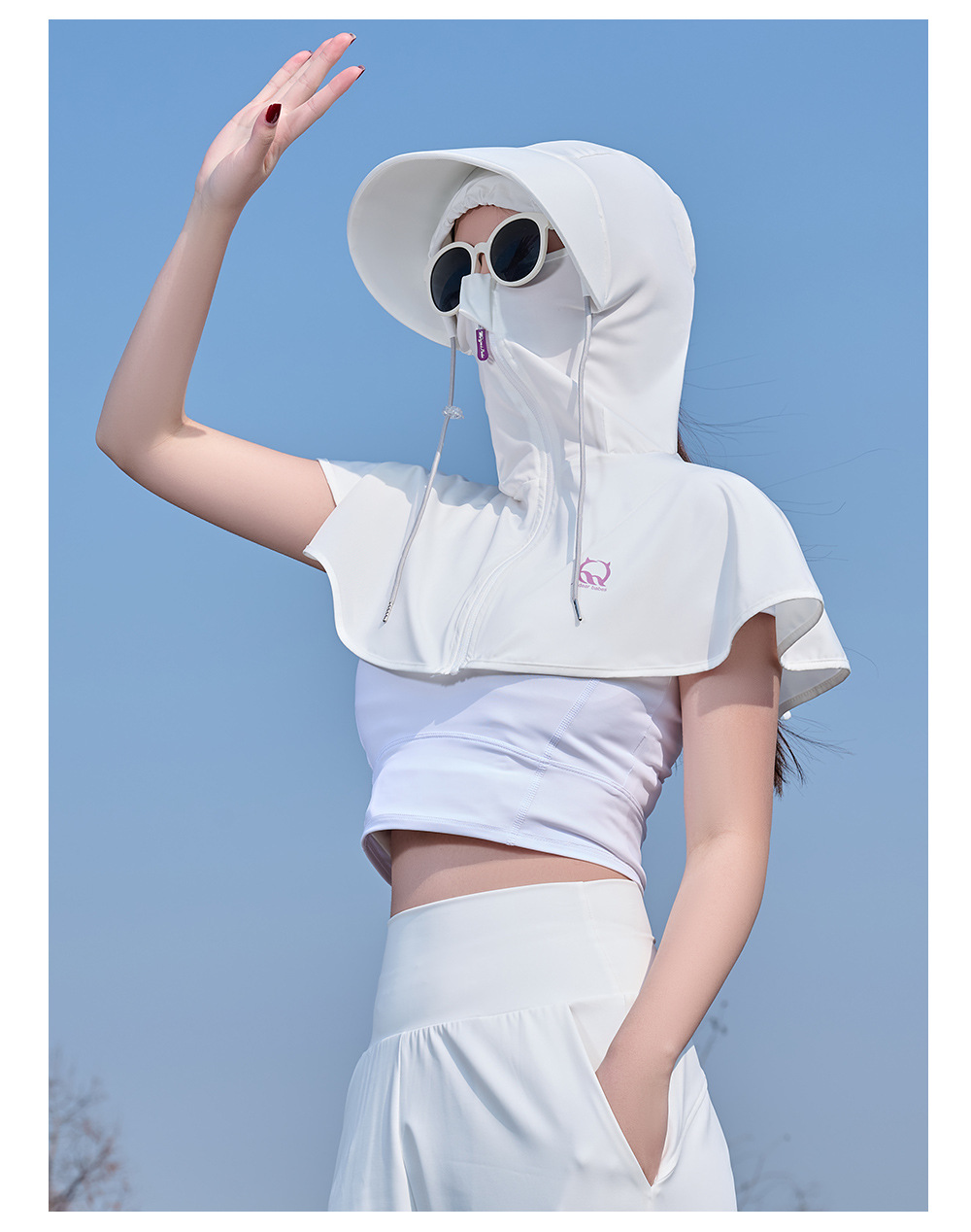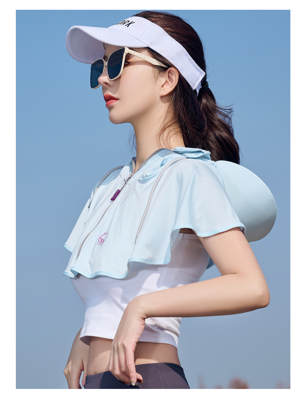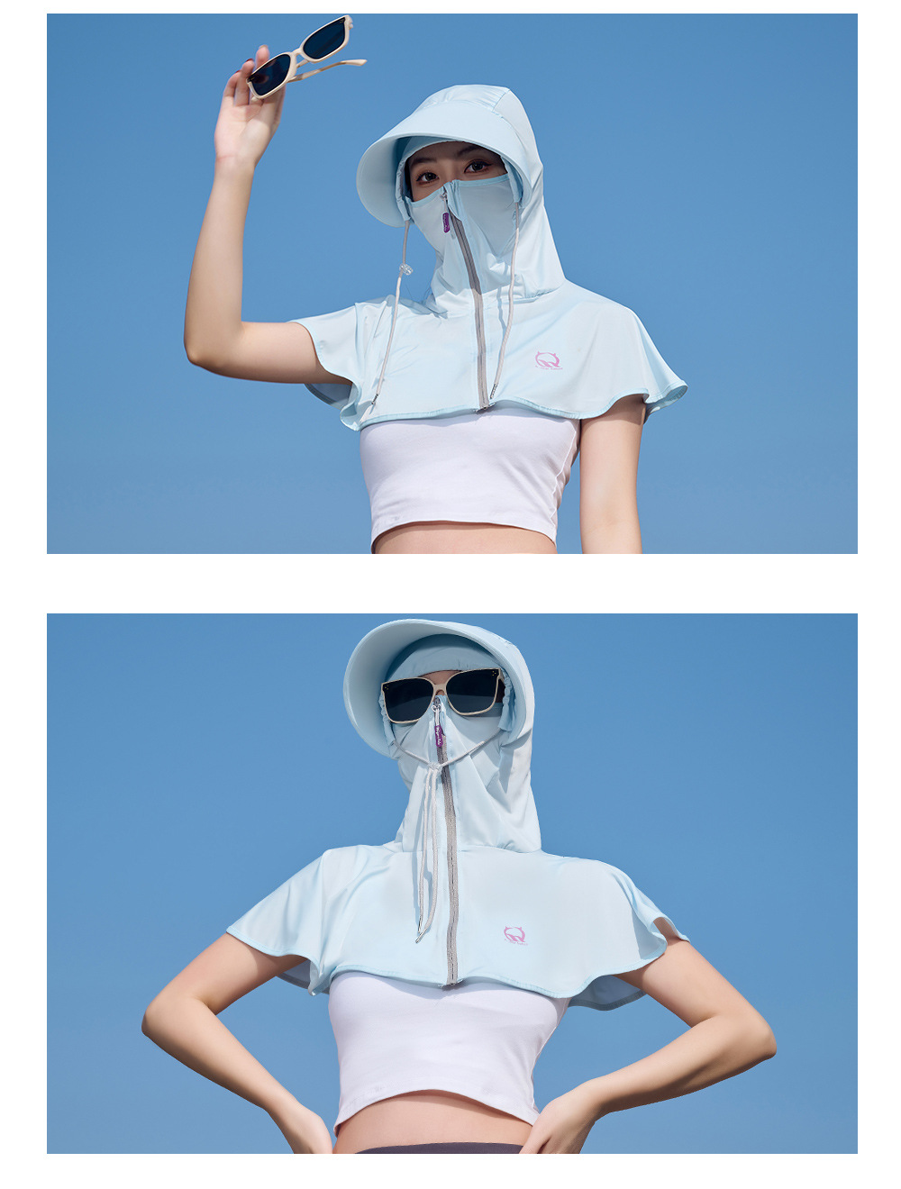 王子璐璐夏季防晒凉感披肩帽遮阳防紫外线骑行透气小披肩透气防晒