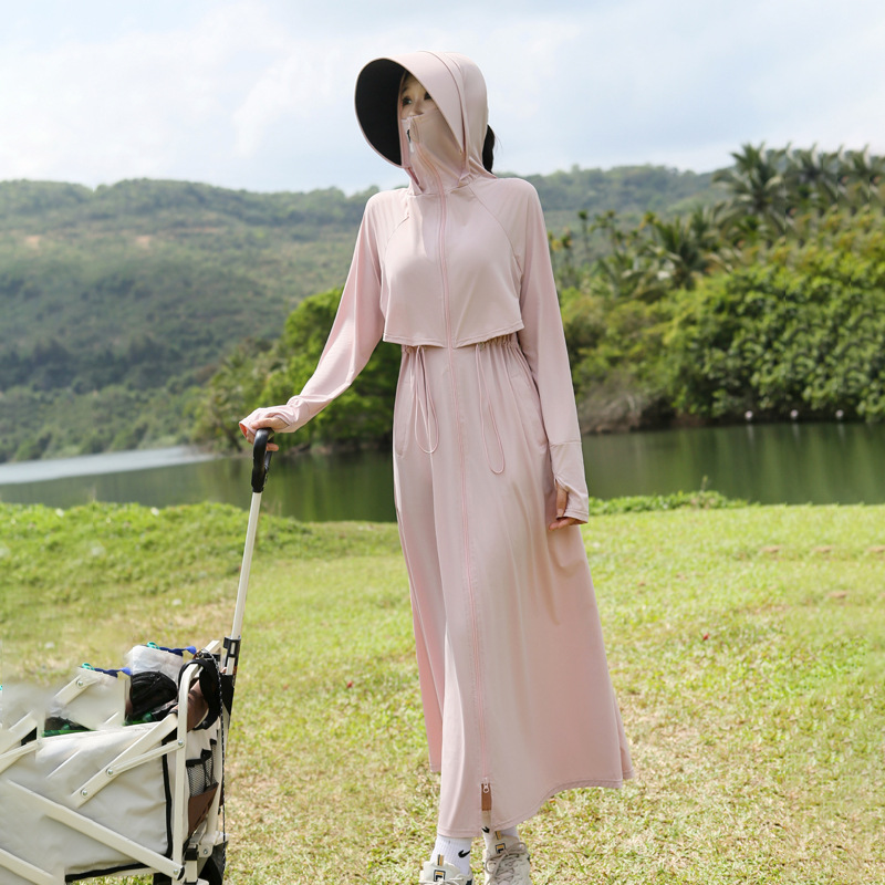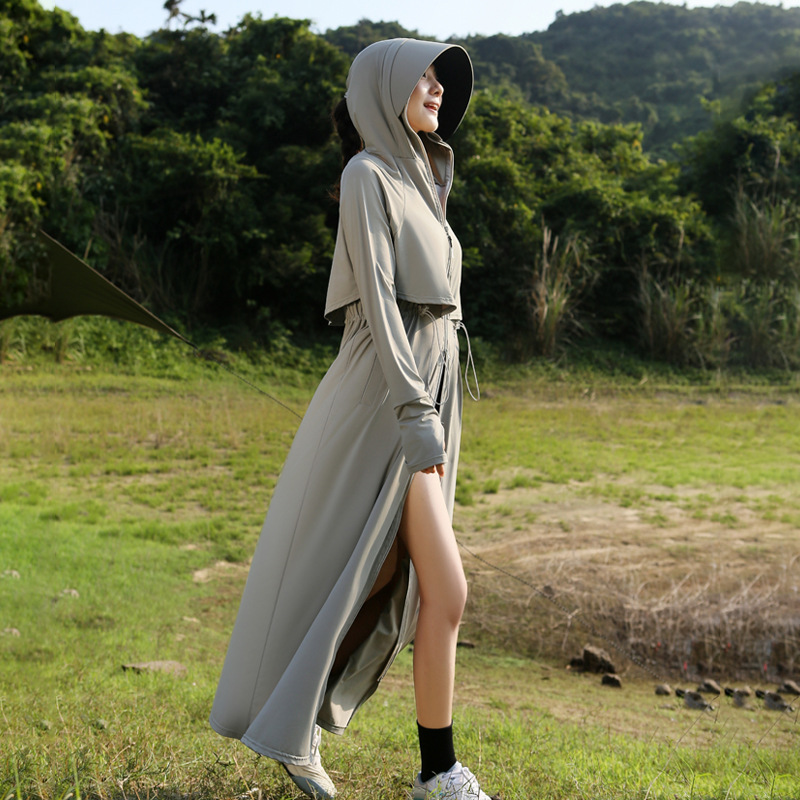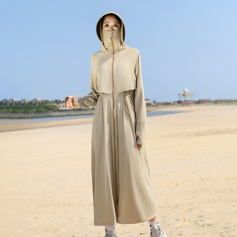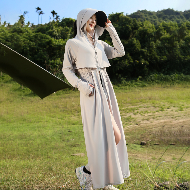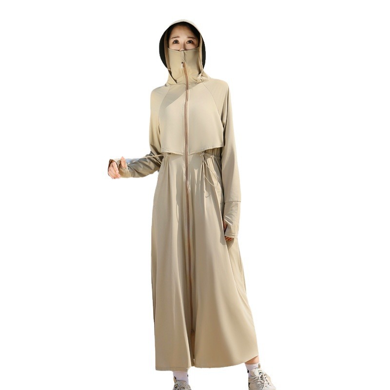 长款防晒衣女2024新款原纱全身防紫外线薄风衣户外冰丝收腰防晒服