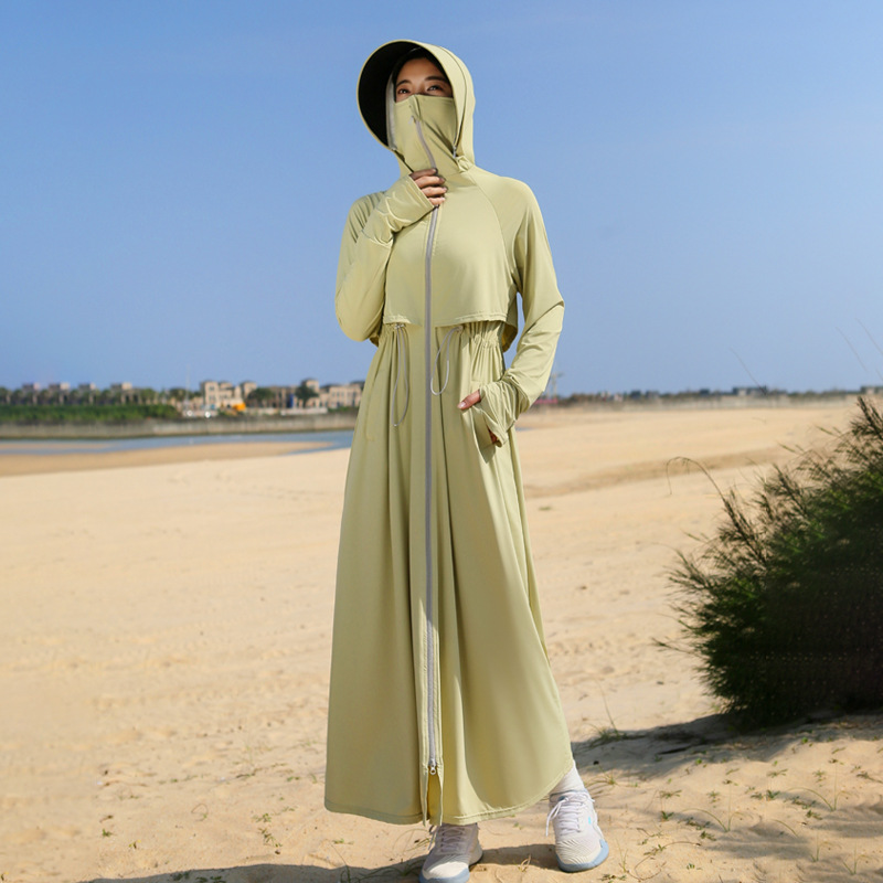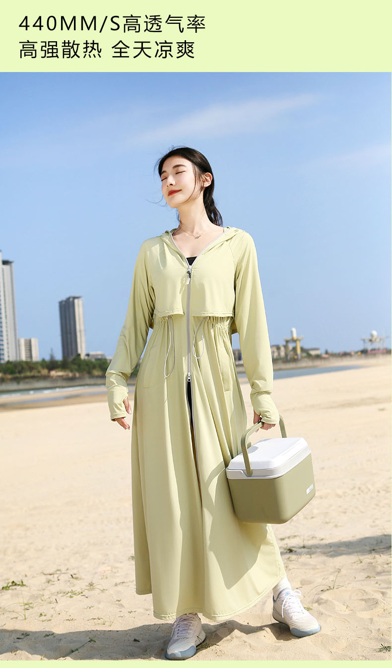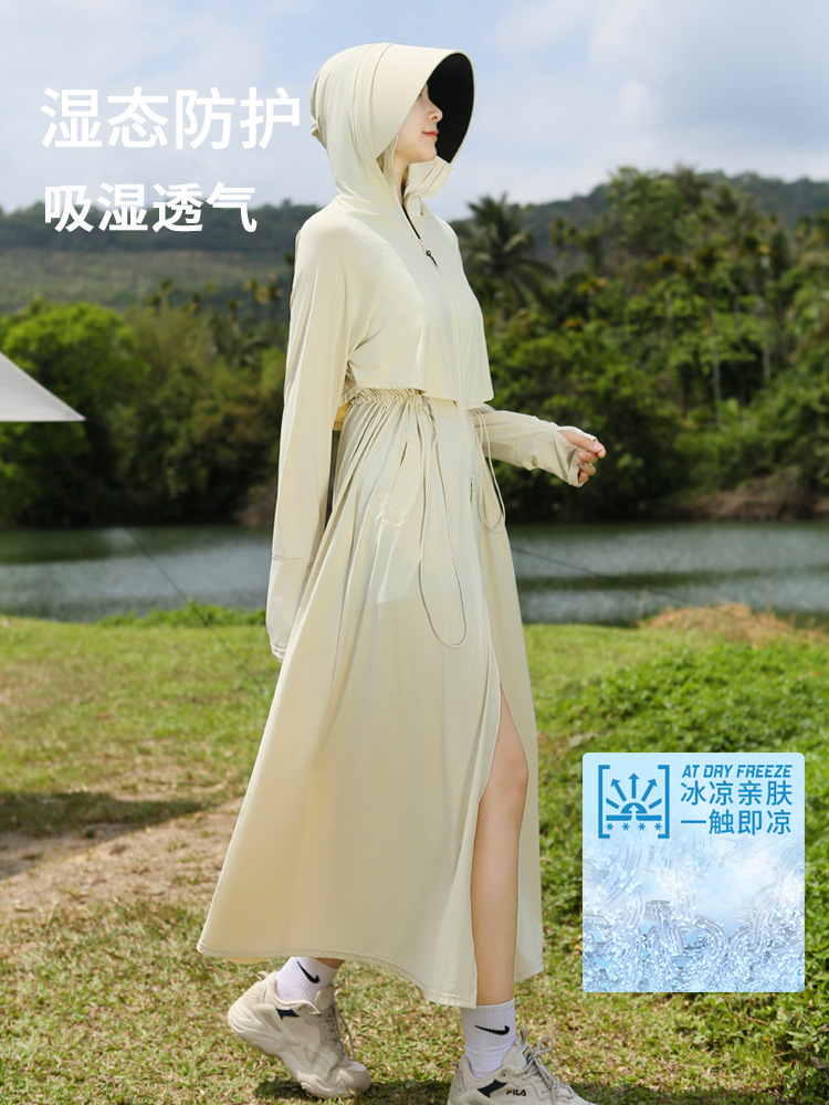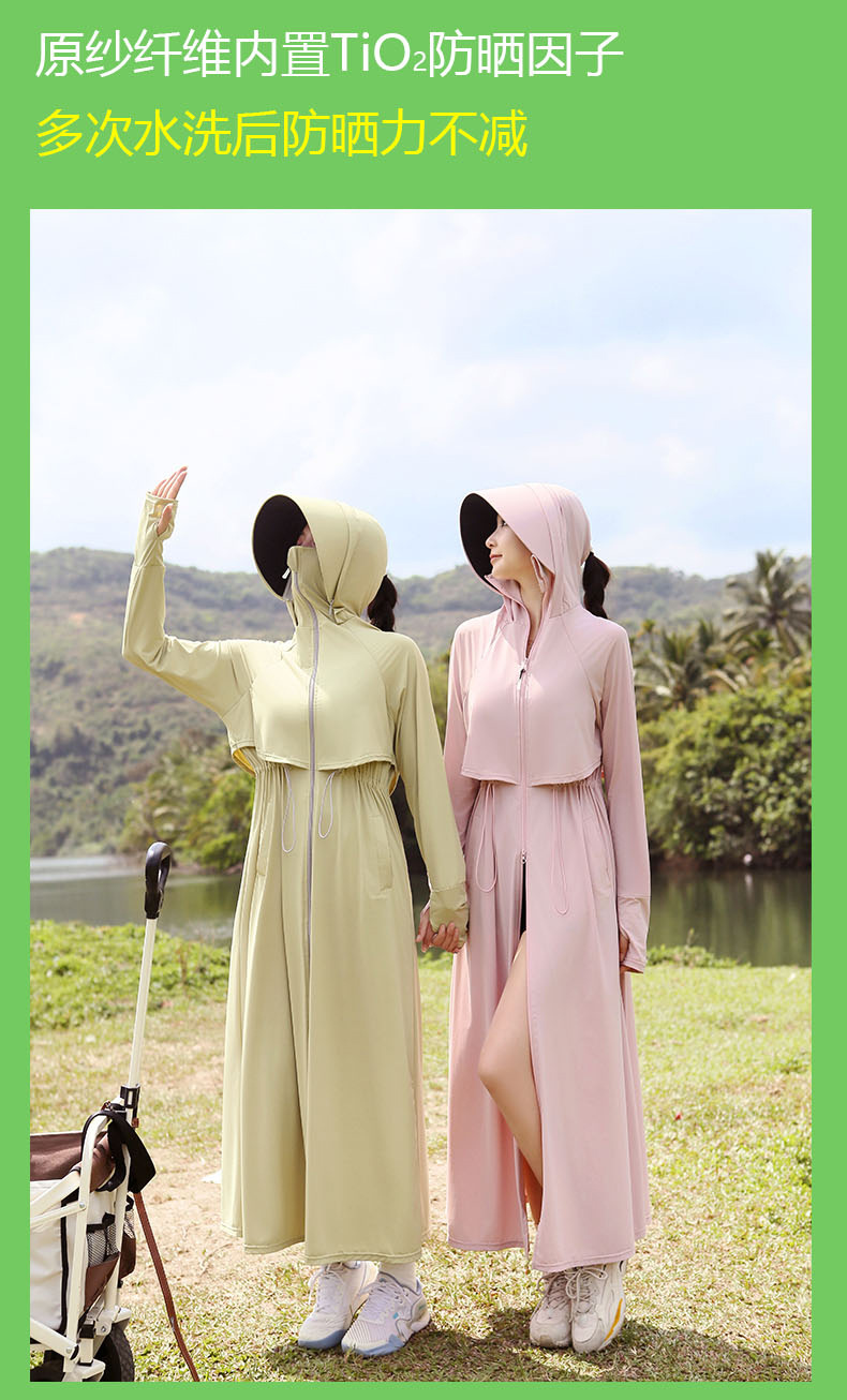 长款防晒衣女2024新款原纱全身防紫外线薄风衣户外冰丝收腰防晒服