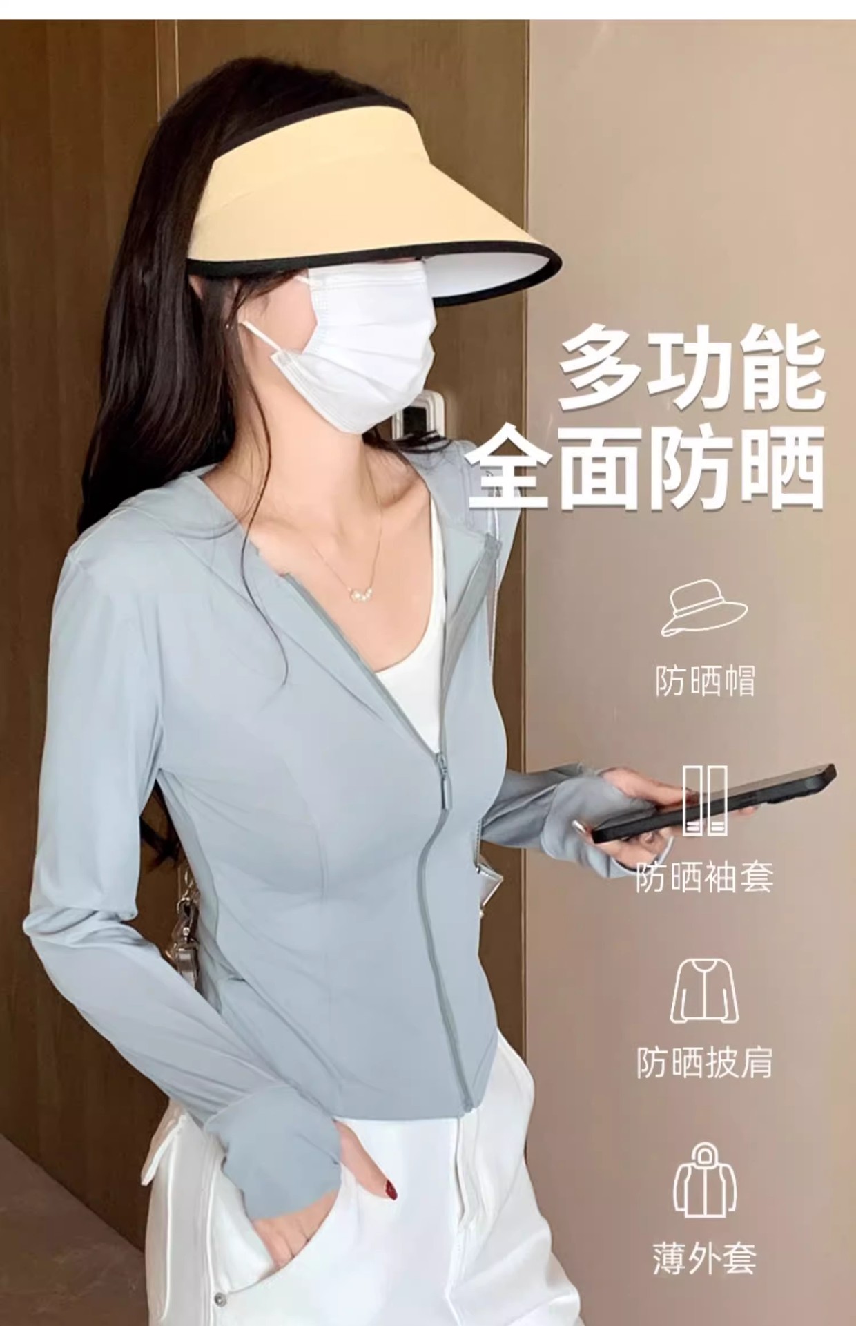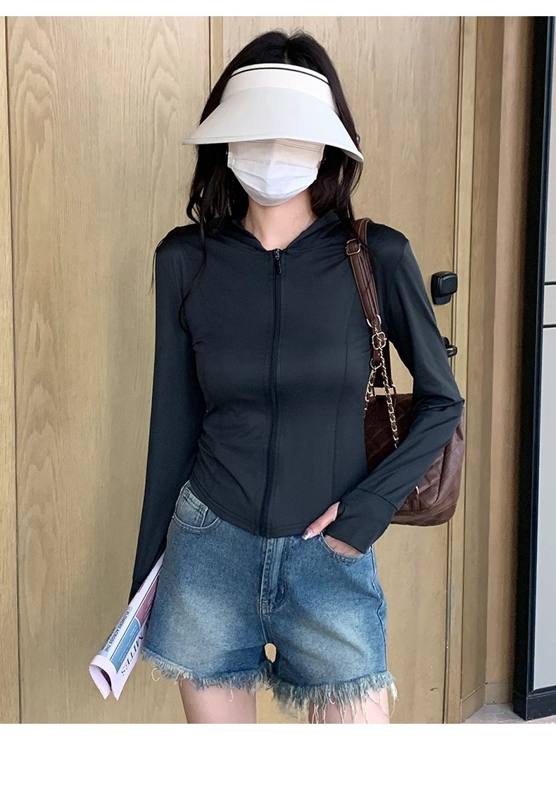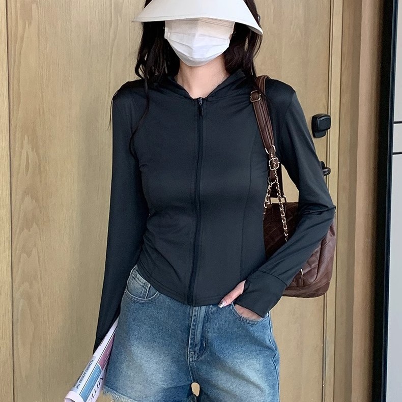 简约时尚女夏季修身运动服外套修身上衣2025新款防紫外线防晒衣