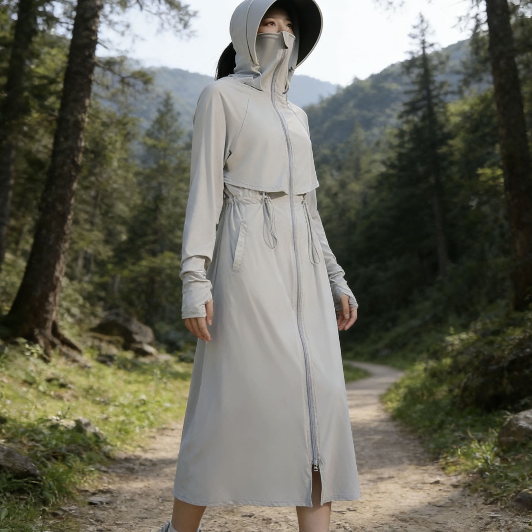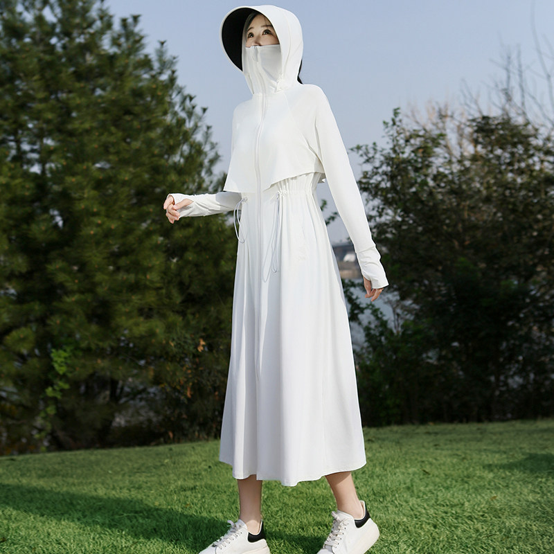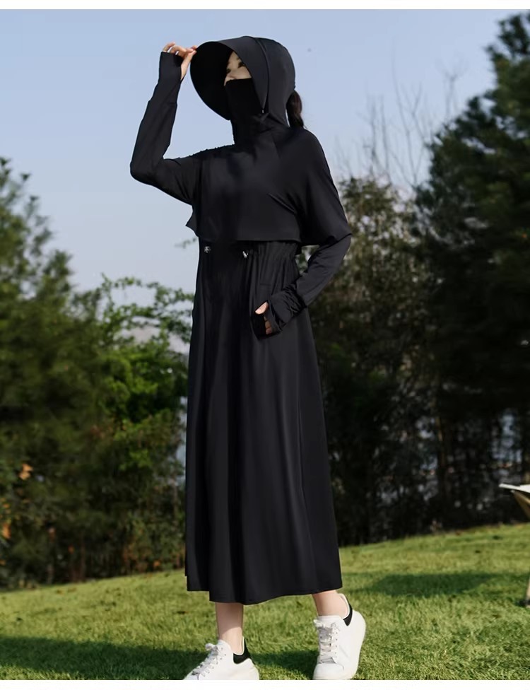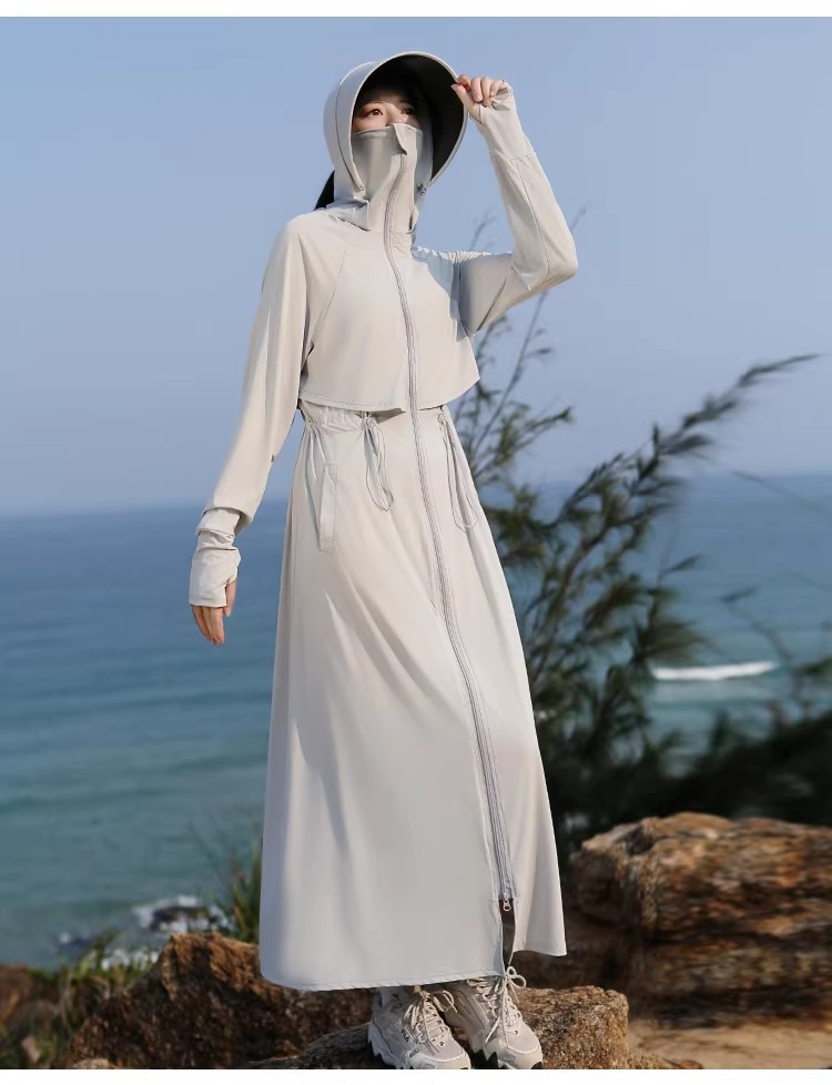 长款防晒衣全身防紫外线透气遮脸宽帽檐收腰显瘦户外露营开车通勤