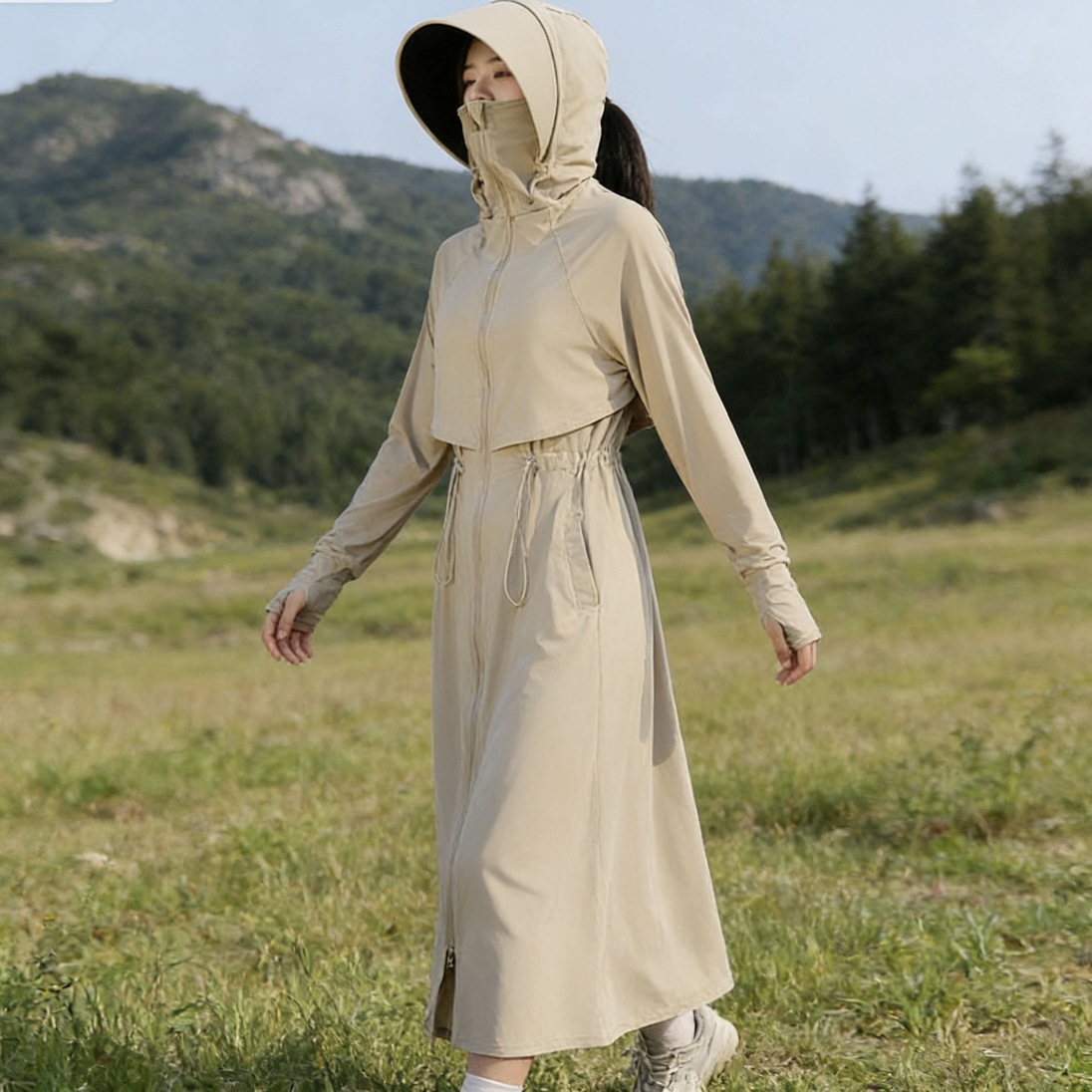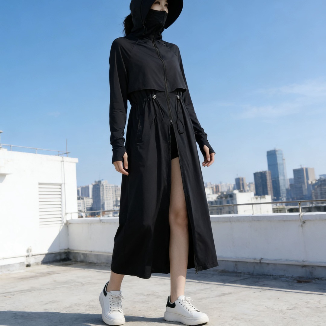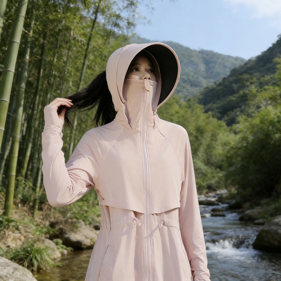 长款防晒衣全身防紫外线透气遮脸宽帽檐收腰显瘦户外露营开车通勤
