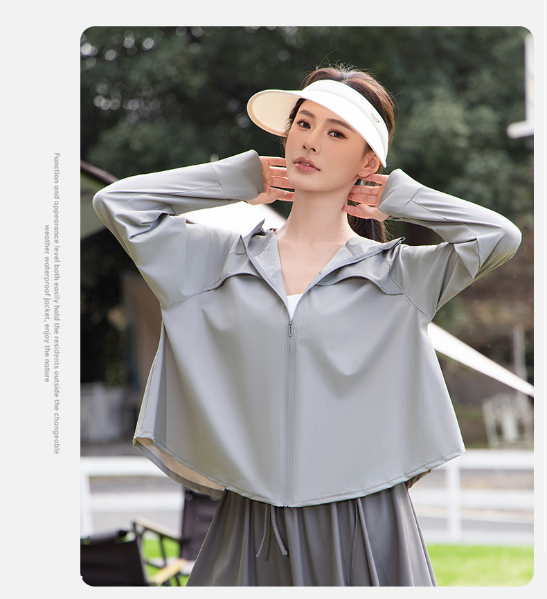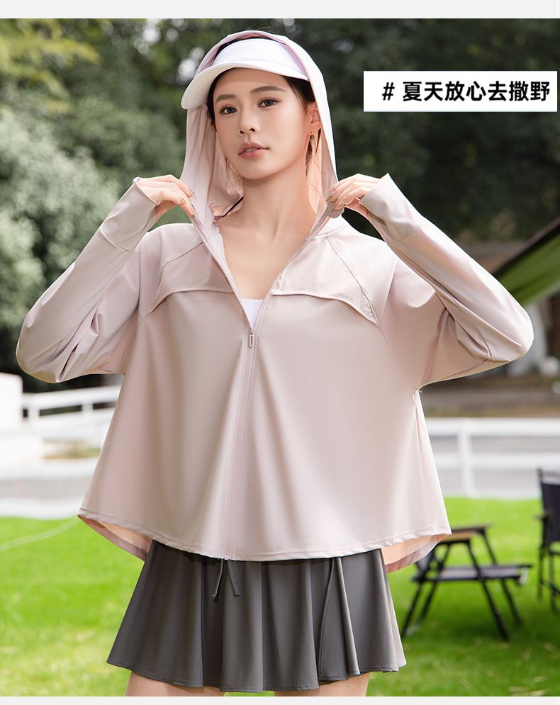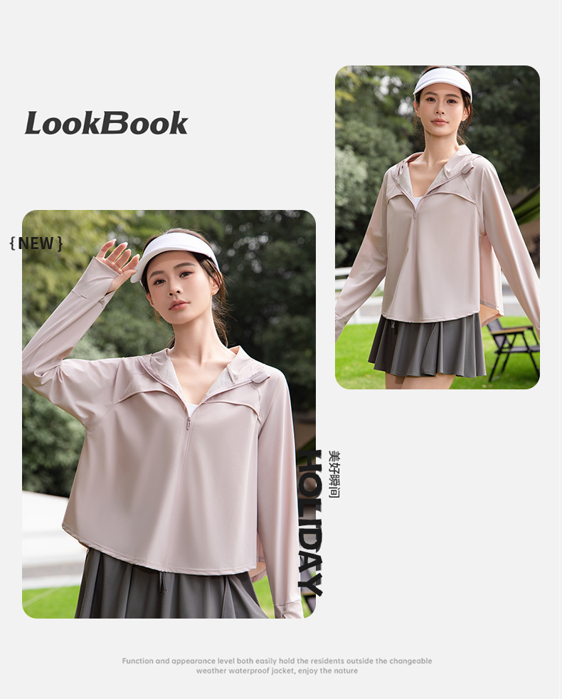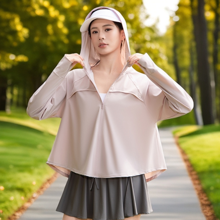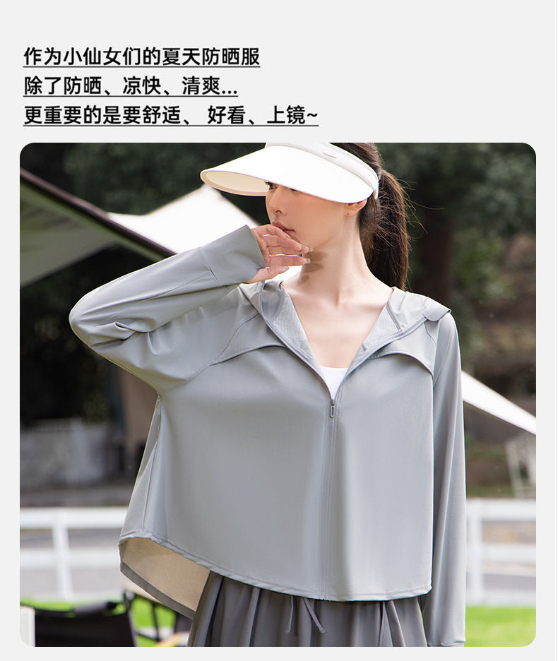日常防晒衣女夏季薄款透气冰丝面料连帽设计遮脸防晒衫学生党日常
