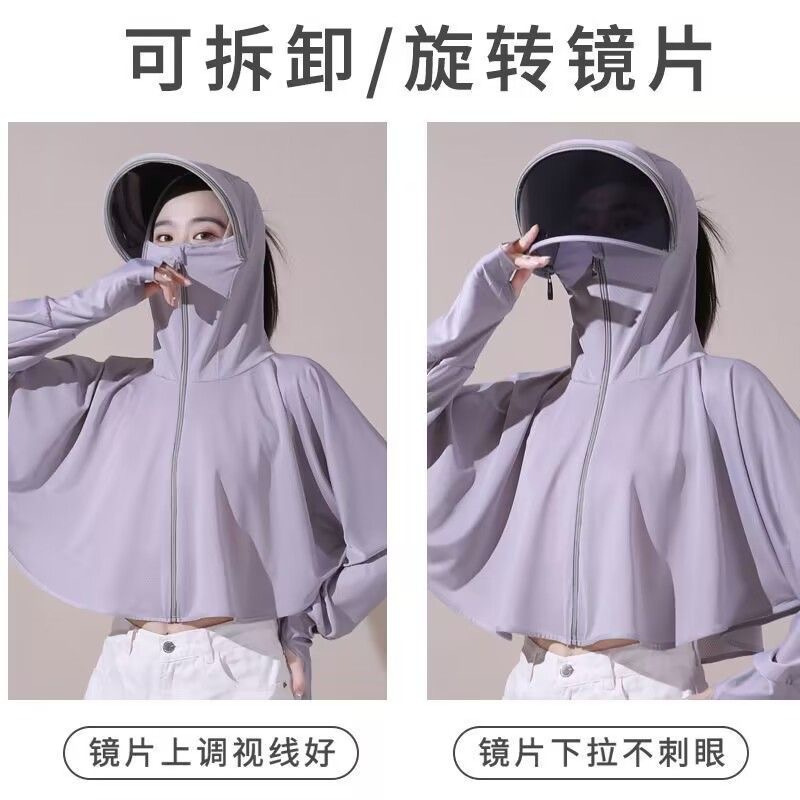 网眼冰丝镜片防晒衣女防紫外线遮阳服户外骑车防晒衫薄款长袖外套