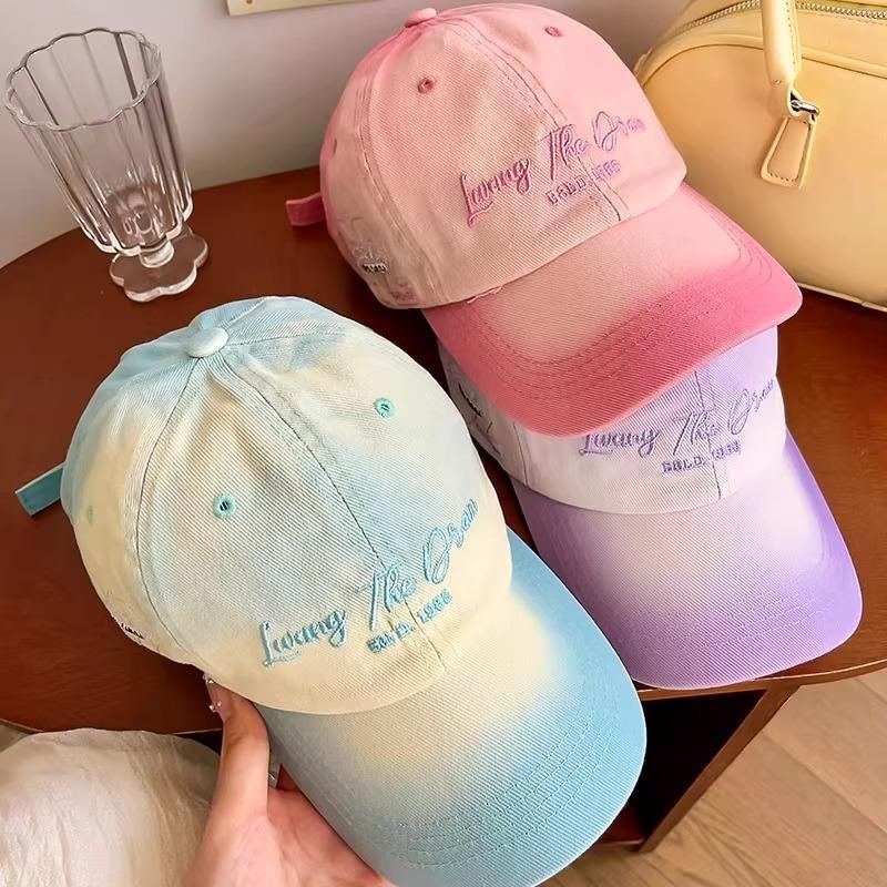 2026春季ins多巴胺渐变色字母女大帽檐加大加深鸭舌帽帽子棒球帽