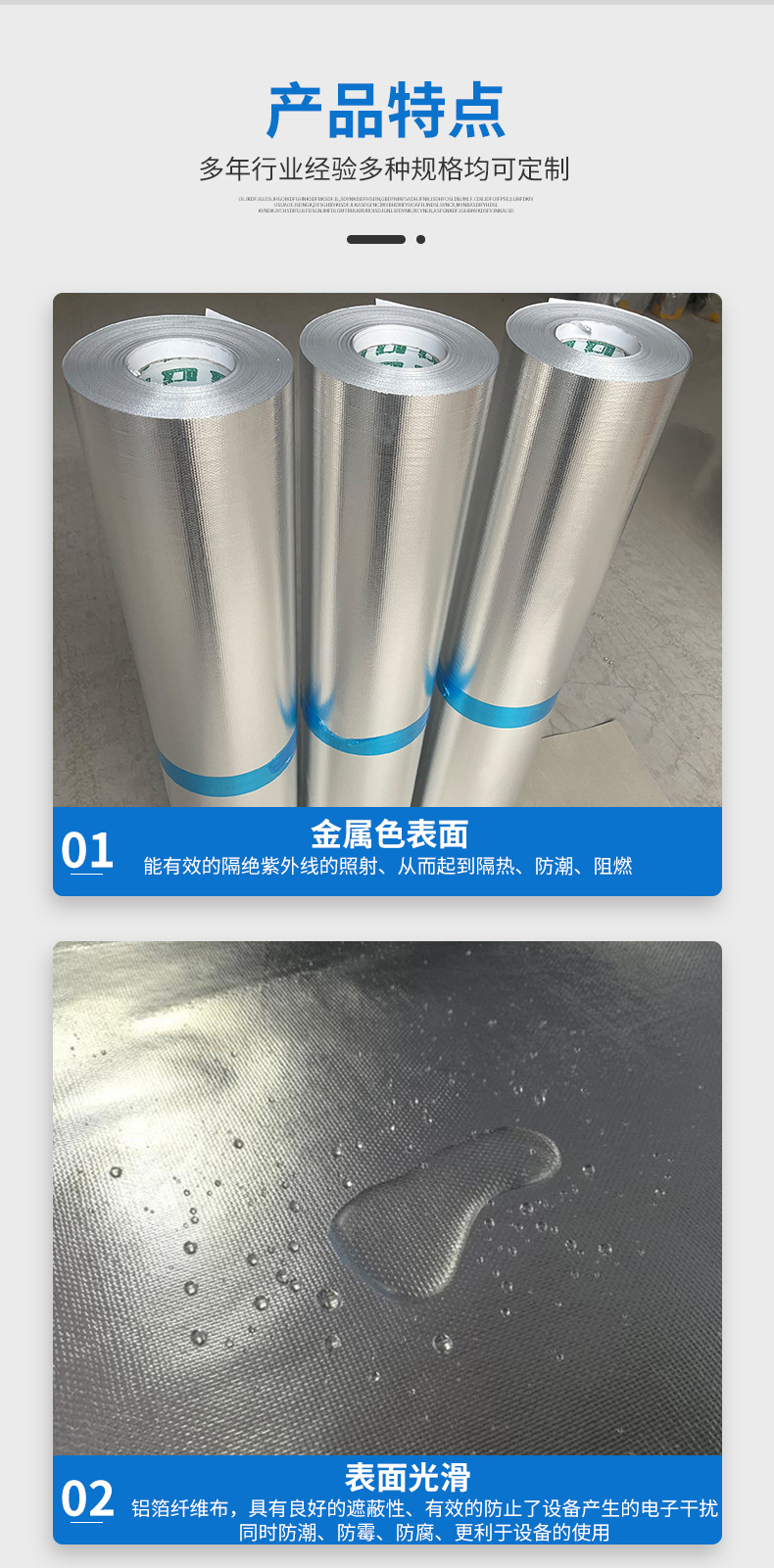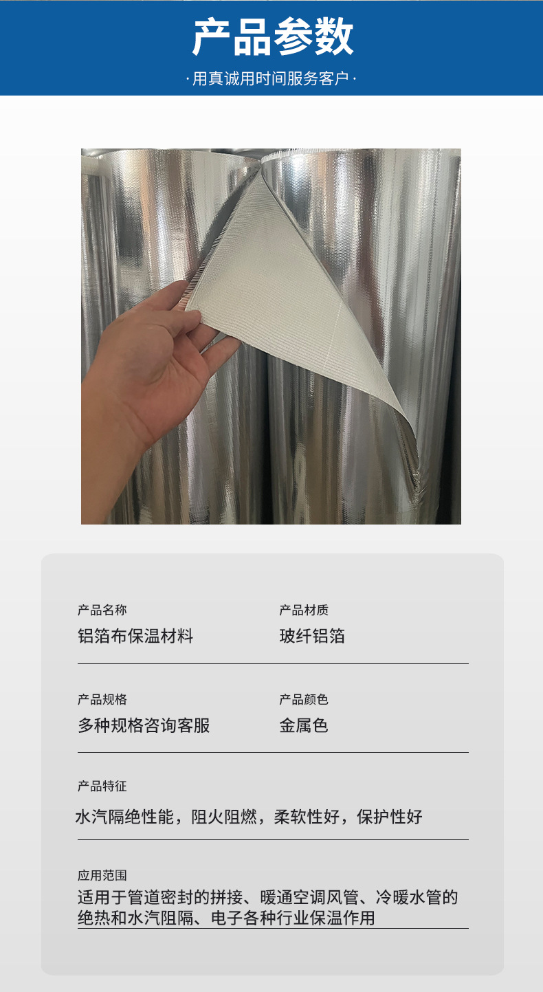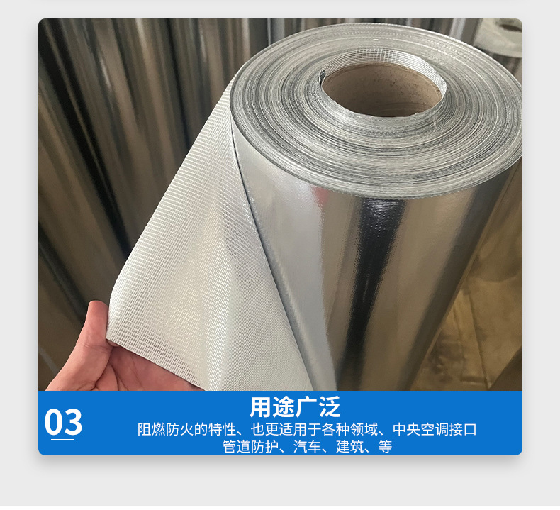 耐高温铝箔布反辐射反光管道工程阻燃保温材料自粘玻纤网格铝箔布