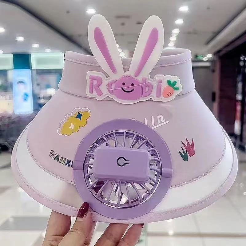 夏季儿童防晒大檐风扇空顶帽子卡通可爱男女学生户外遮阳防紫外线