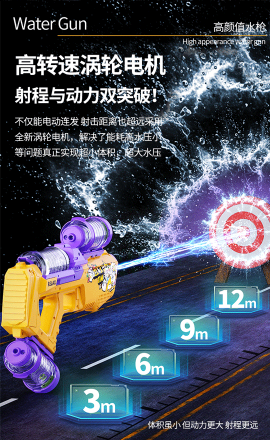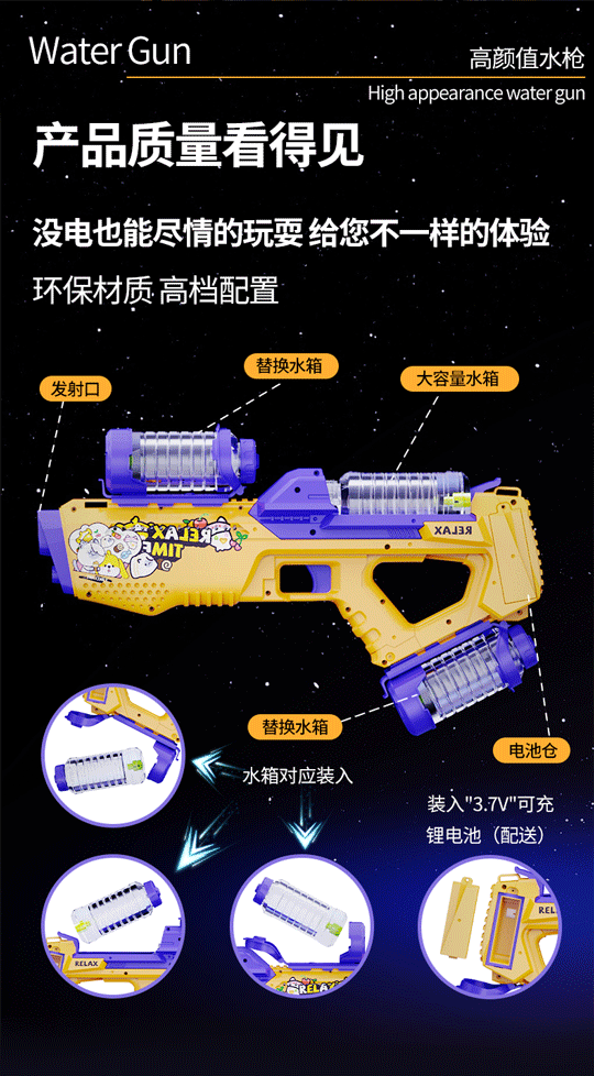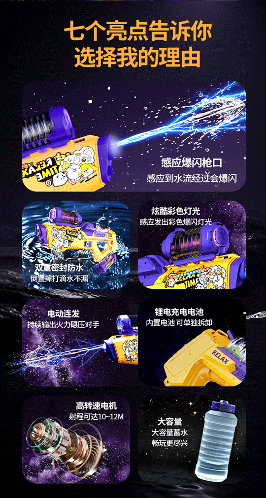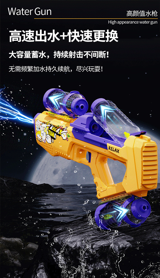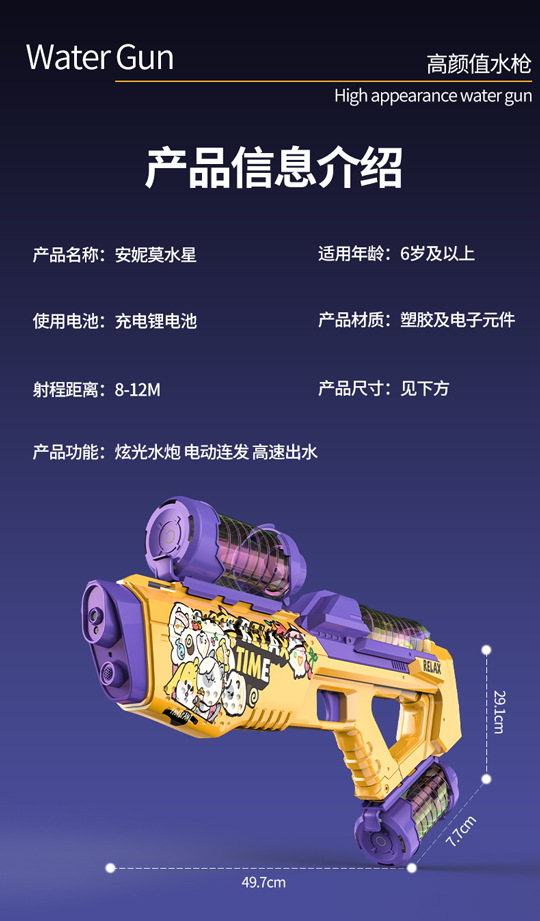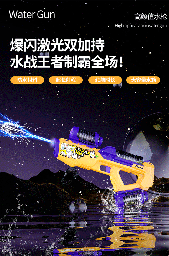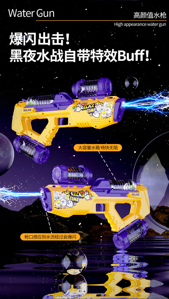儿童跨境电动水枪 高速连发联动炫酷灯光水枪大容量水箱加长射程