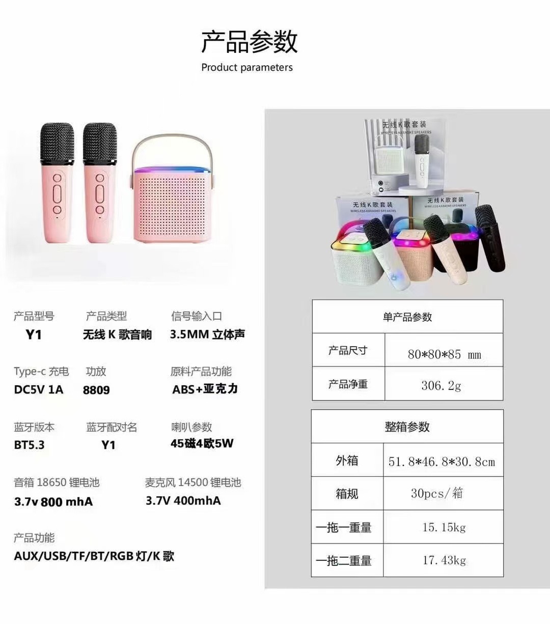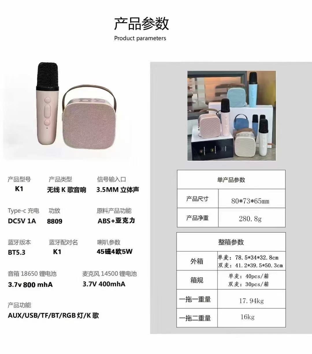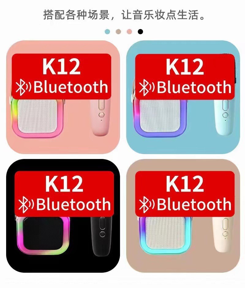 2025跨境爆款K12独角兽蓝牙音响话筒一体音响音箱K歌蓝牙小音响彩