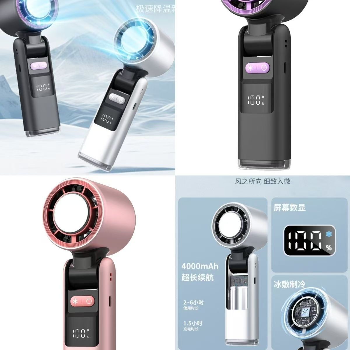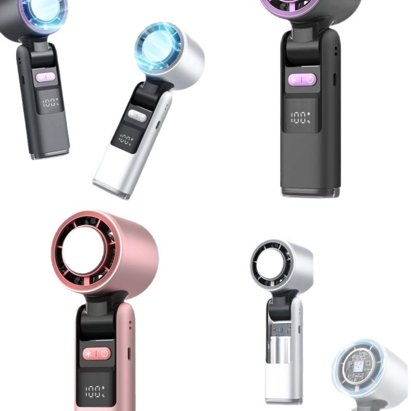 跨境冰敷手持风扇数显涡轮暴力空调高速100档折叠便携迷你制冷