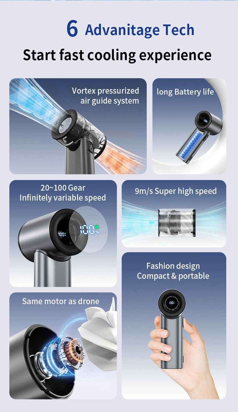 跨境N610迷你户外高速手持迷你小风扇大风力无刷挂脖可手持小风扇