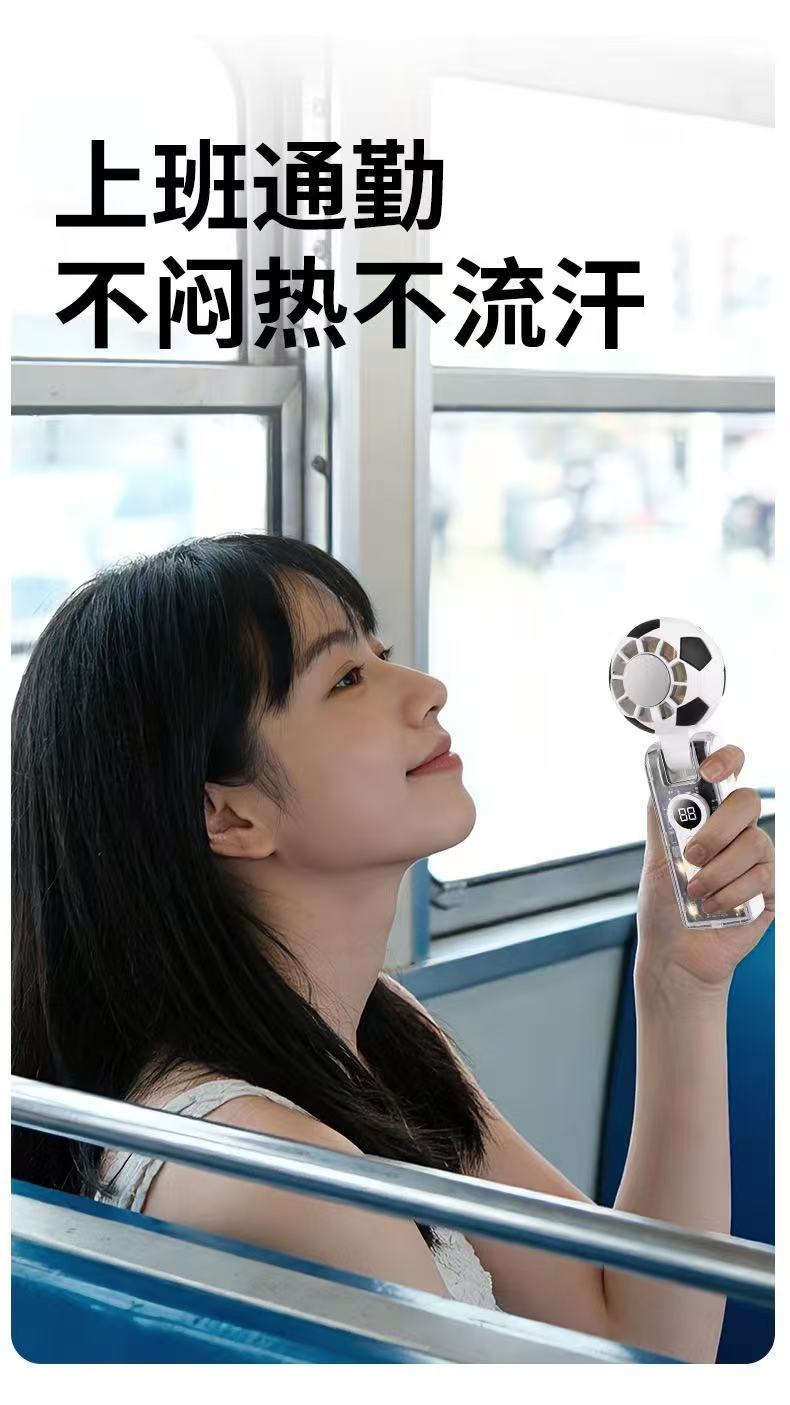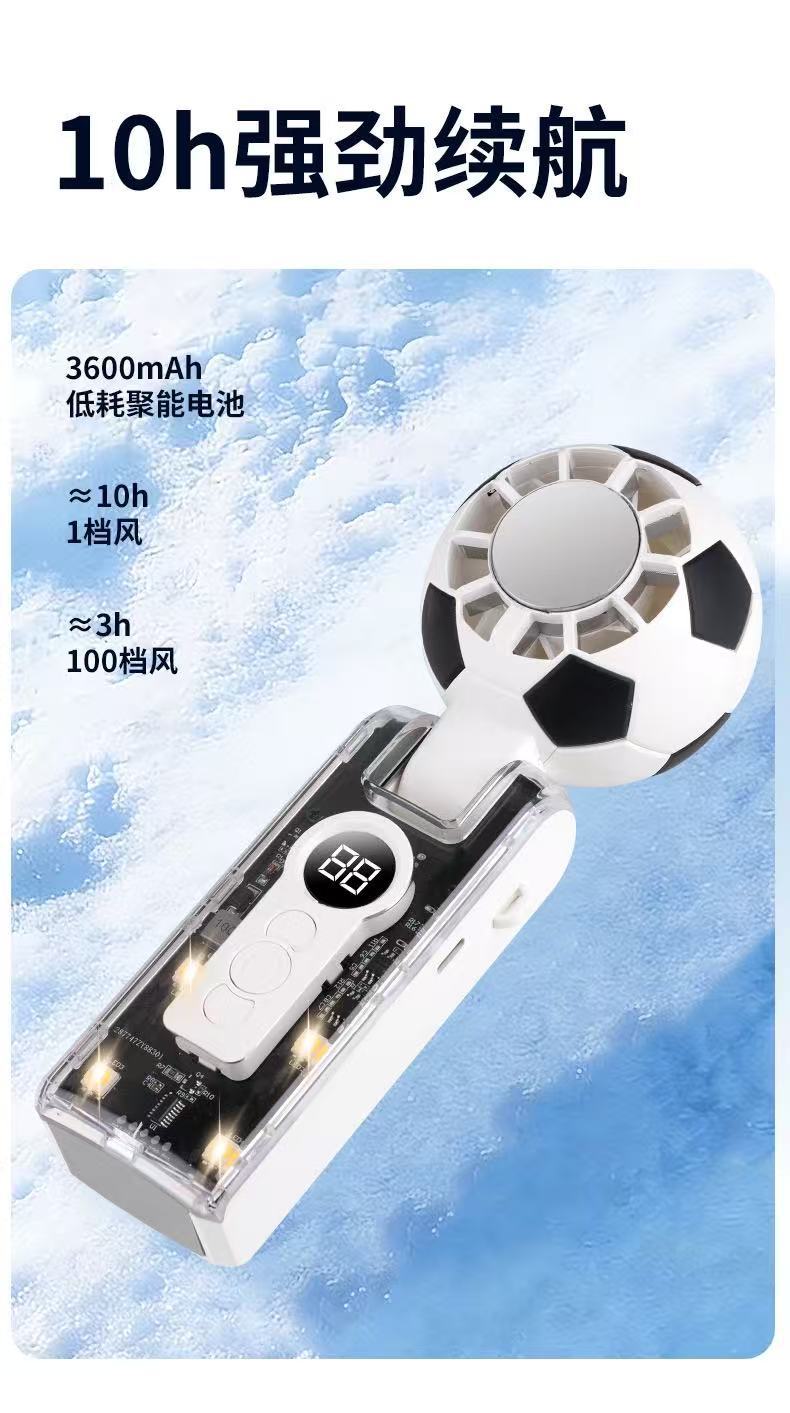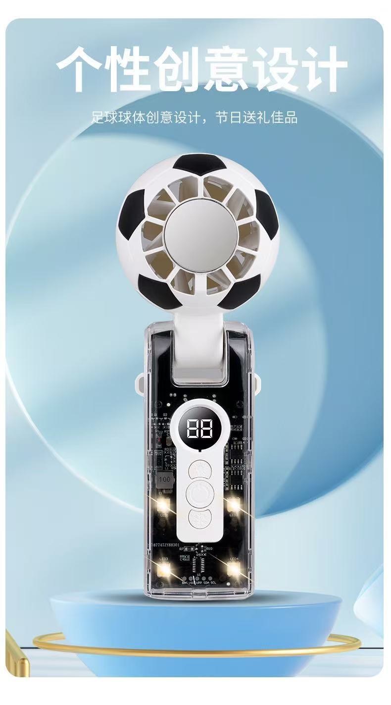 跨境新款x68足球手持风扇透明机甲冰敷数码显屏100档超大涡轮风扇