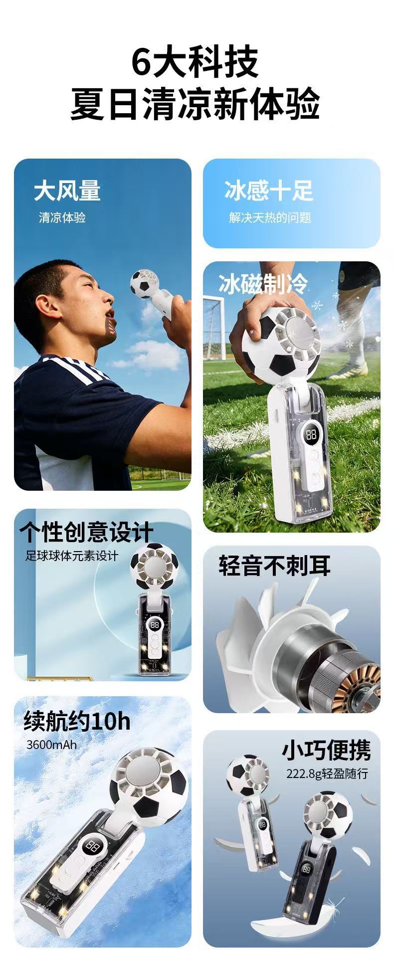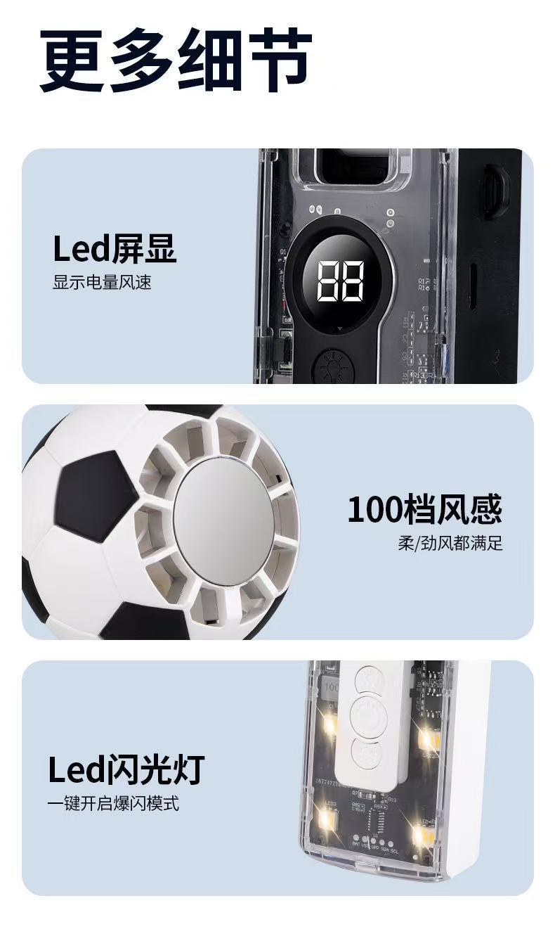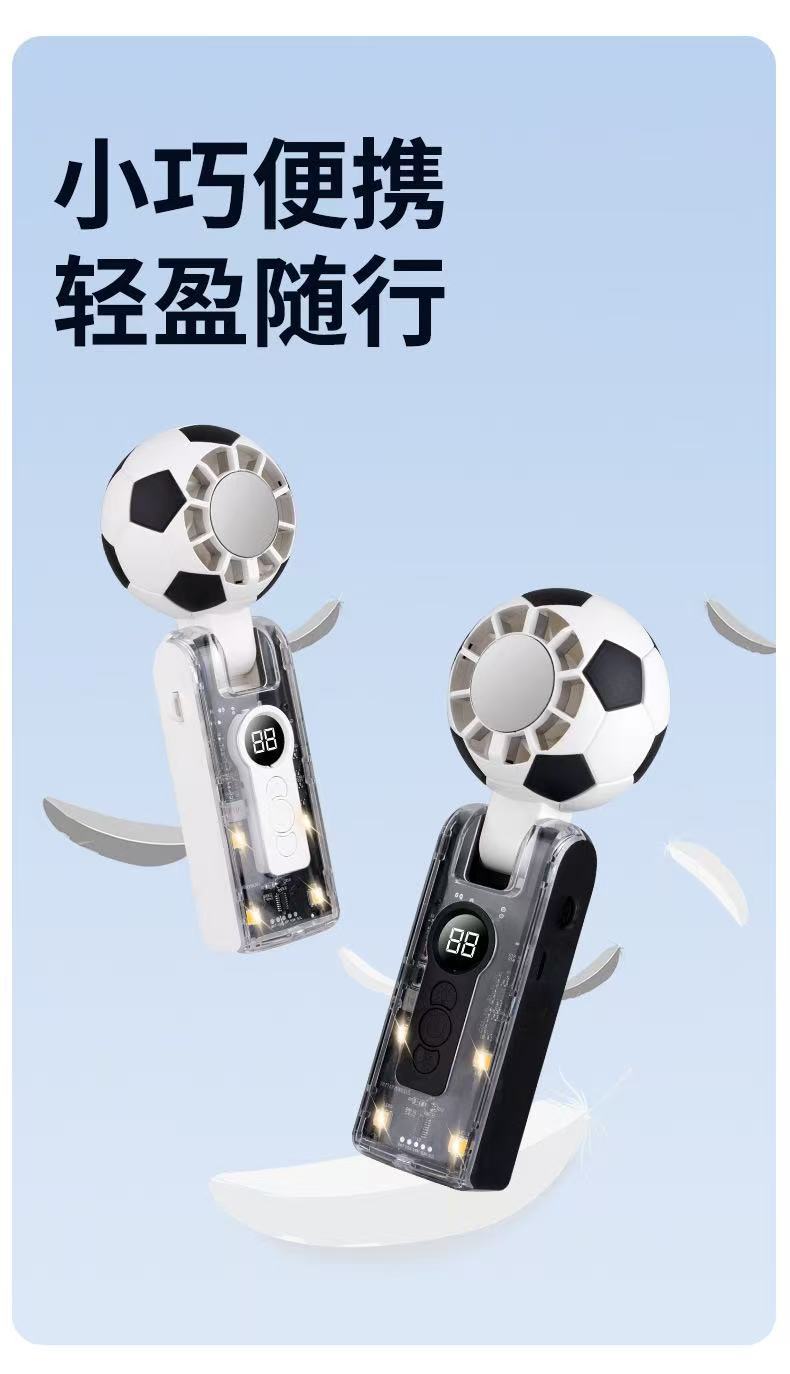 跨境新款x68足球手持风扇透明机甲冰敷数码显屏100档超大涡轮风扇