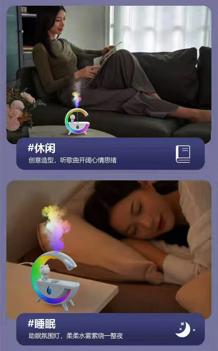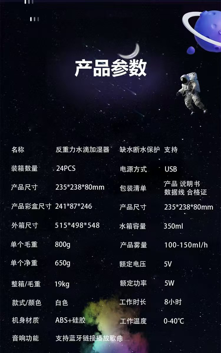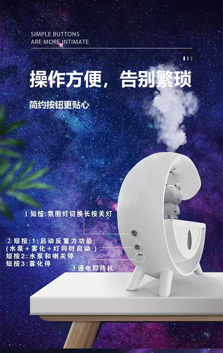 跨境新款大G反重力加湿器多功能家用太空人蓝牙音箱七彩加湿器