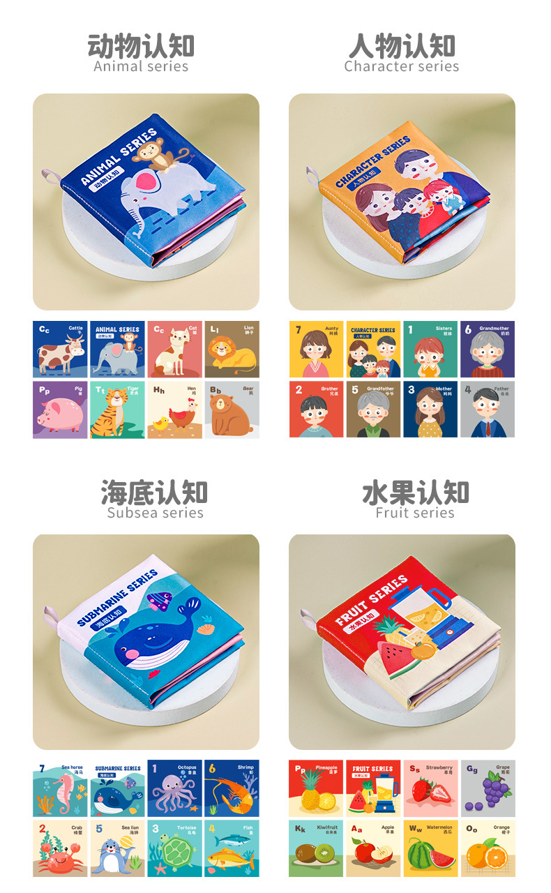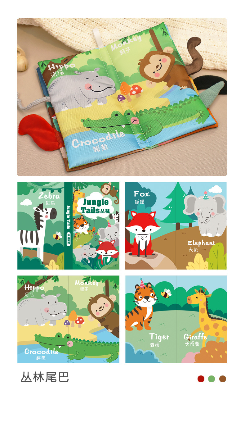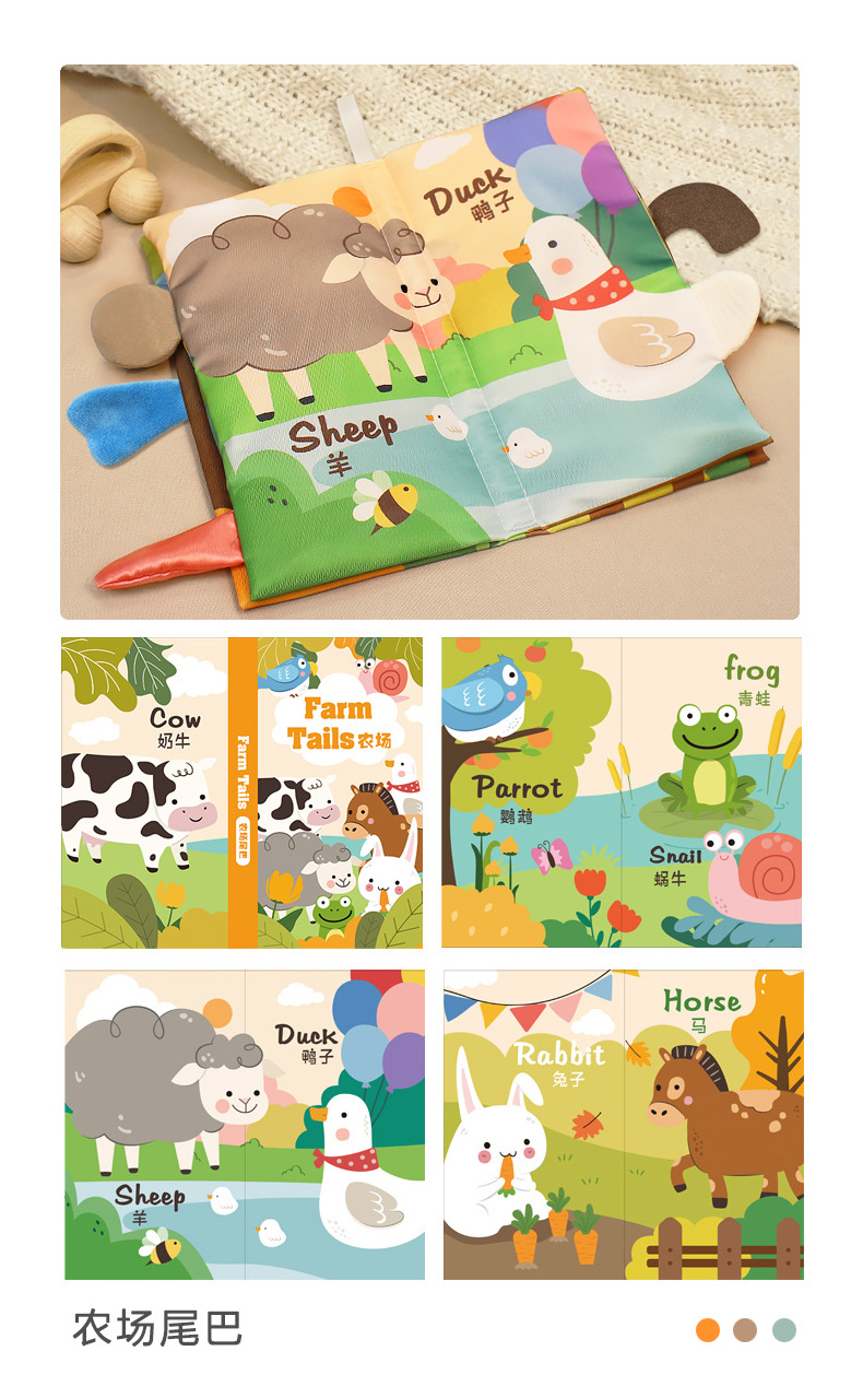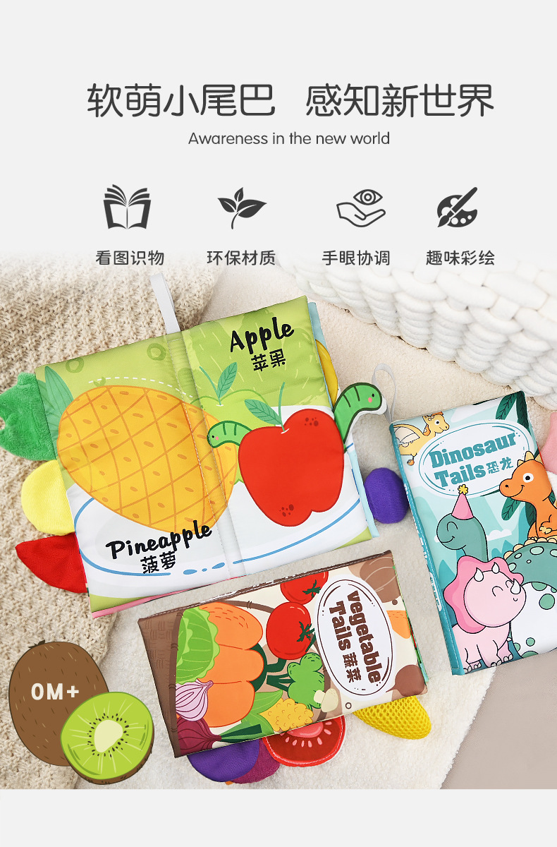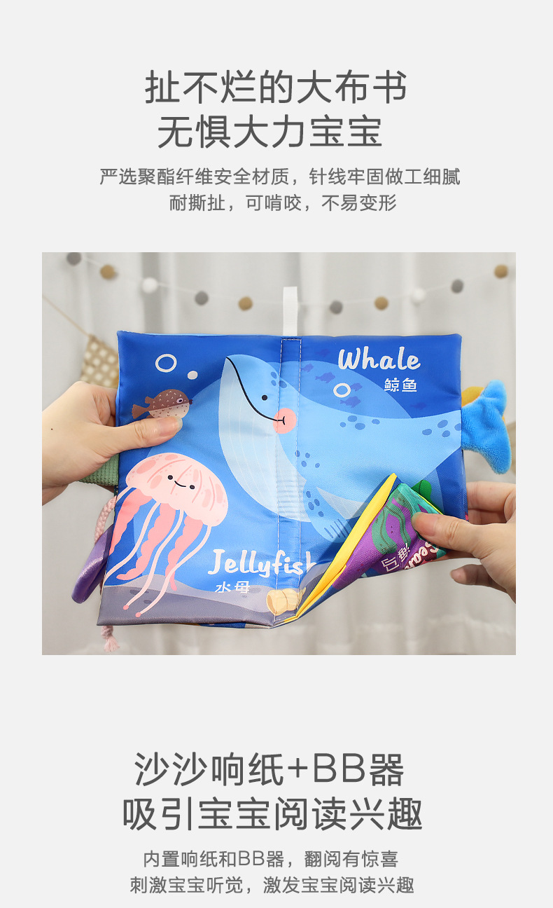 婴儿宝宝撕不烂布书婴儿早教撕撕书带响纸儿童早教认知尾巴布书