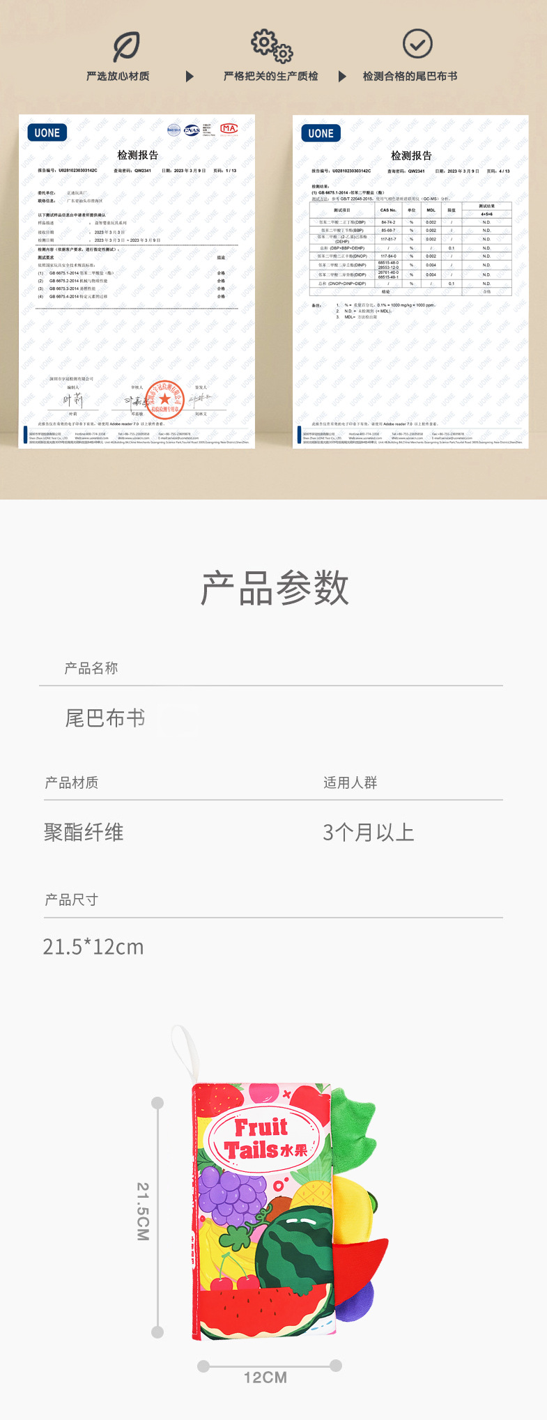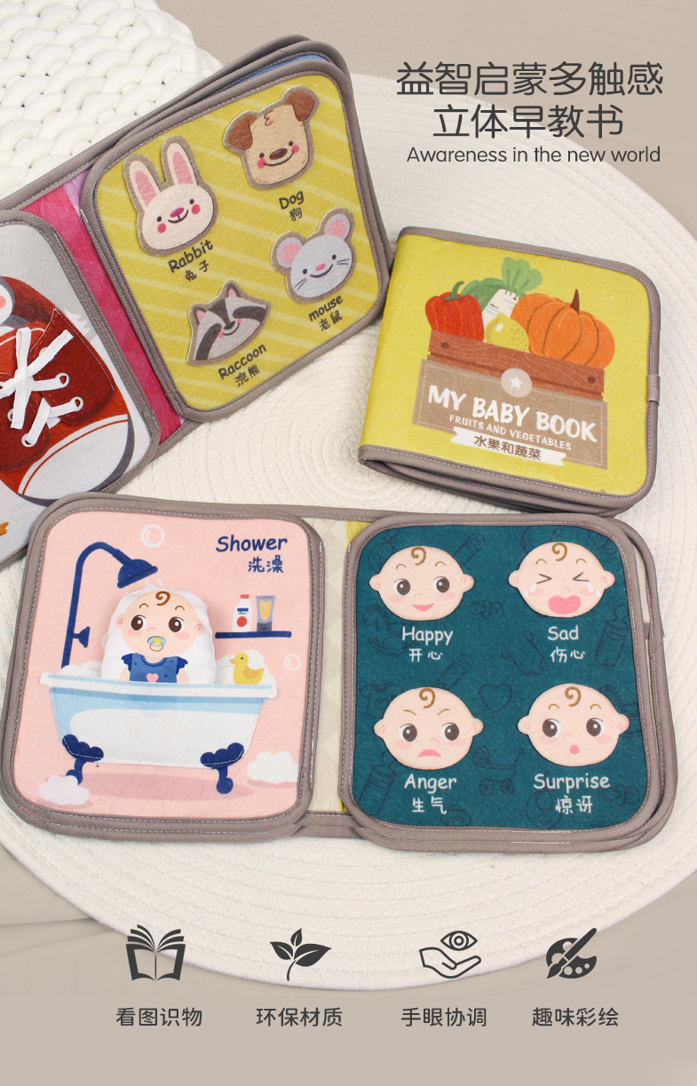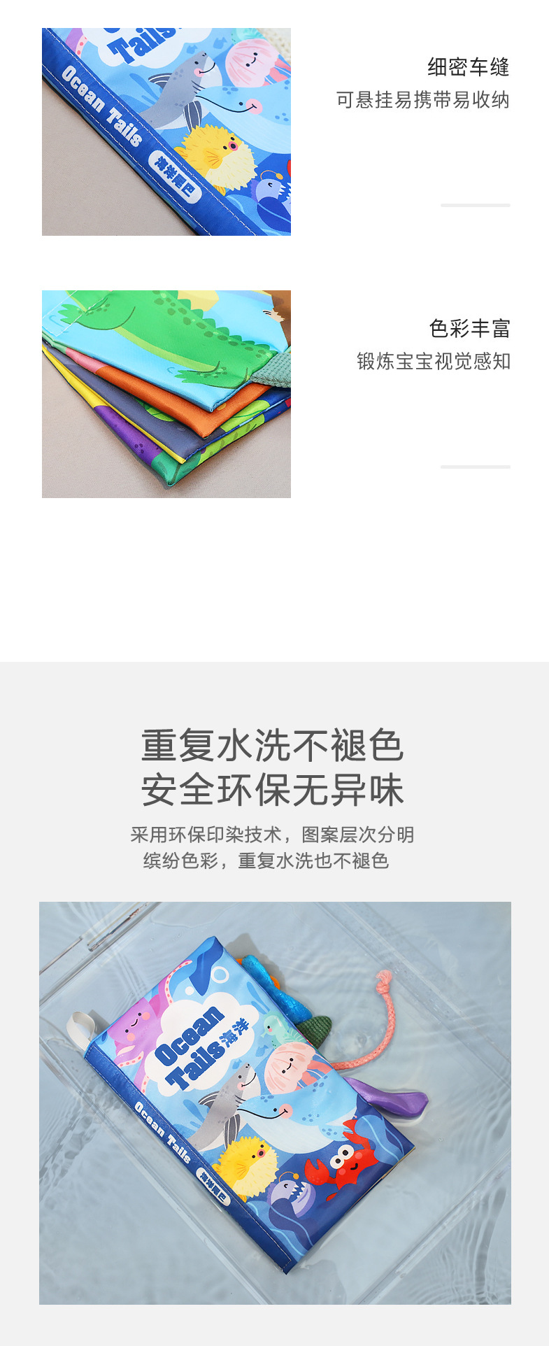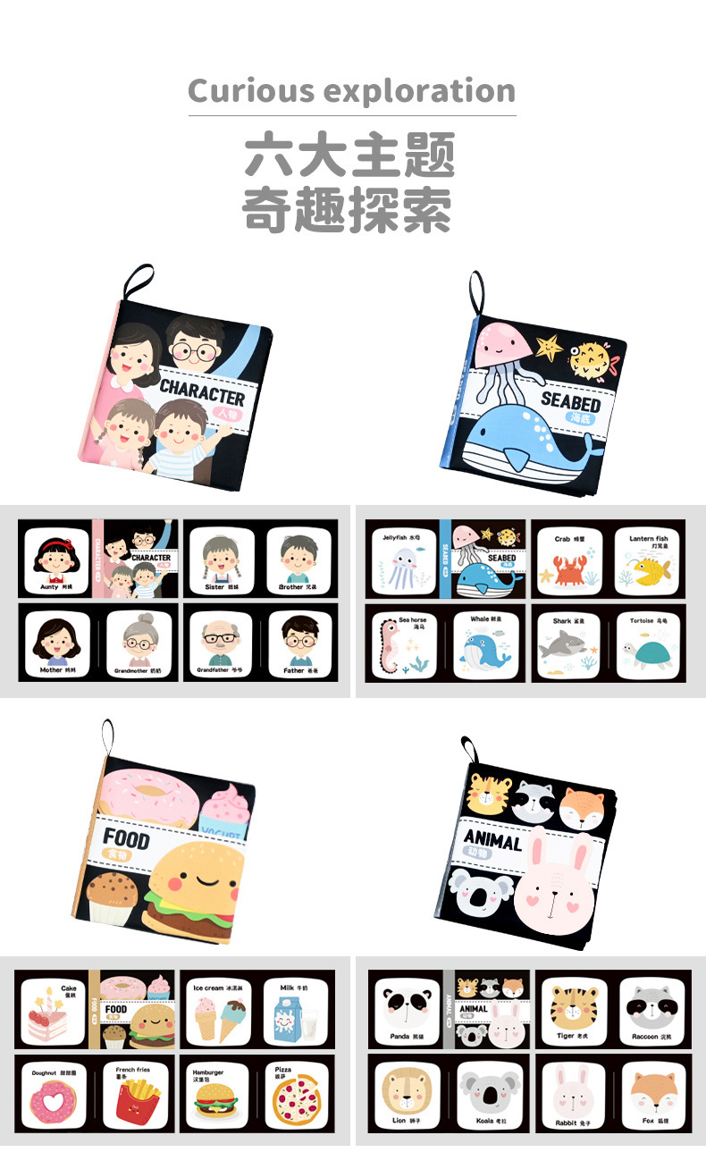 婴儿宝宝撕不烂布书婴儿早教撕撕书带响纸儿童早教认知尾巴布书
