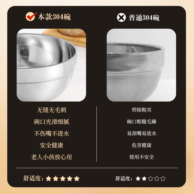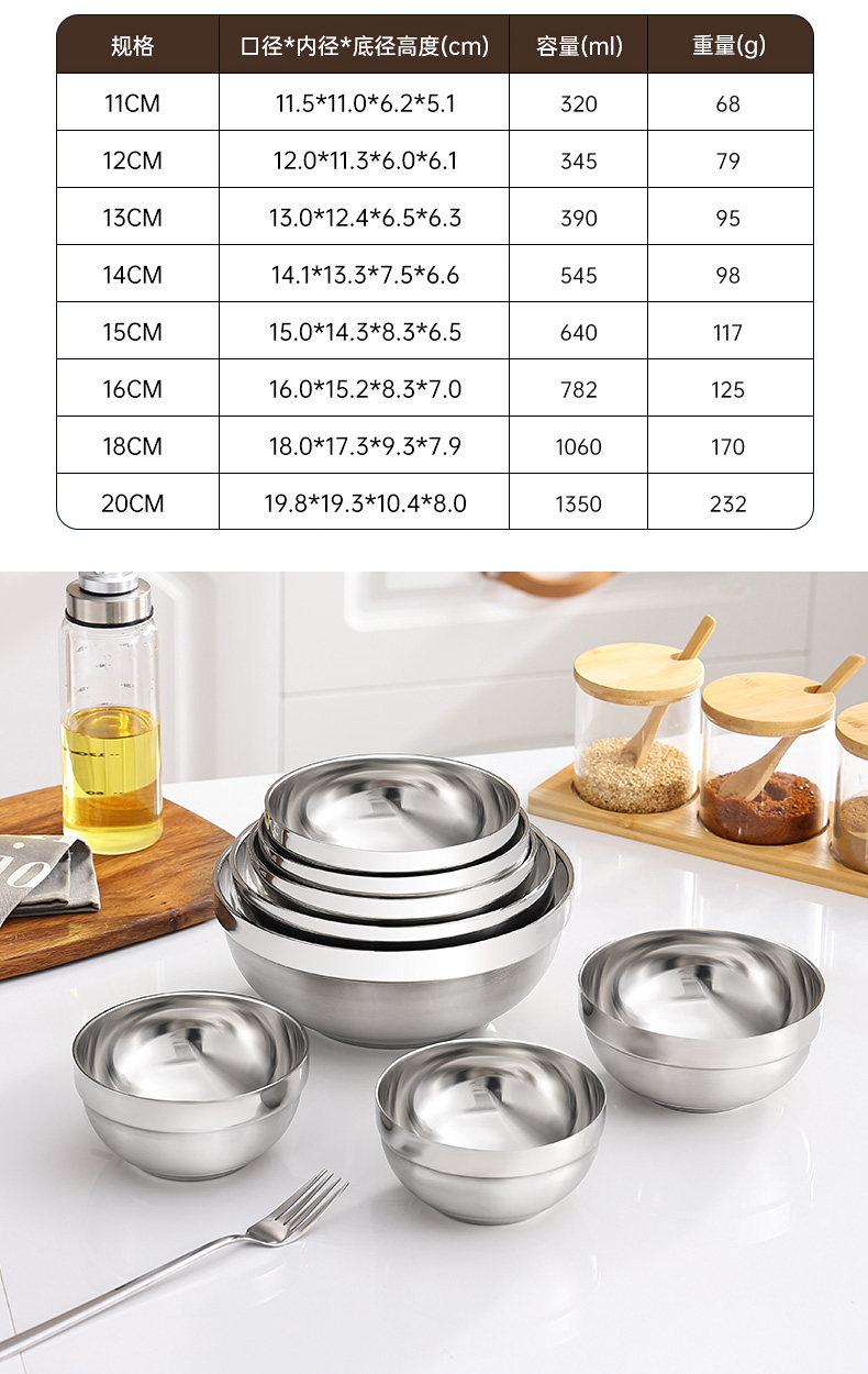 304不锈钢饭碗食品级儿童汤碗双层小碗学生碗加厚汤碗商用碗批发