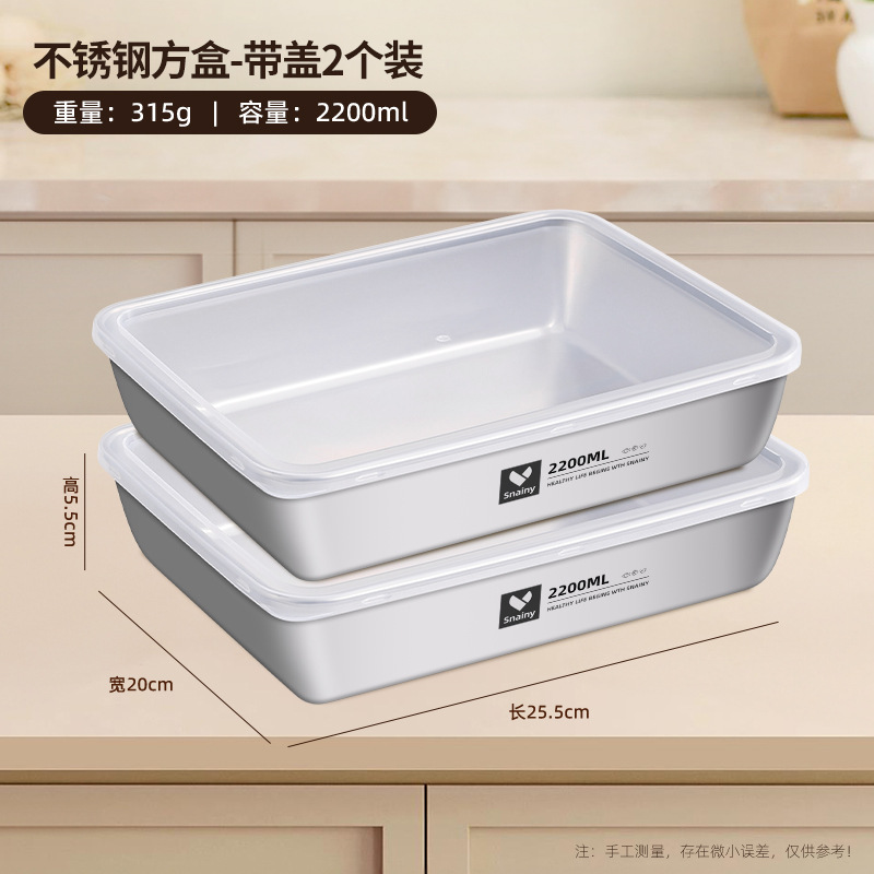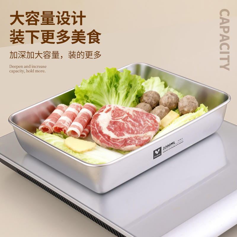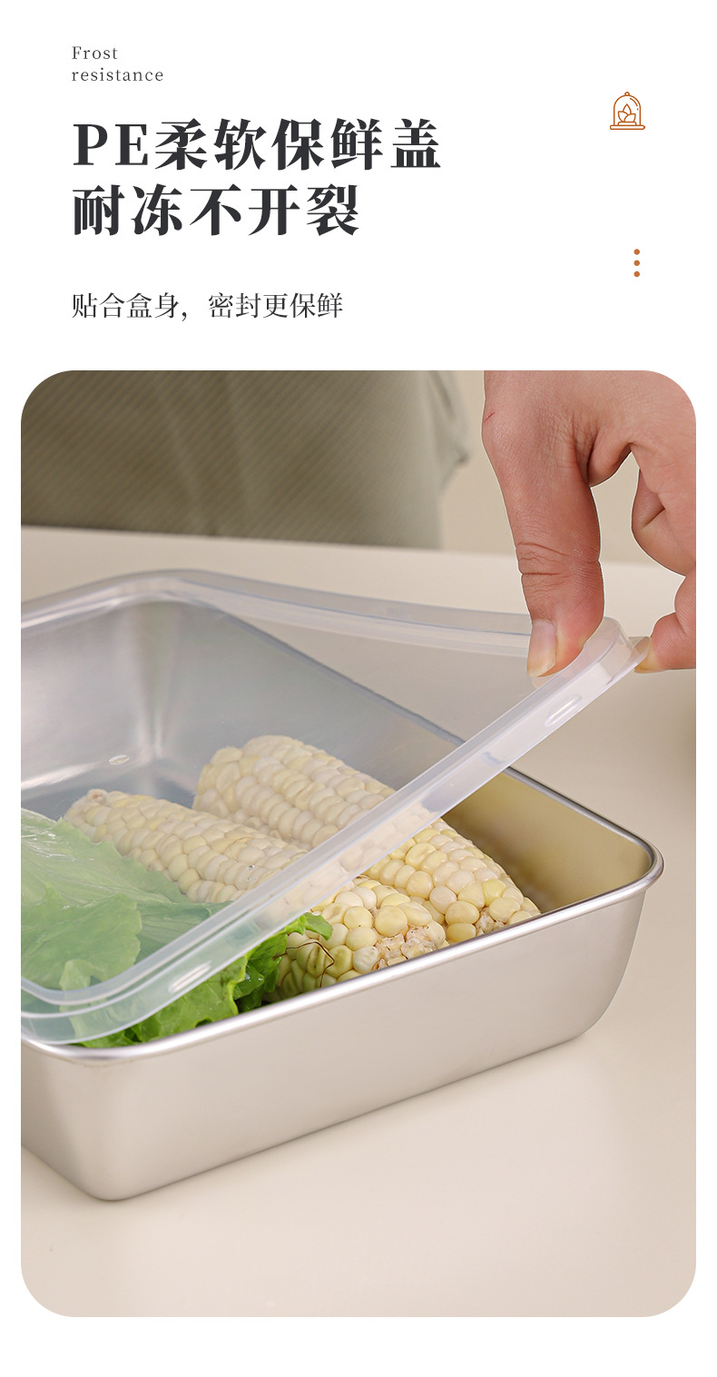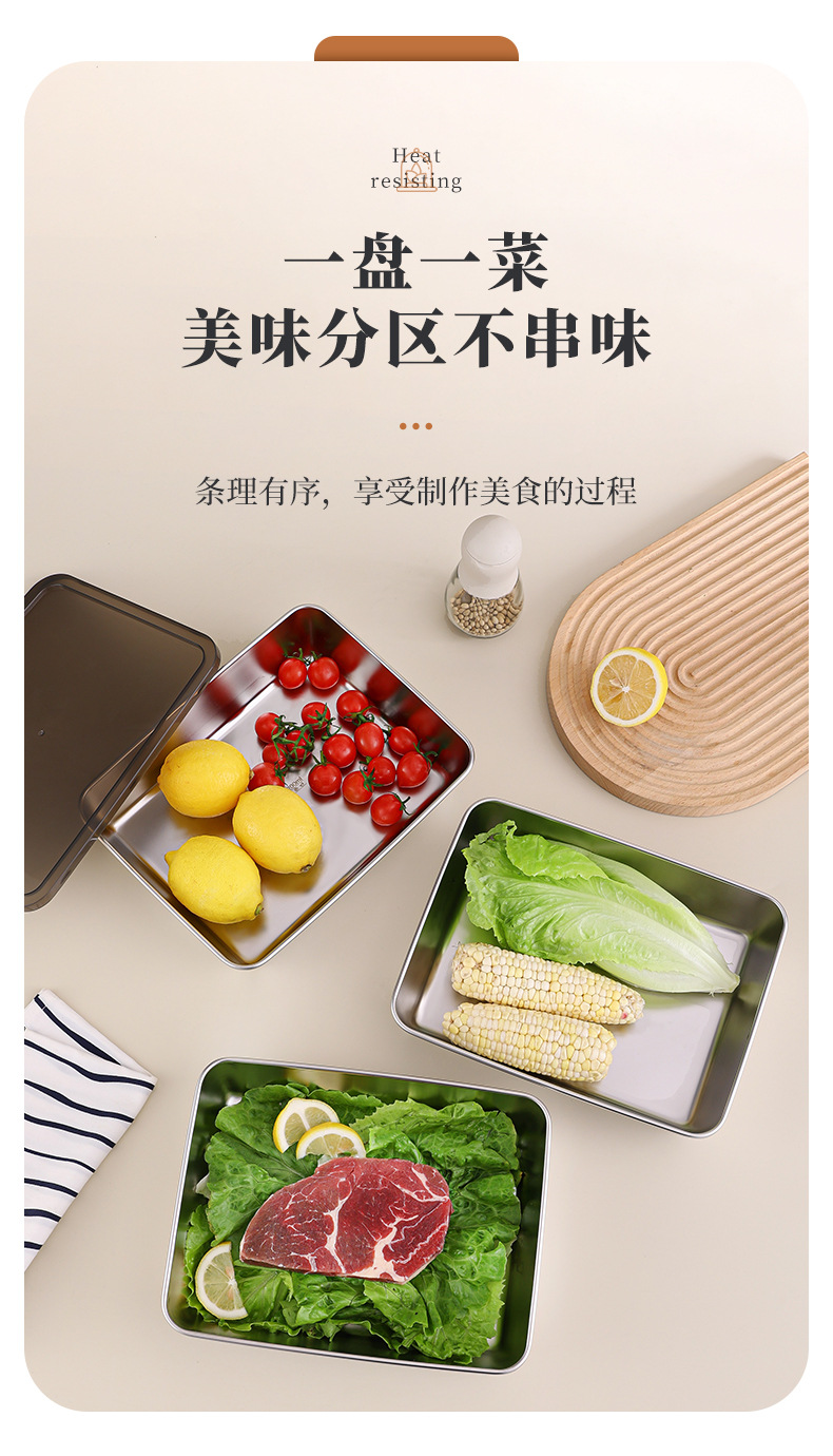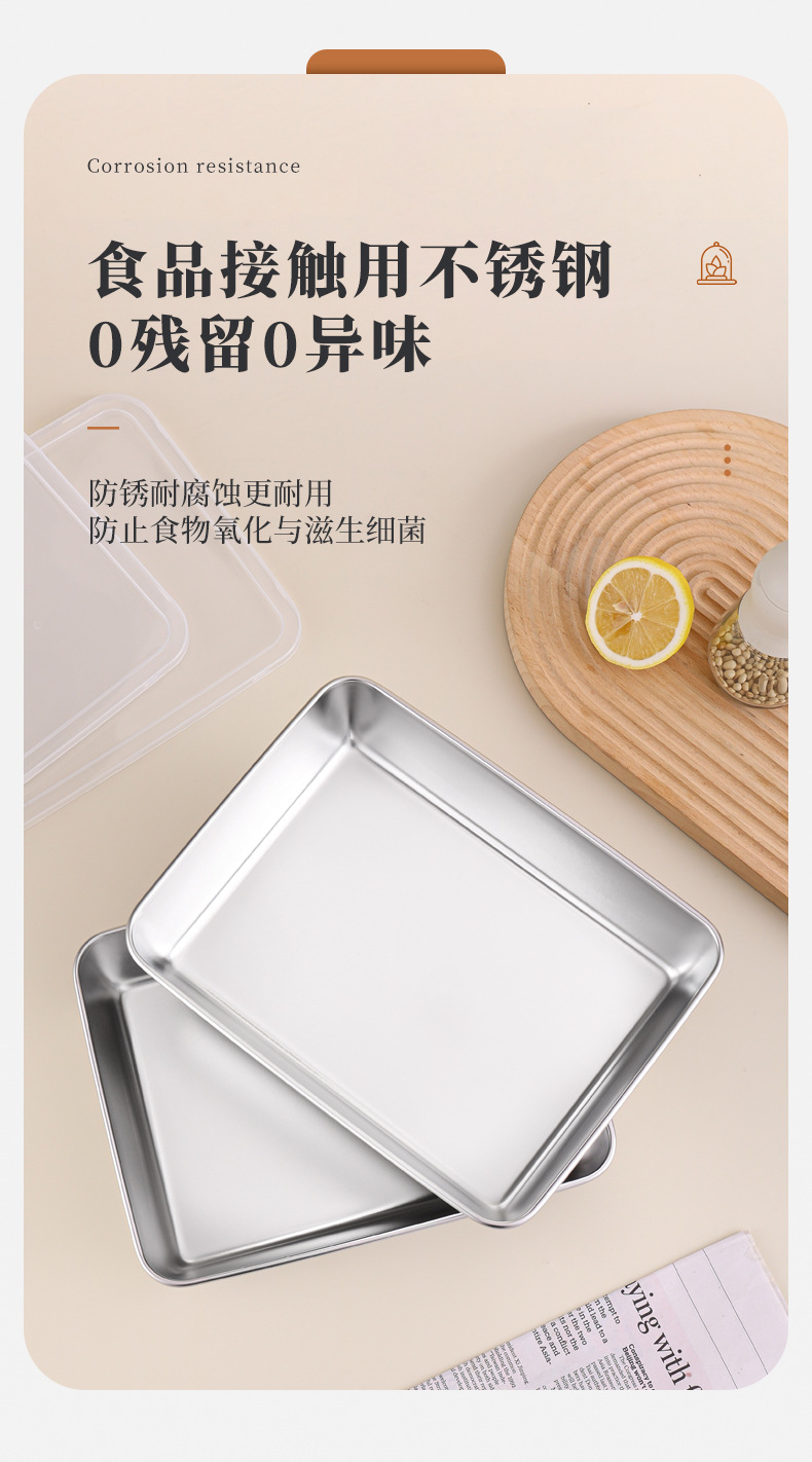 不锈钢方盘带盖长方形盘子家用备菜盘托盘加厚方盒子冰箱保鲜盒