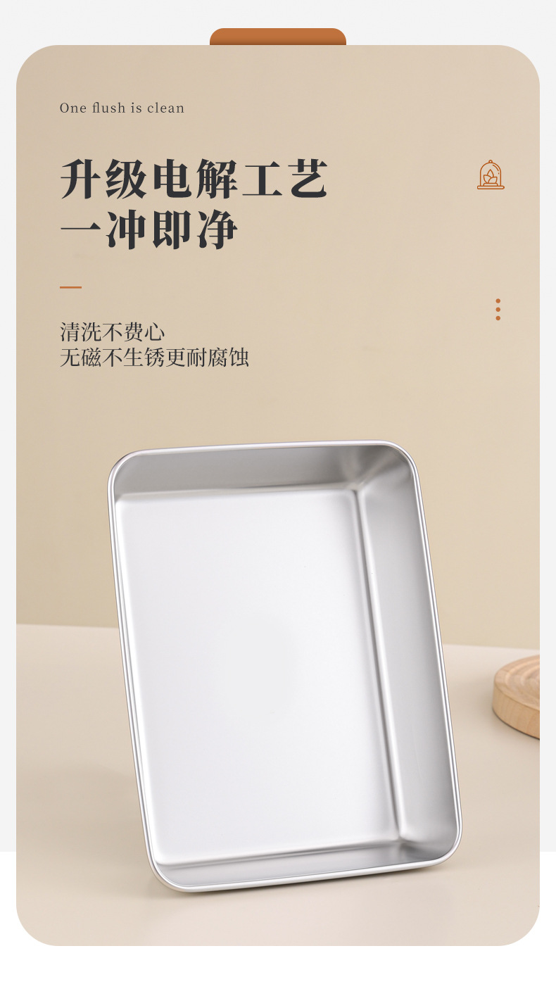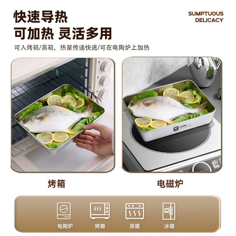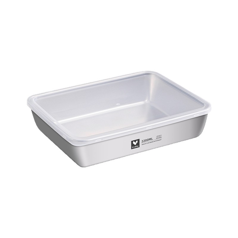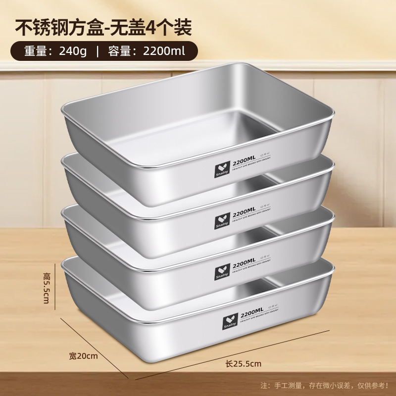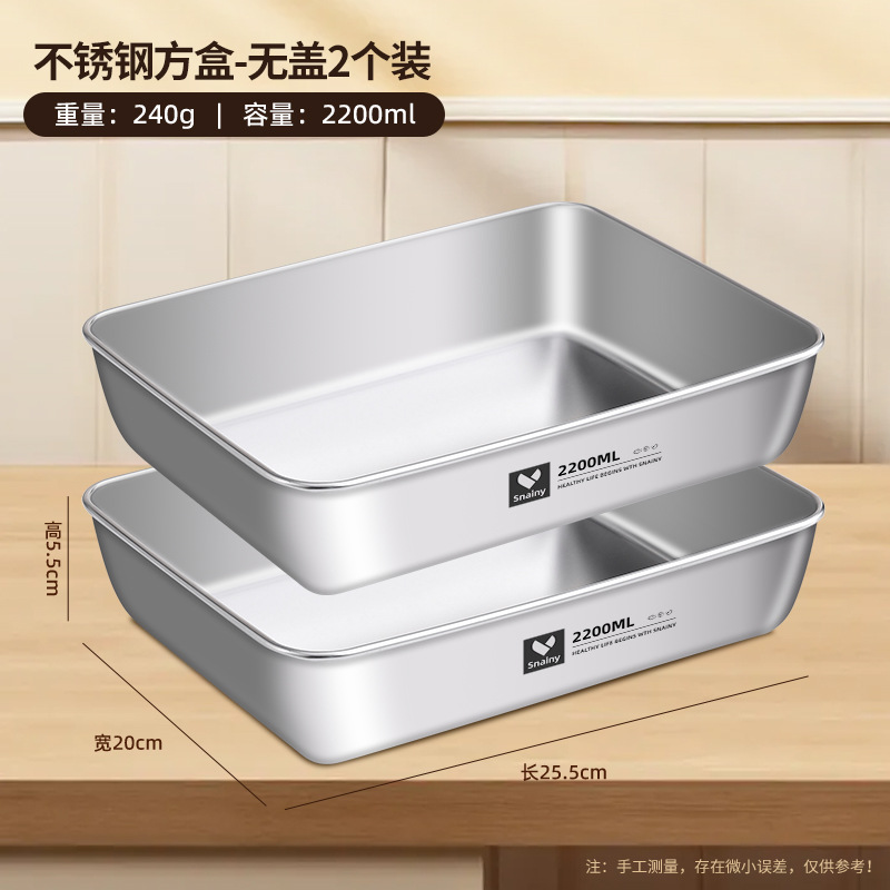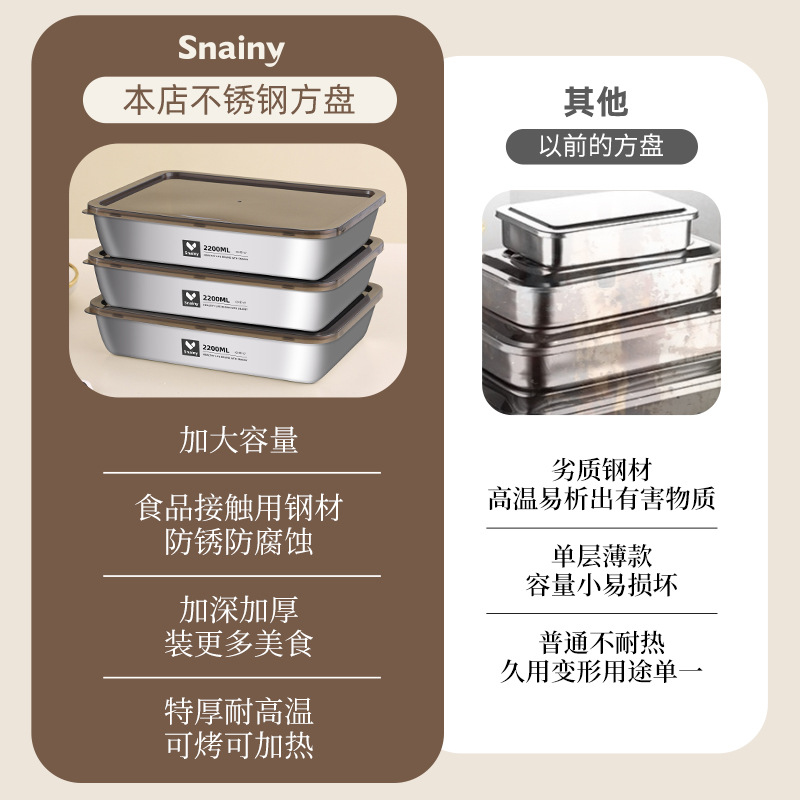 不锈钢方盘带盖长方形盘子家用备菜盘托盘加厚方盒子冰箱保鲜盒