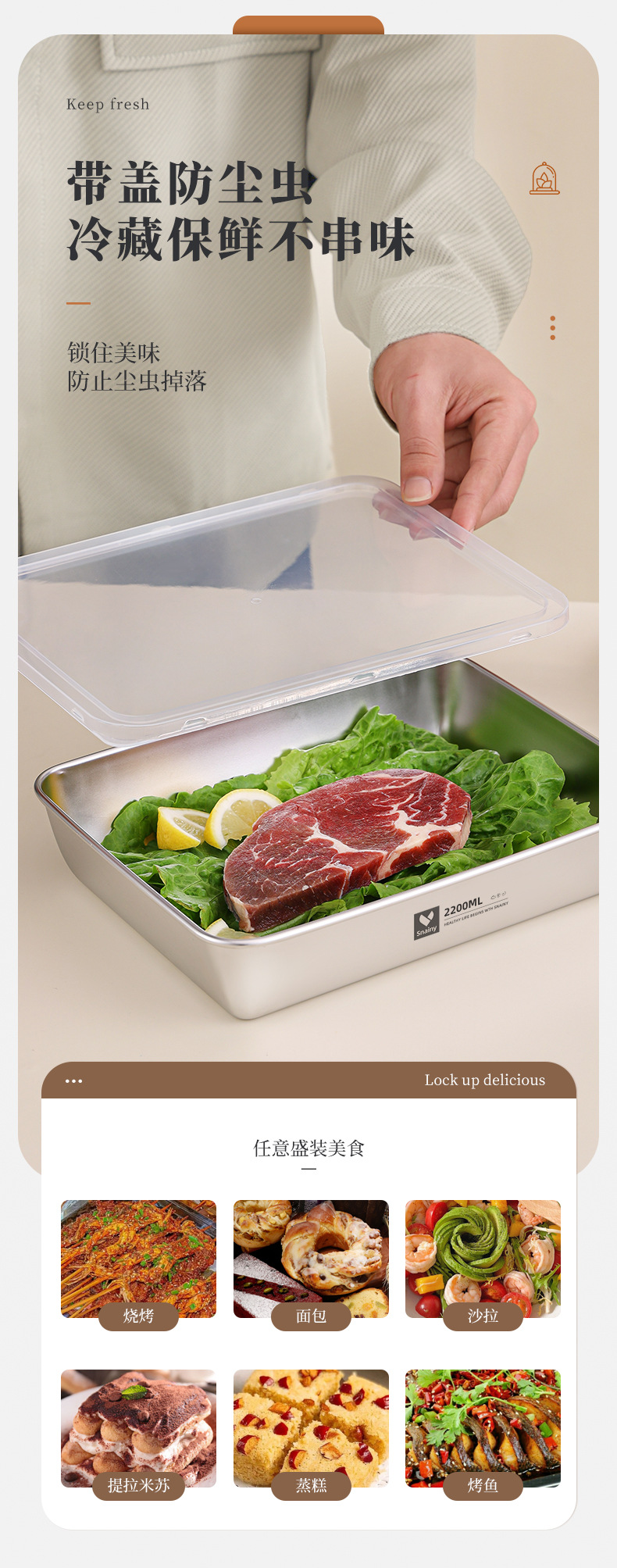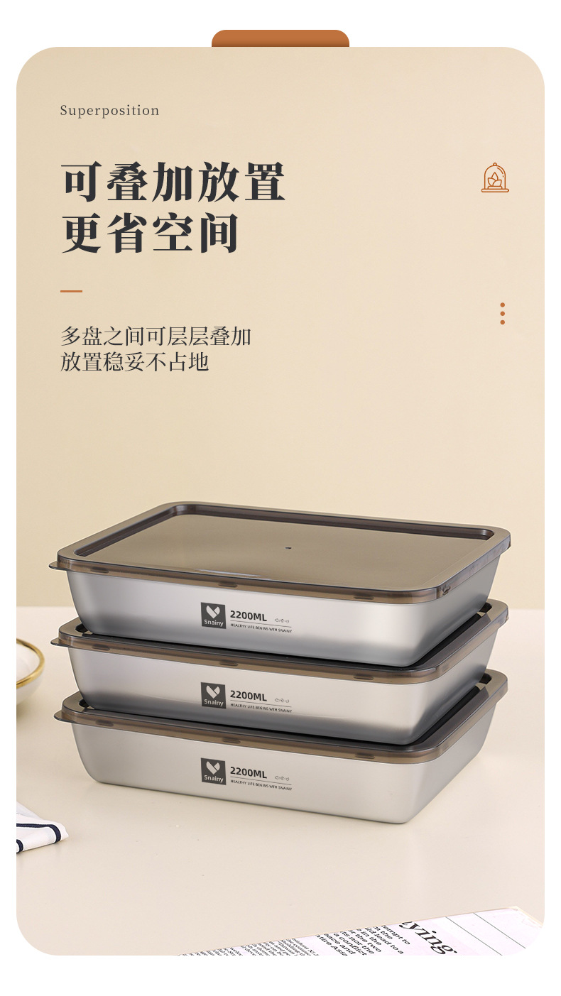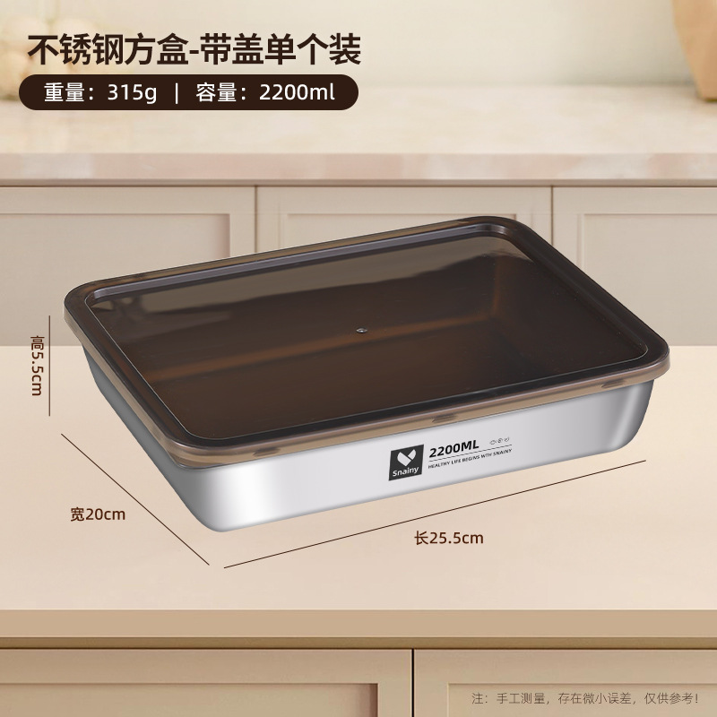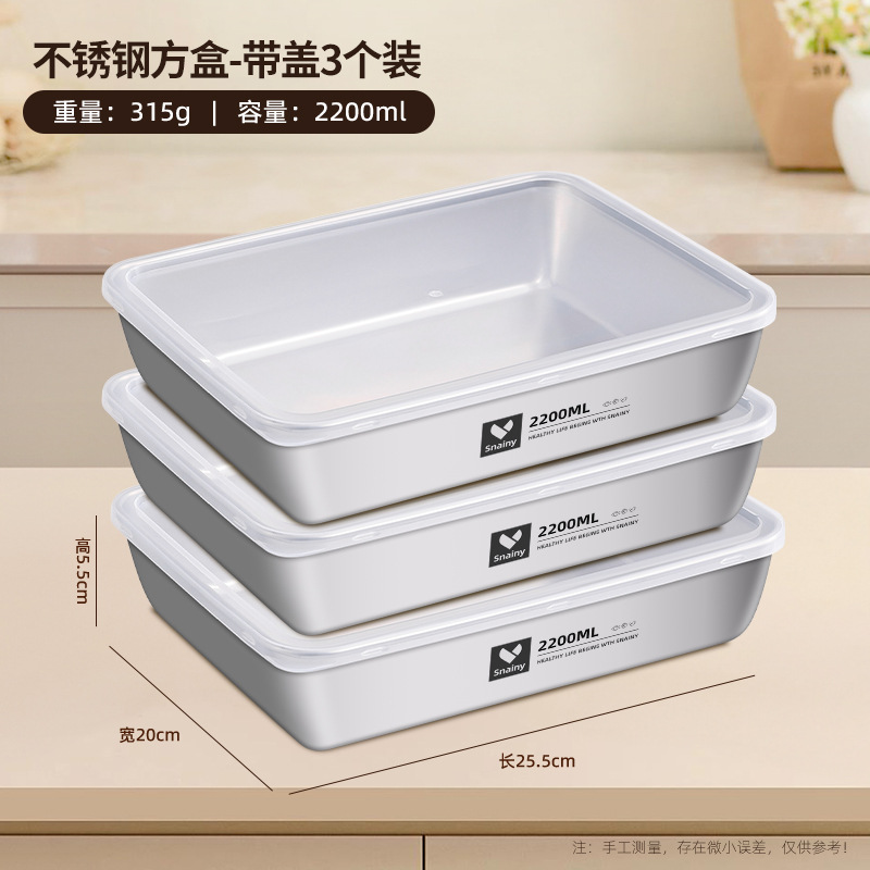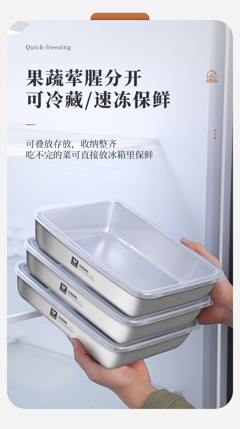 不锈钢方盘带盖长方形盘子家用备菜盘托盘加厚方盒子冰箱保鲜盒