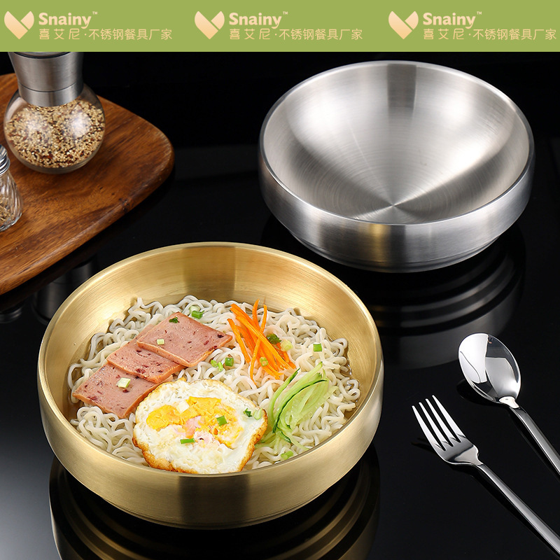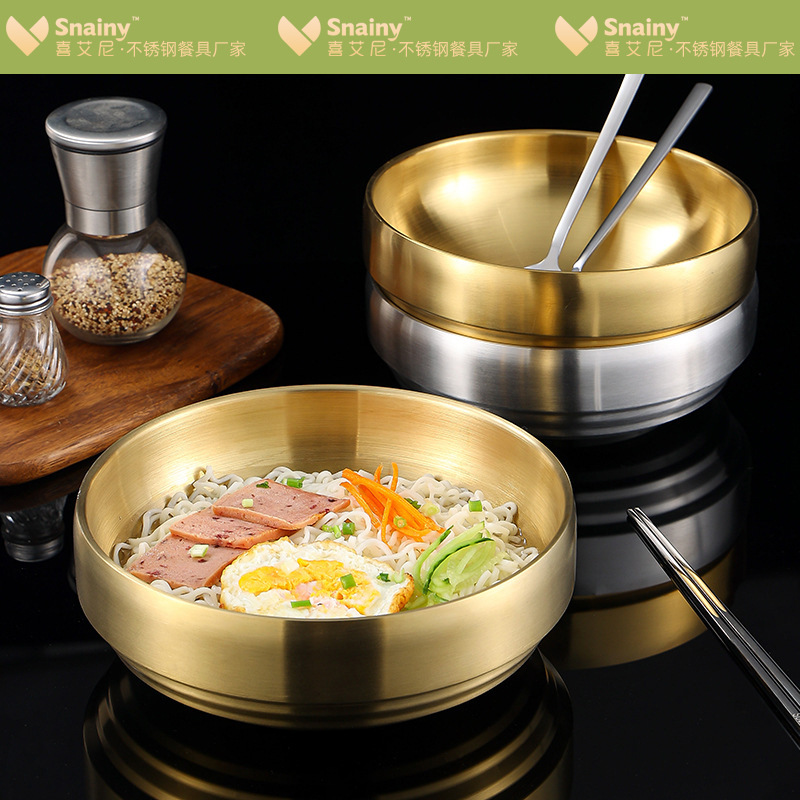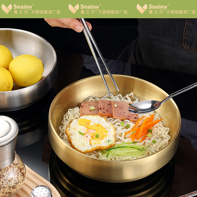 韩式不锈钢冷面碗家用双层拌饭碗高颜值沙拉碗商用大汤碗螺蛳粉碗
