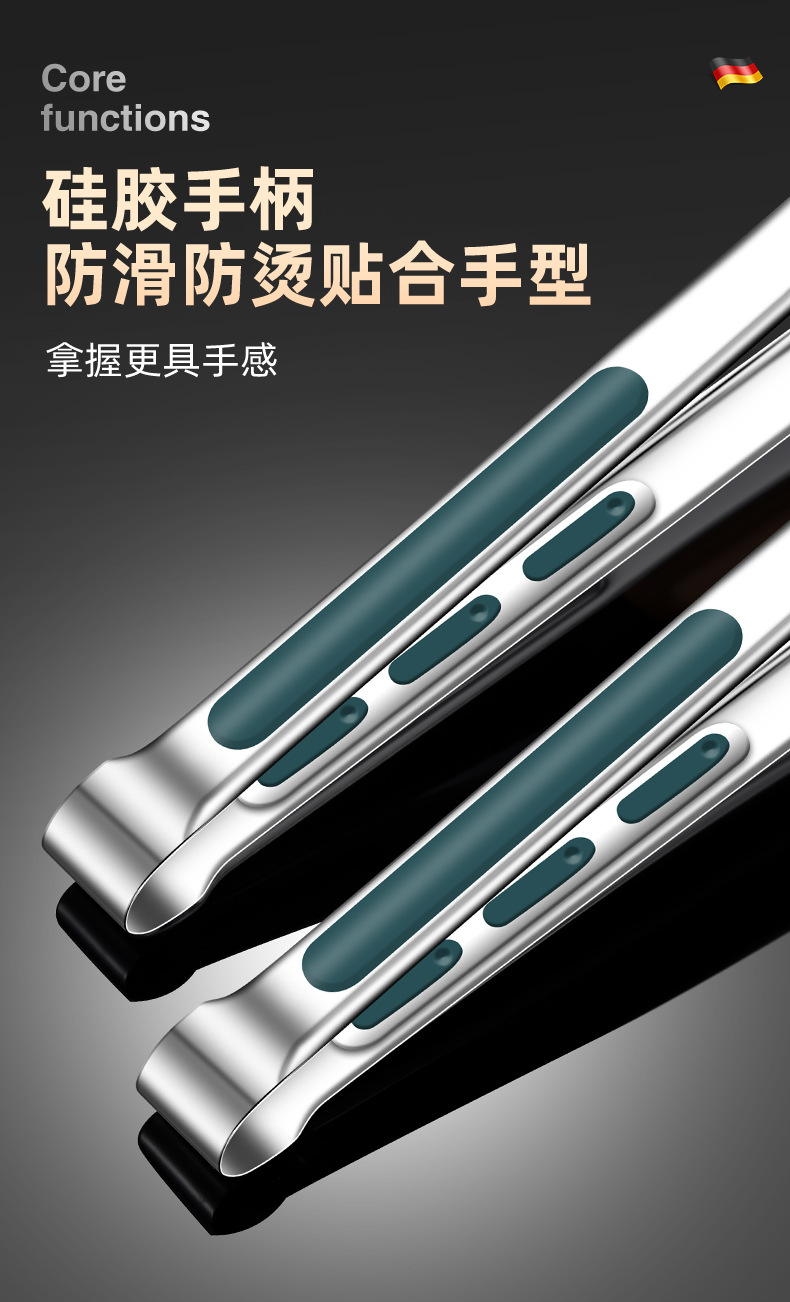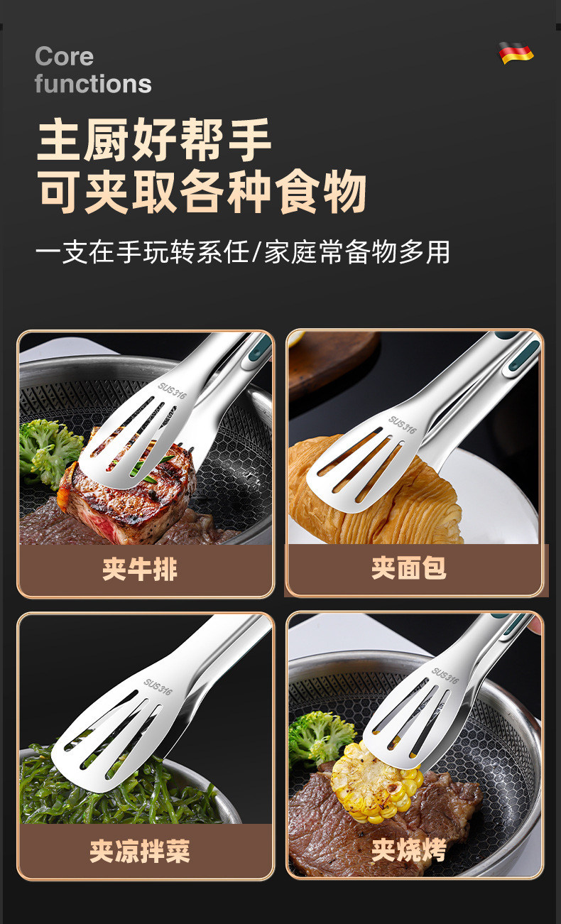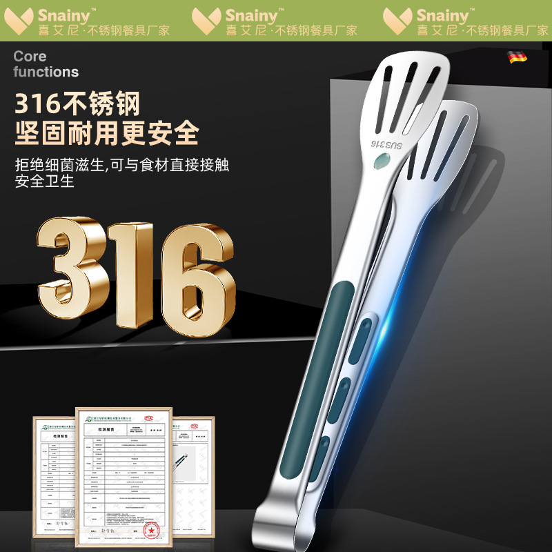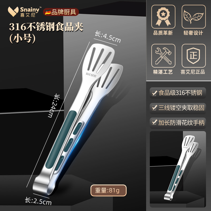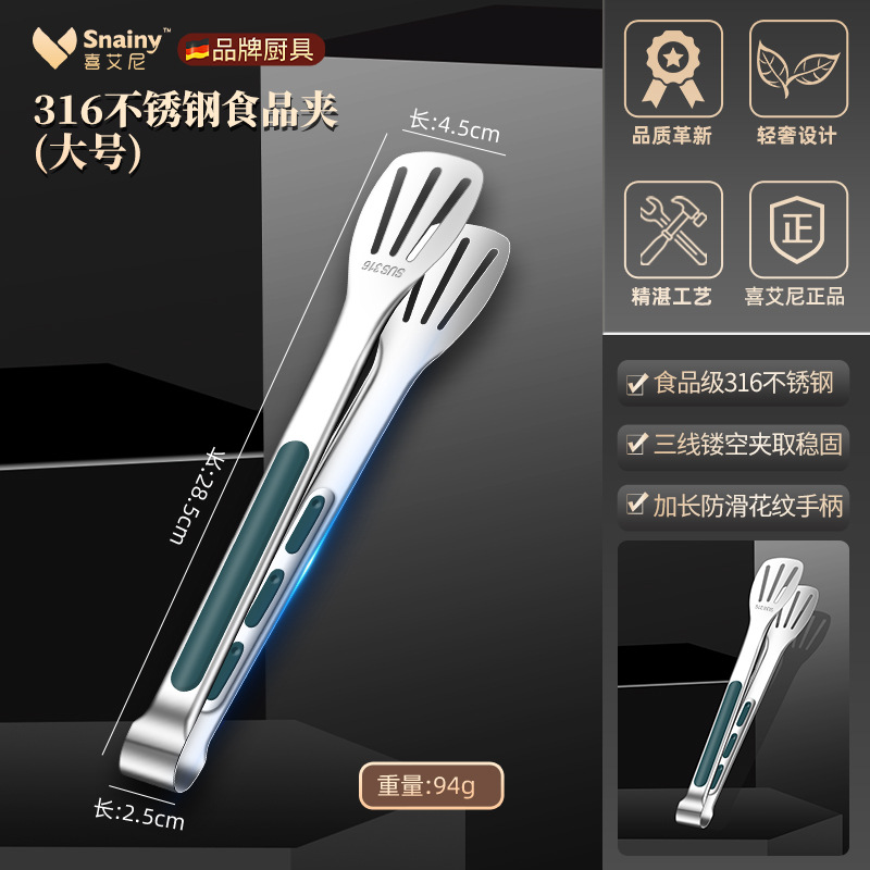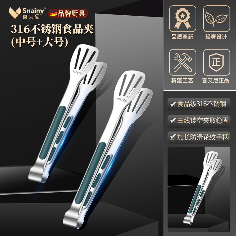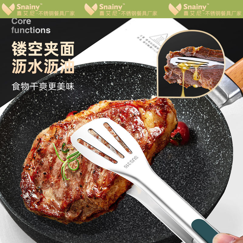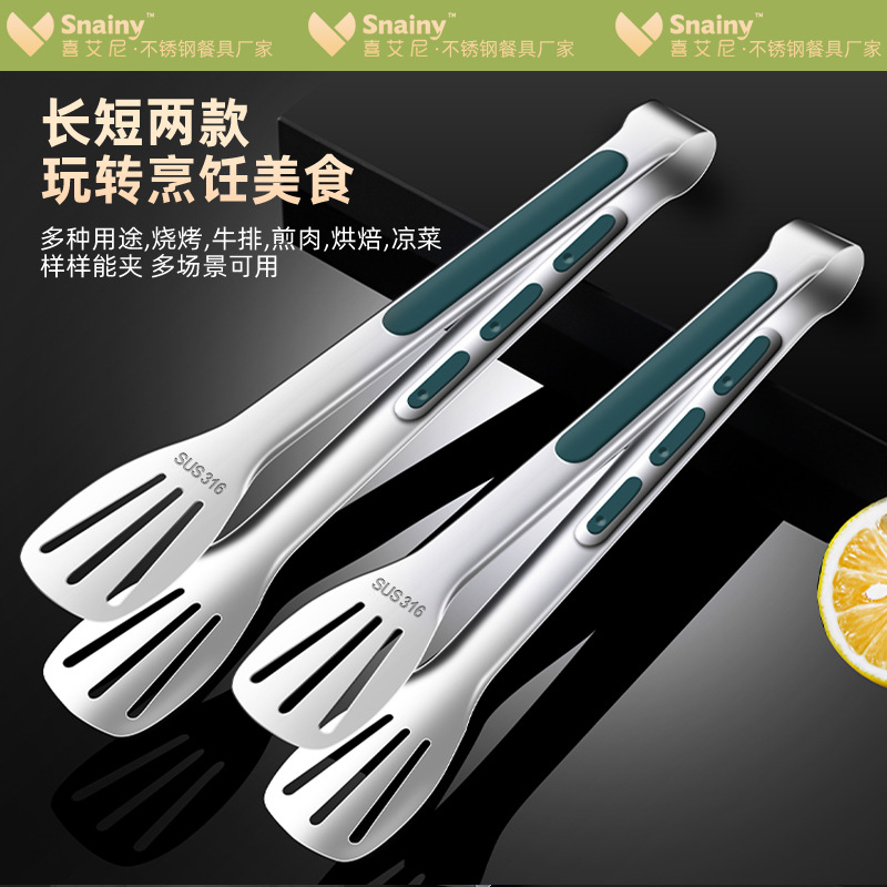316不锈钢食品夹子防烫家用厨房面包烤肉烧烤牛排硅胶食物夹