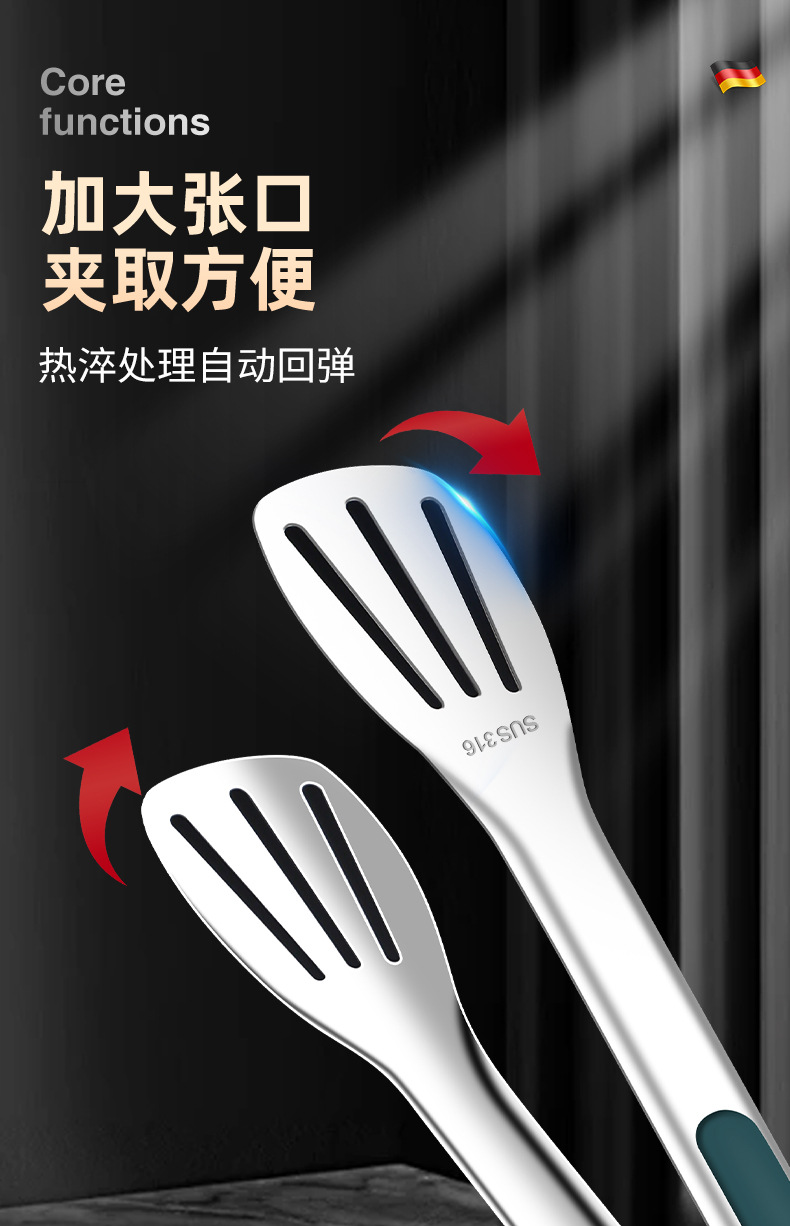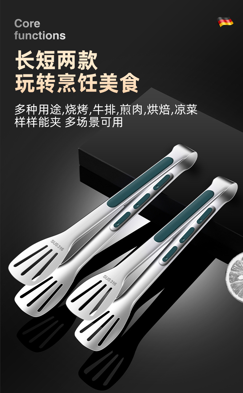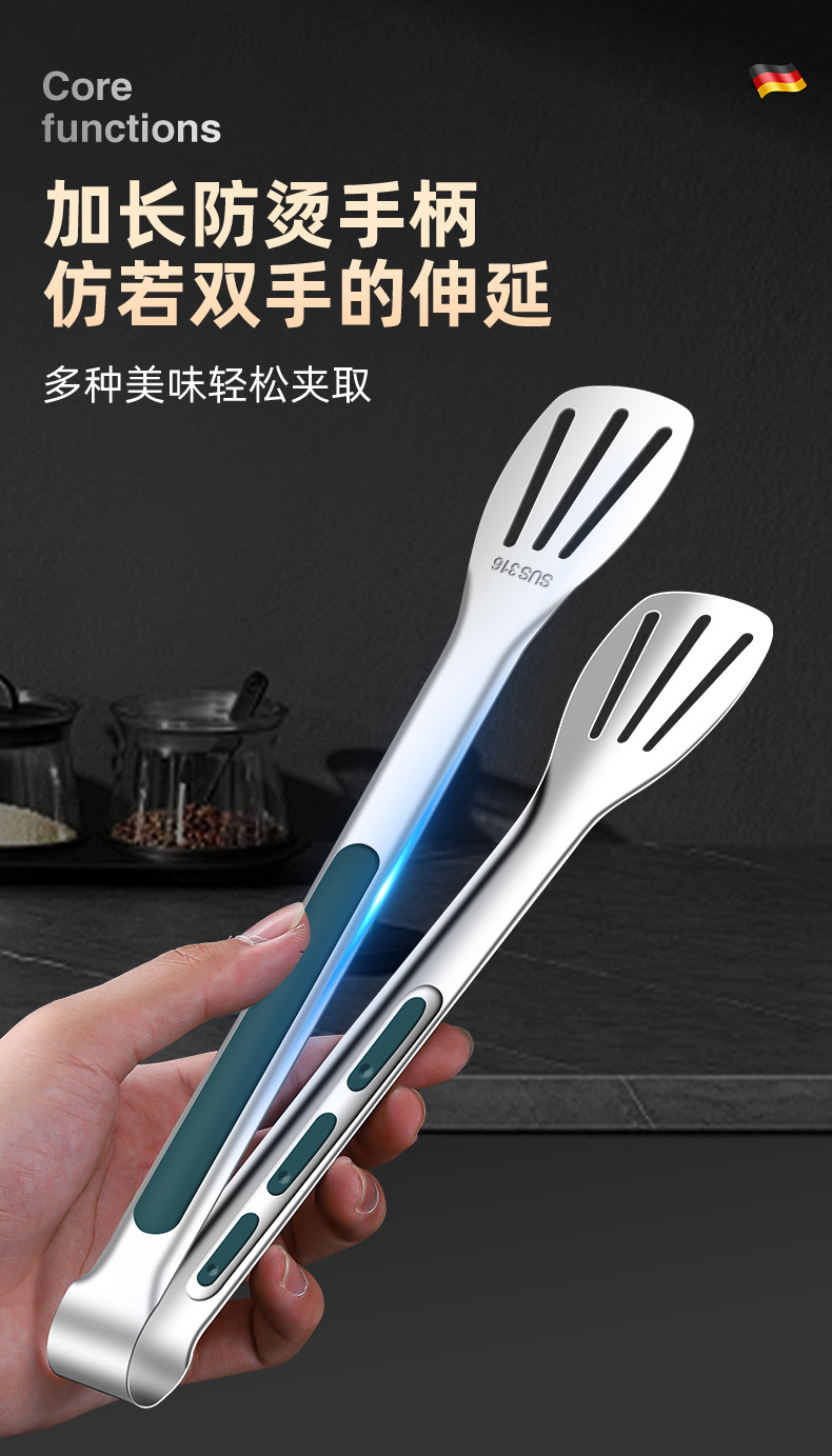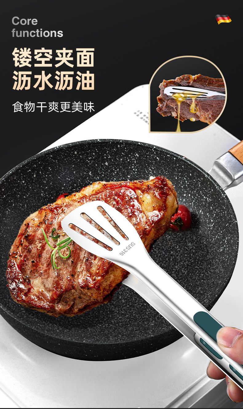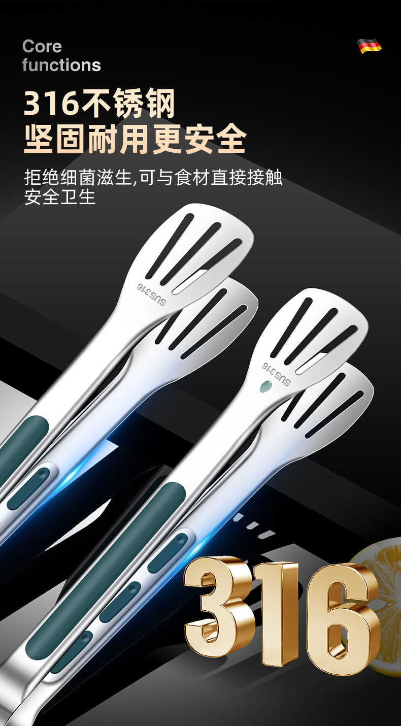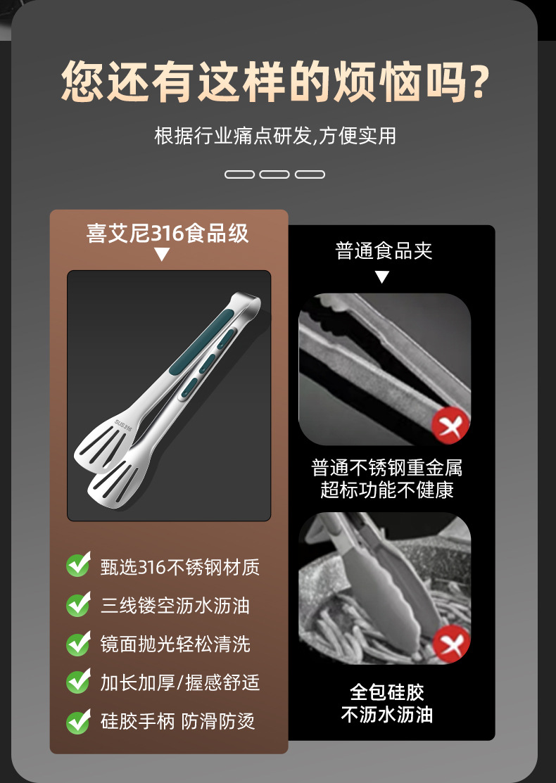 316不锈钢食品夹子防烫家用厨房面包烤肉烧烤牛排硅胶食物夹