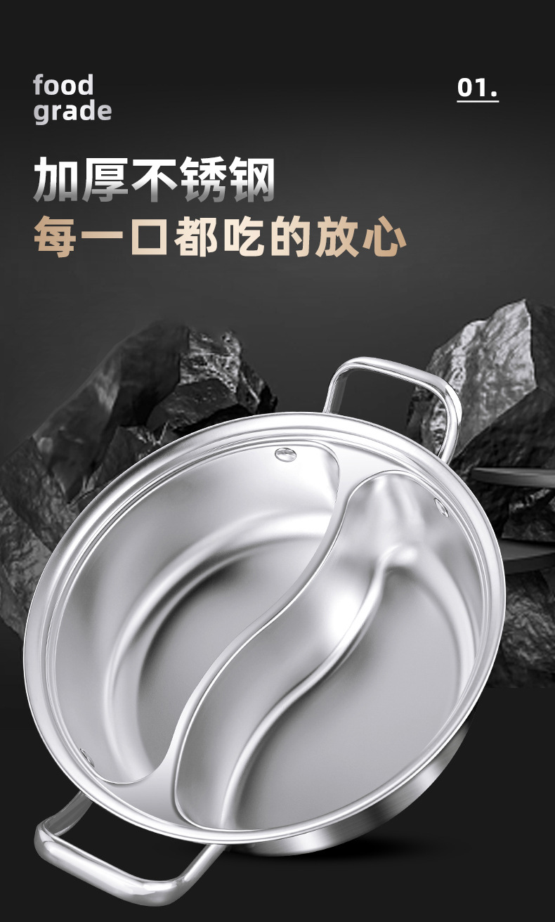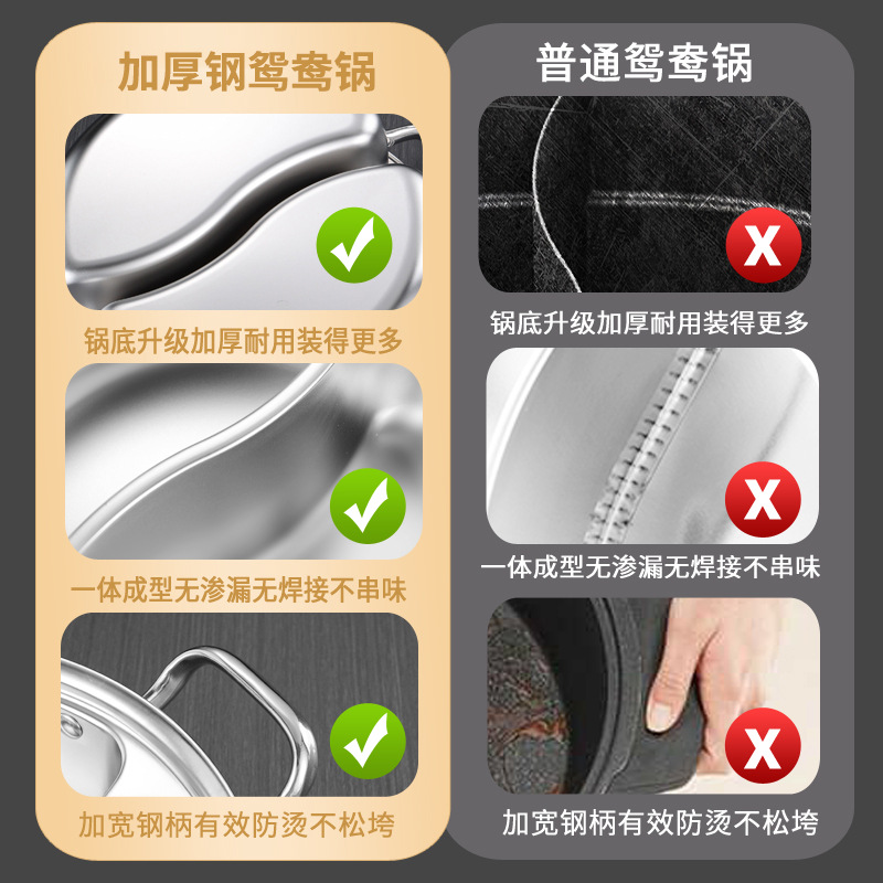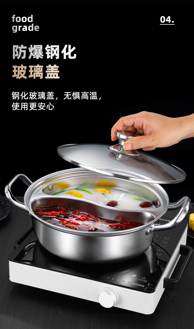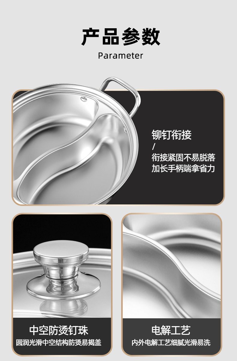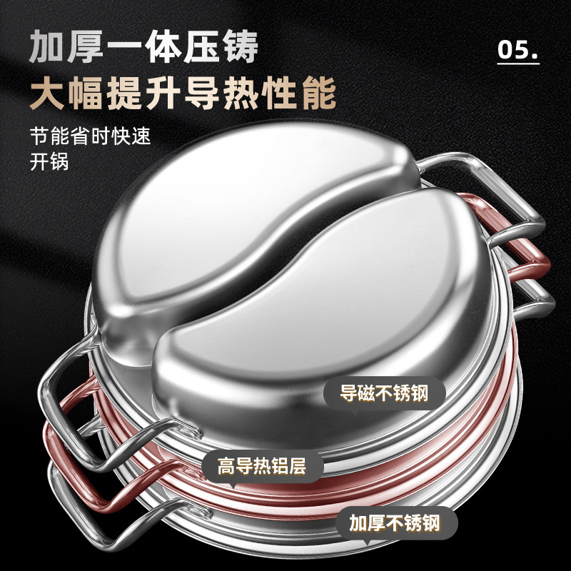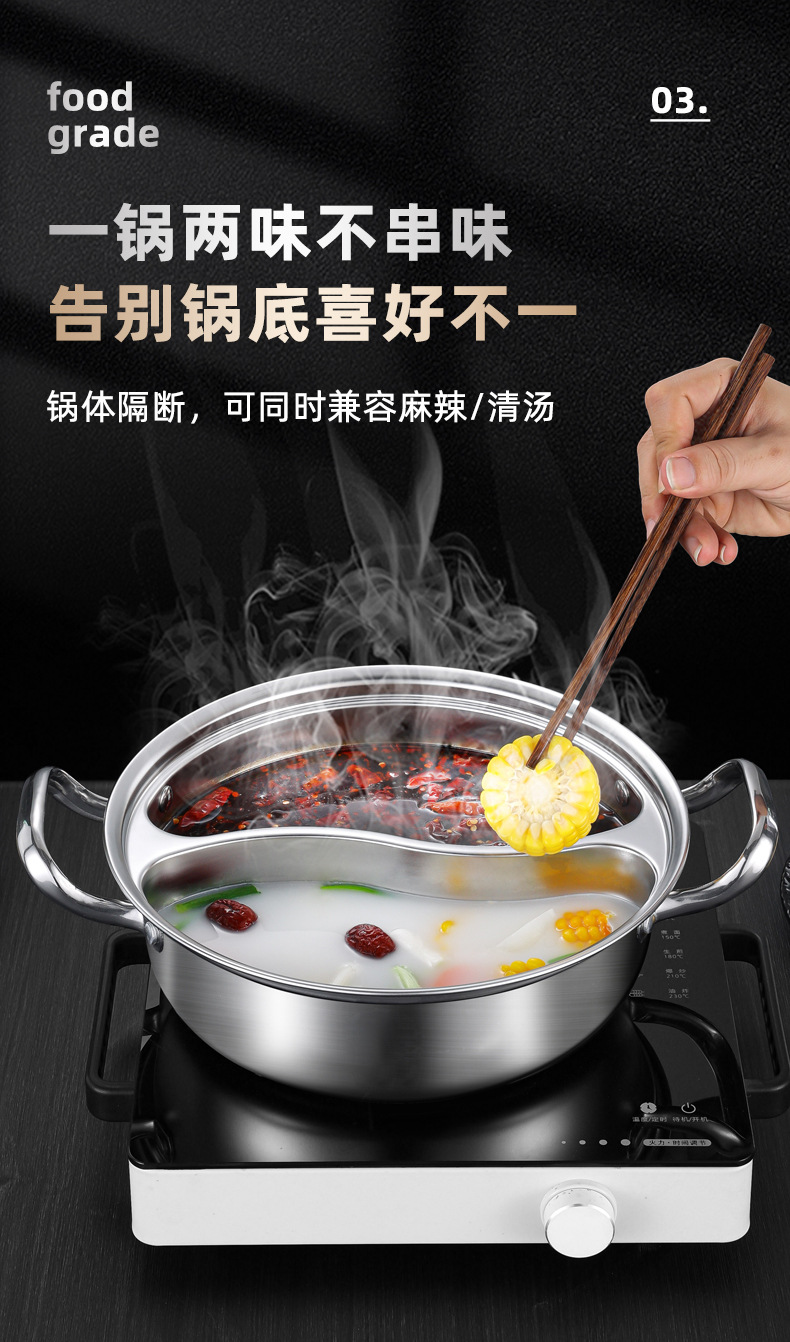 不锈钢鸳鸯大容量汤锅专用盆电磁炉火锅 火锅家用加厚鸳鸯锅