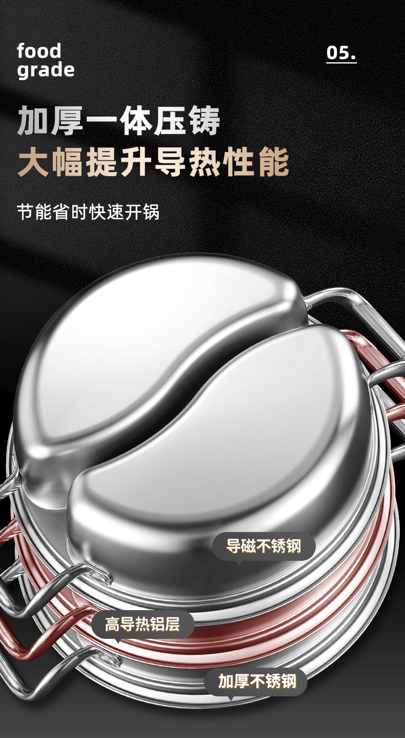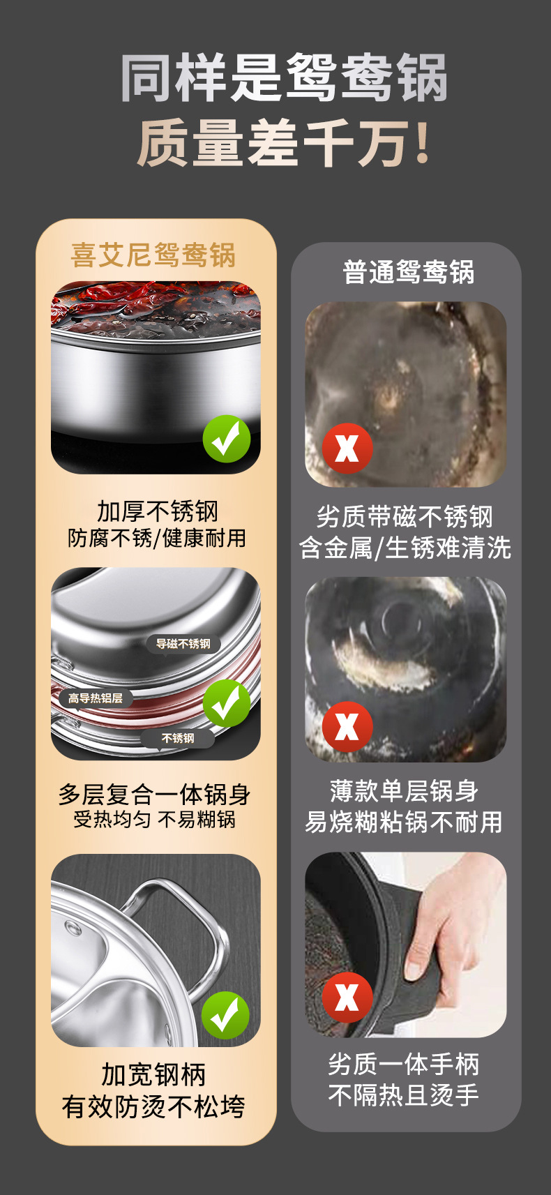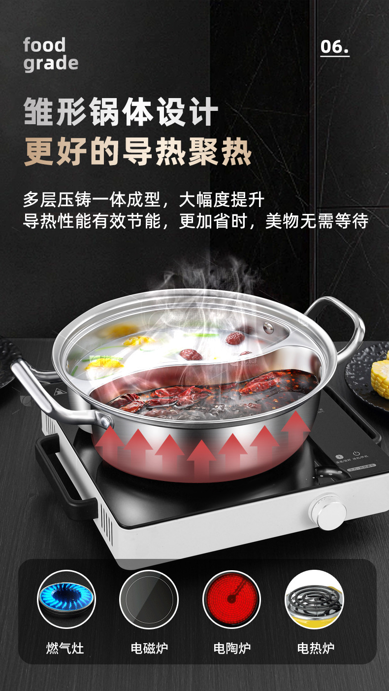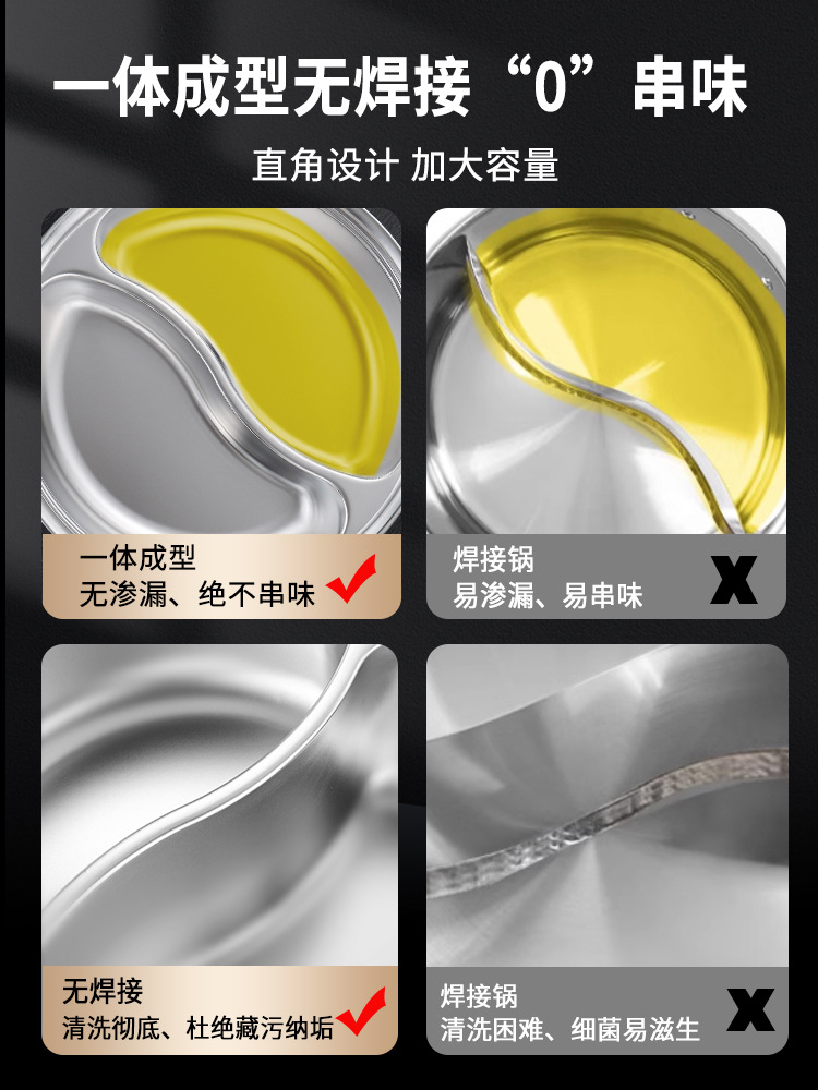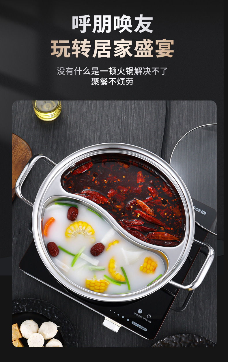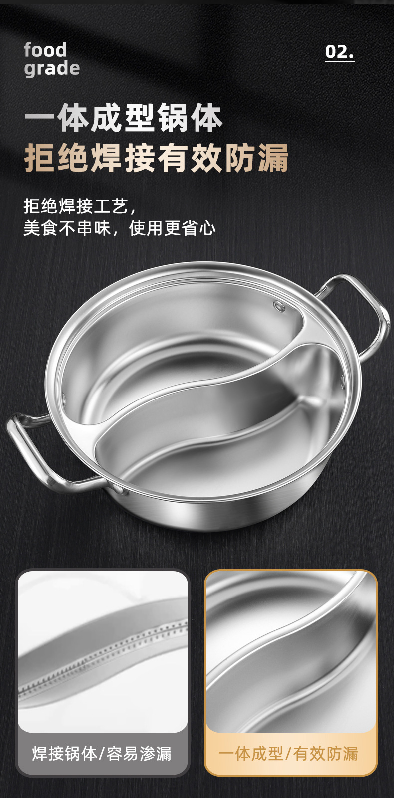 不锈钢鸳鸯大容量汤锅专用盆电磁炉火锅 火锅家用加厚鸳鸯锅