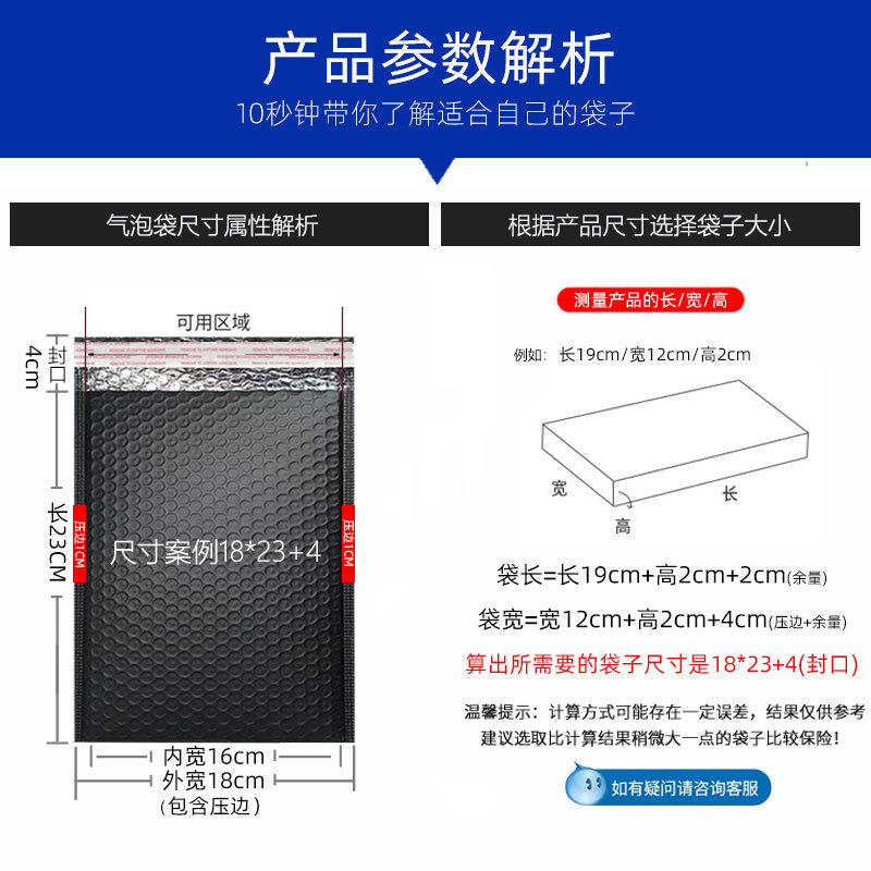 黑色共挤膜气泡袋 防震泡沫袋子 快递打包袋加厚泡泡袋自粘袋