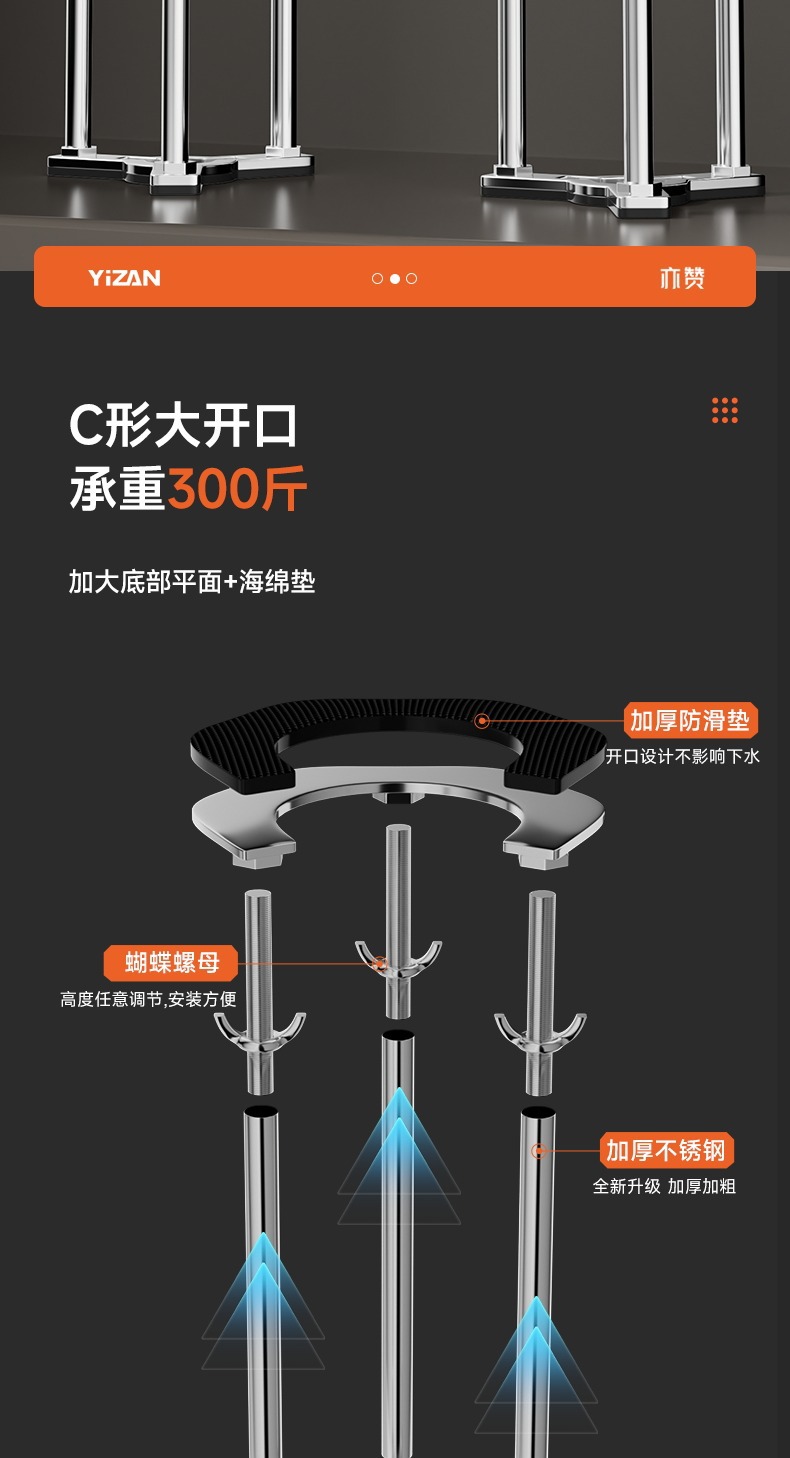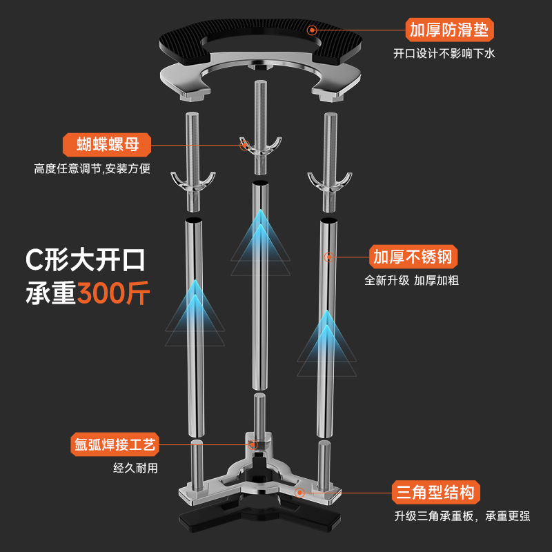 台下盆支撑架厨房水槽洗菜盆不锈钢支撑杆支架洗手盆托架固定专用