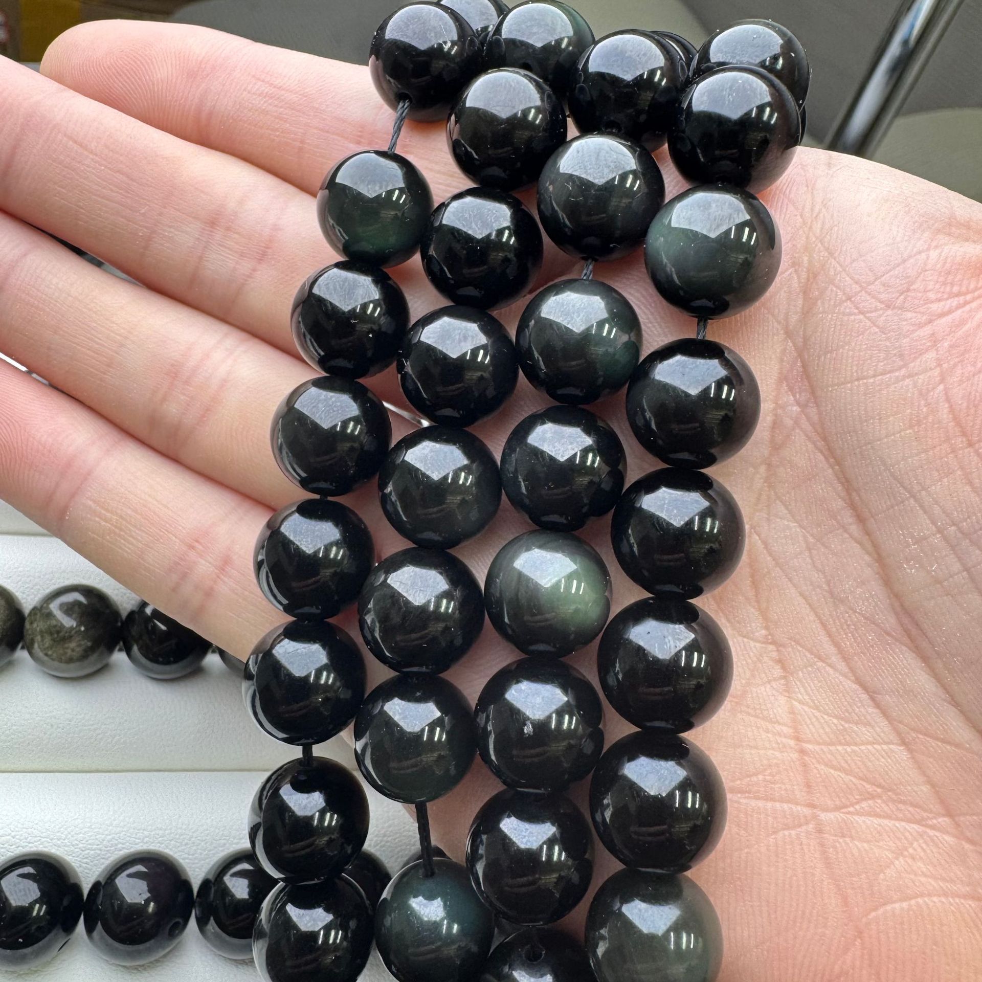 天然黑曜石金曜石散珠银曜石散珠子配珠水晶散珠diy手串配件批发