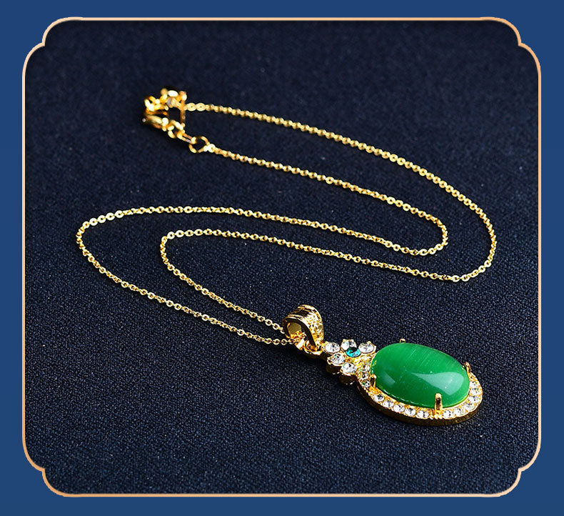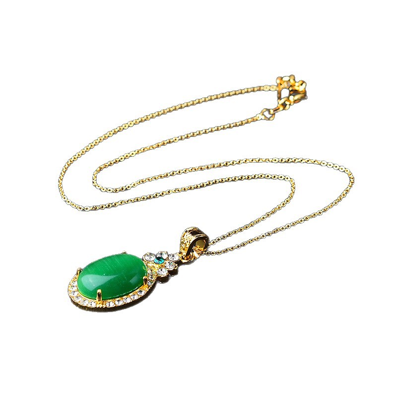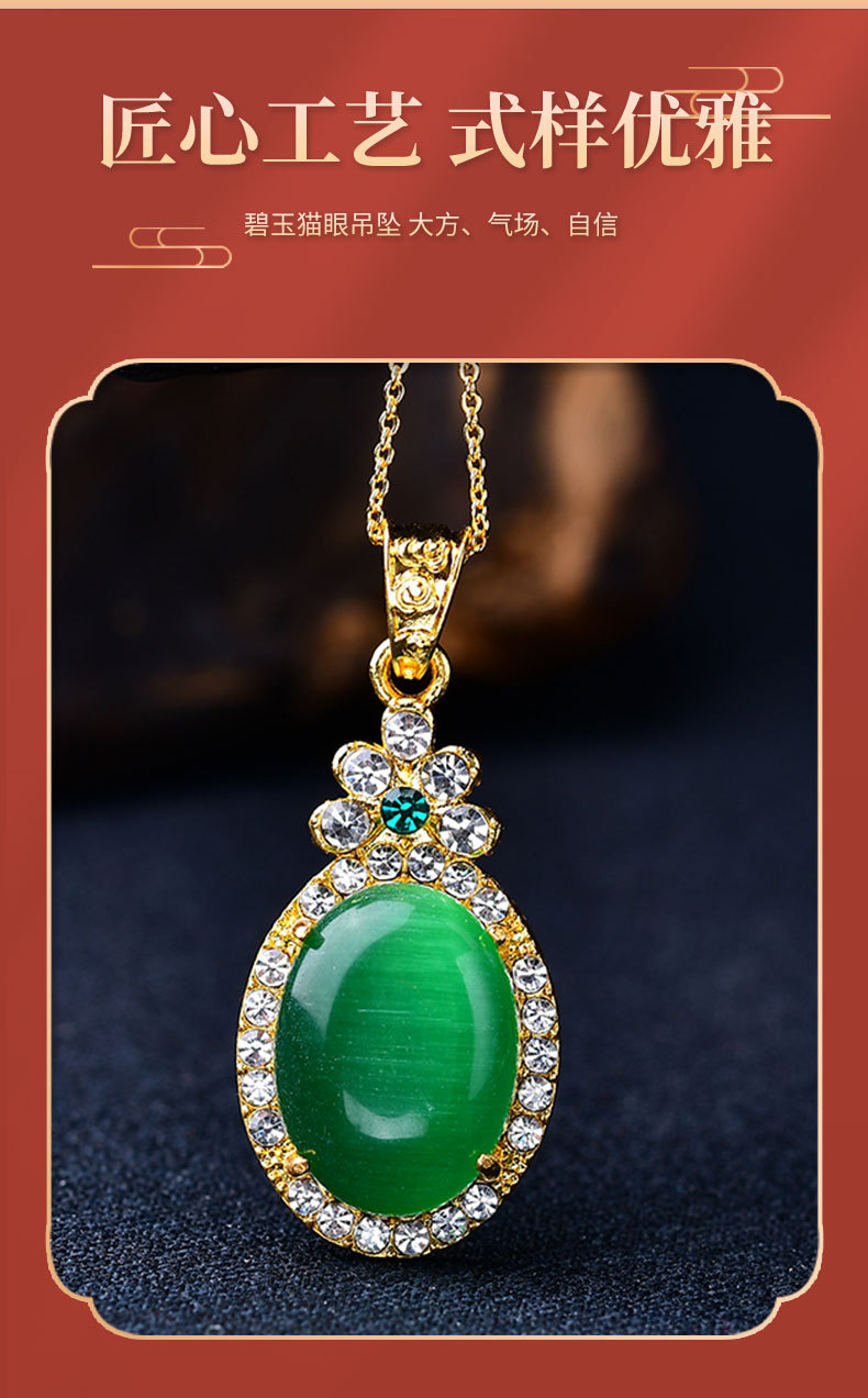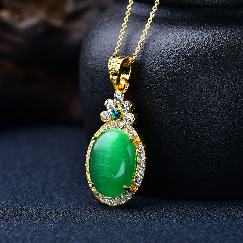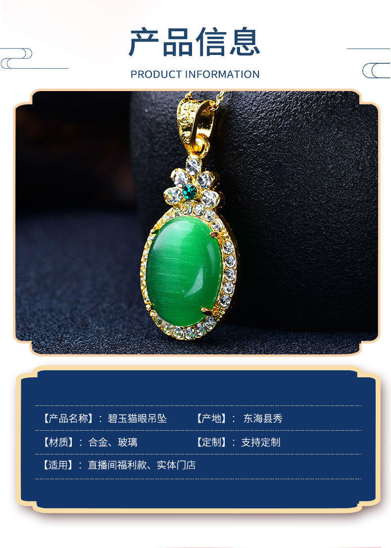 猫眼项链吊坠椭圆形满钻金镶玉饰品挂件男女挂饰工厂批发旋转吊坠