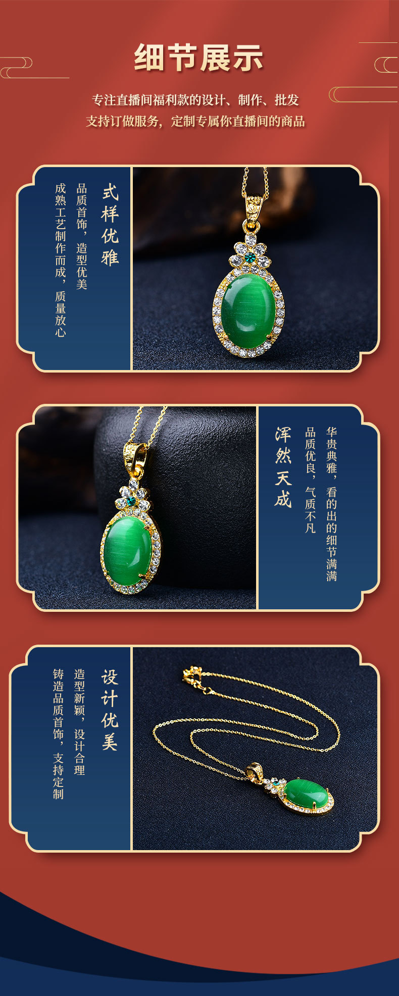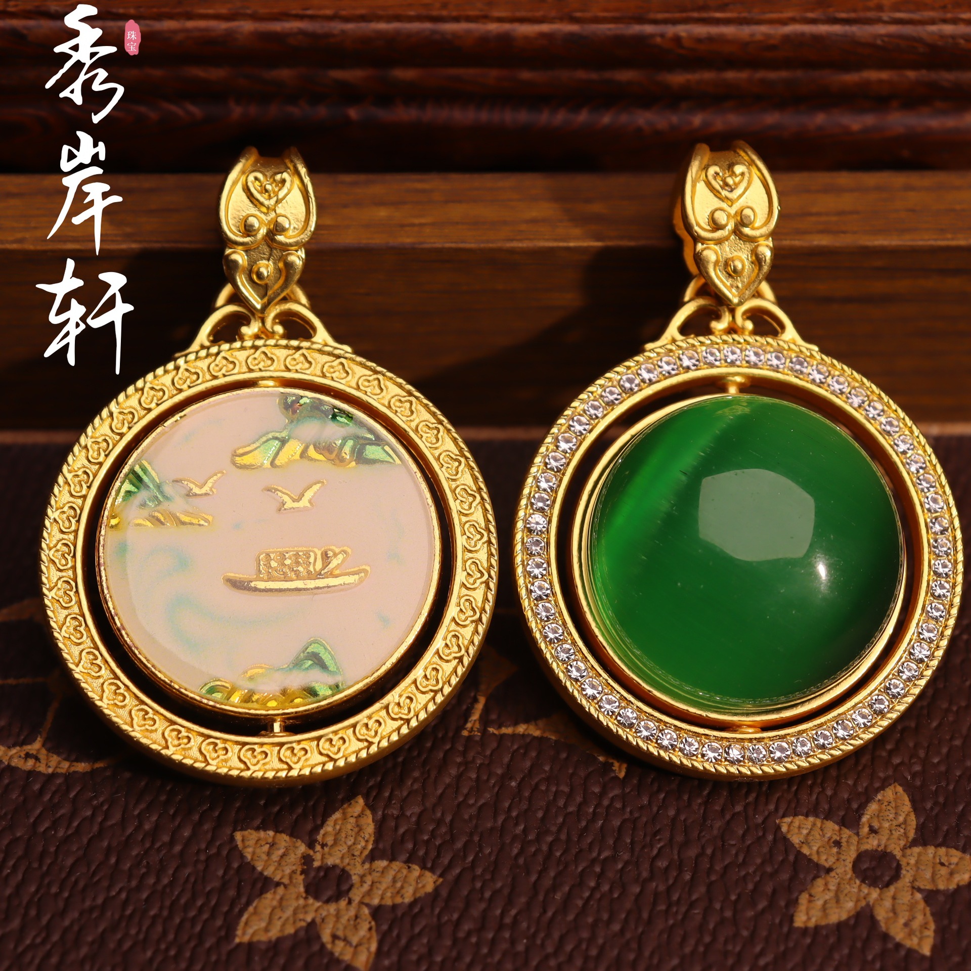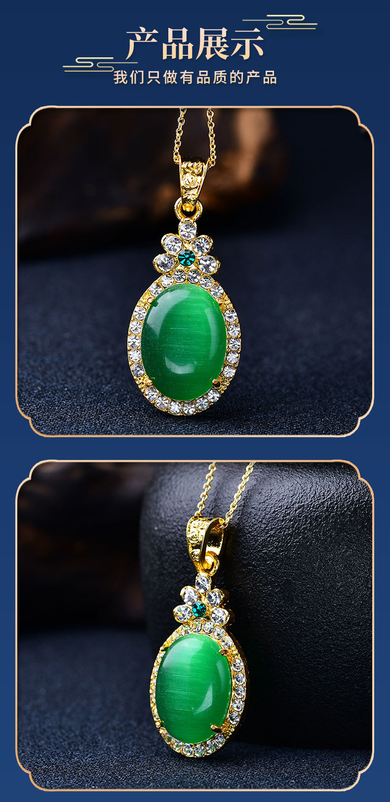猫眼项链吊坠椭圆形满钻金镶玉饰品挂件男女挂饰工厂批发旋转吊坠