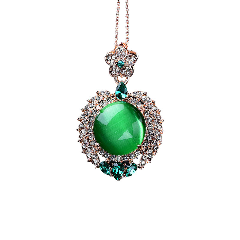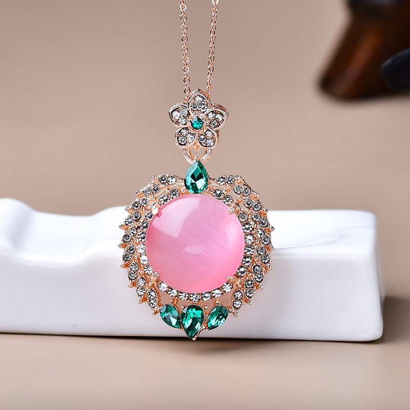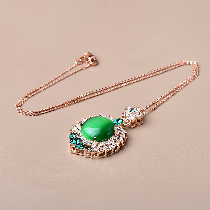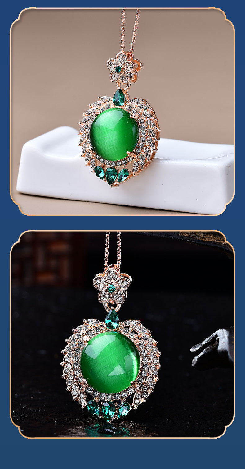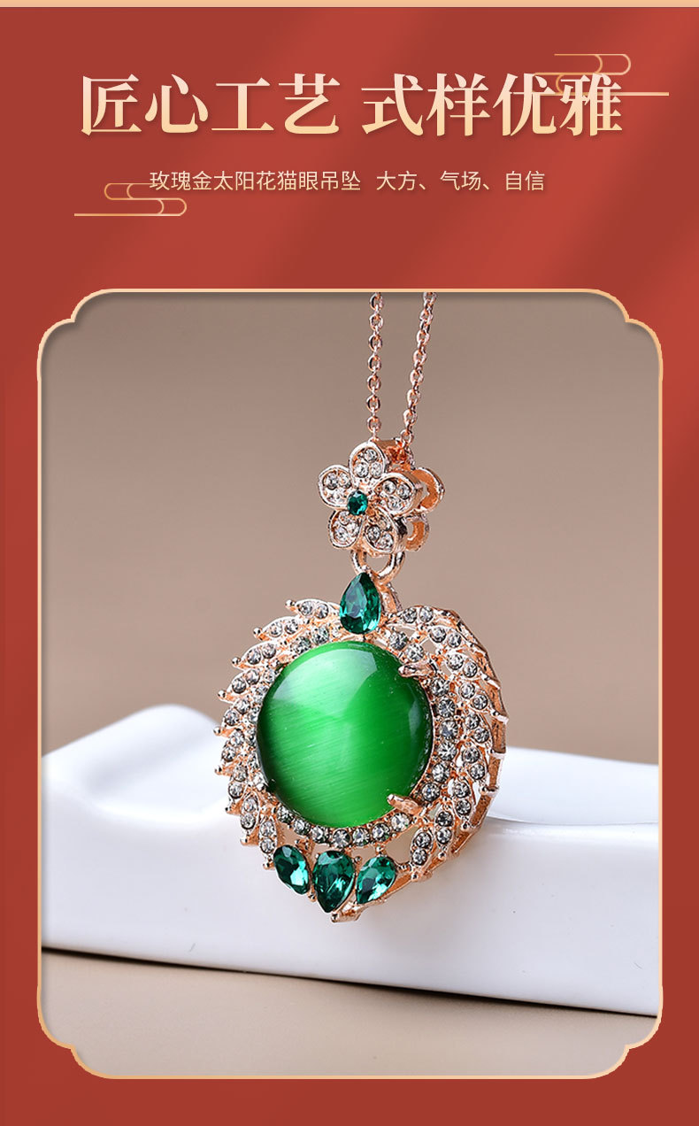 饰品满钻镶嵌太阳花碧玉猫眼吊坠项链直播引流现货爆款锆石叠戴