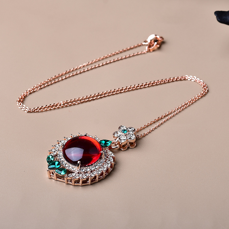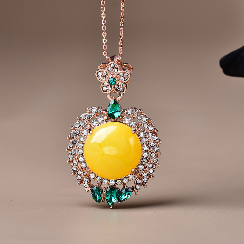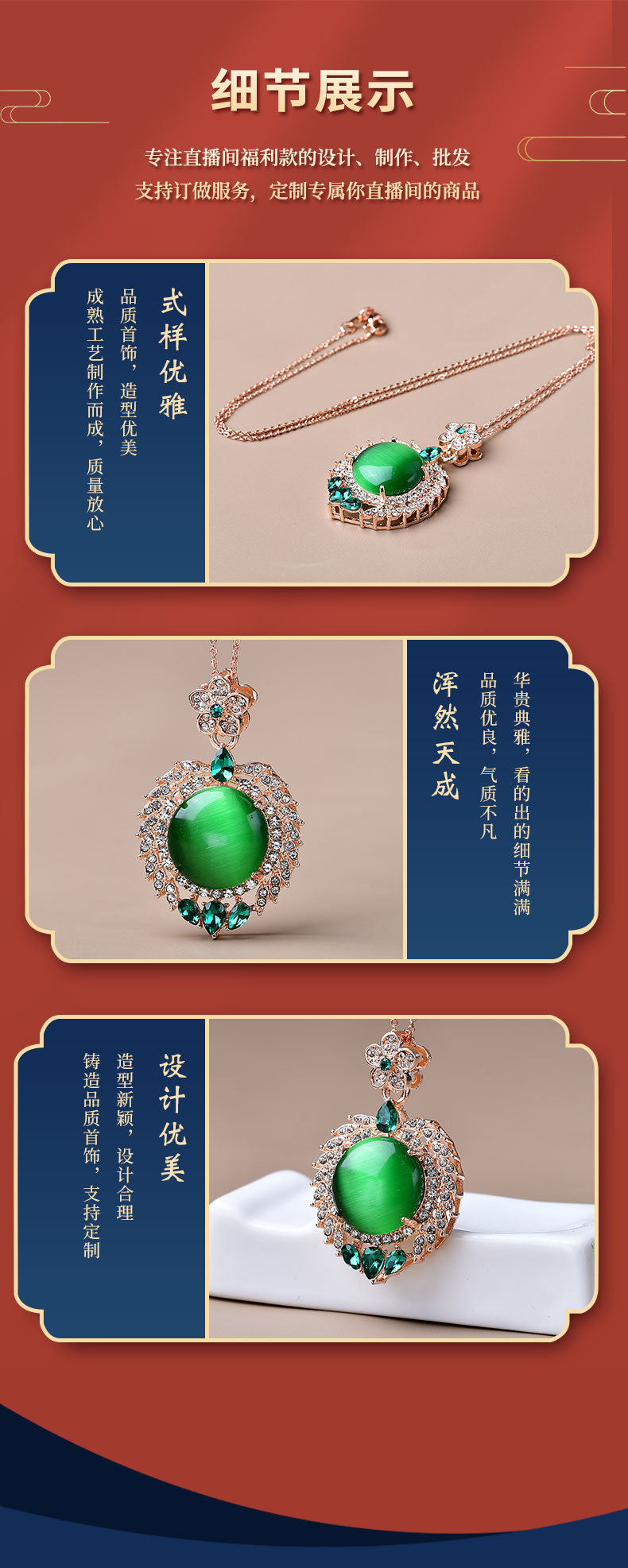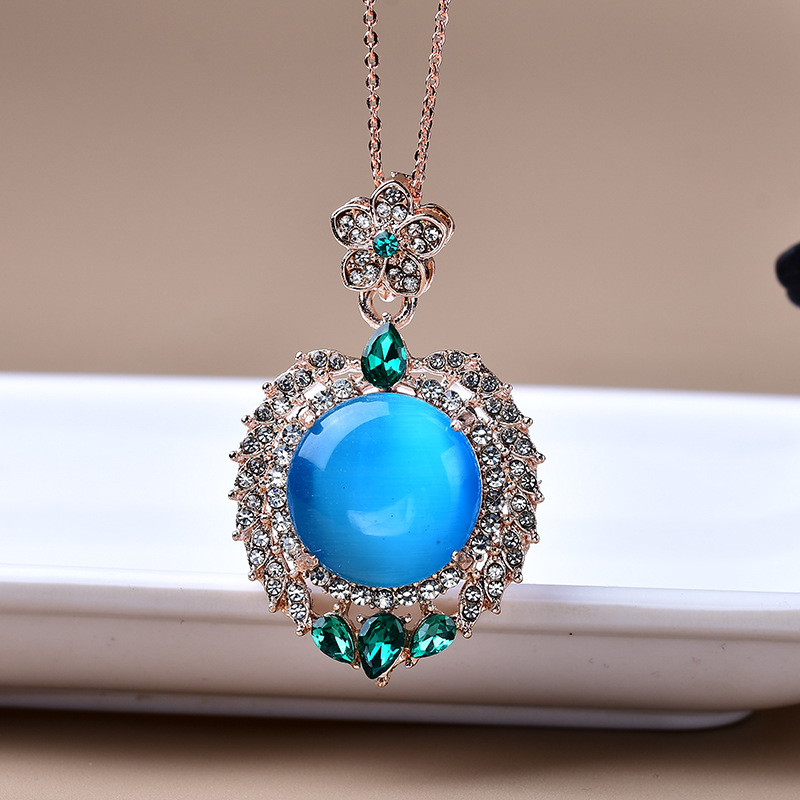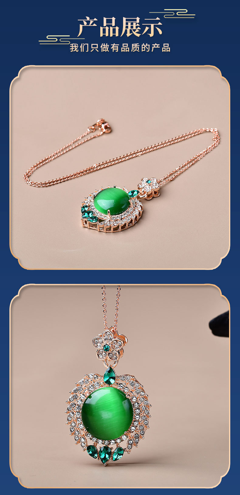 饰品满钻镶嵌太阳花碧玉猫眼吊坠项链直播引流现货爆款锆石叠戴