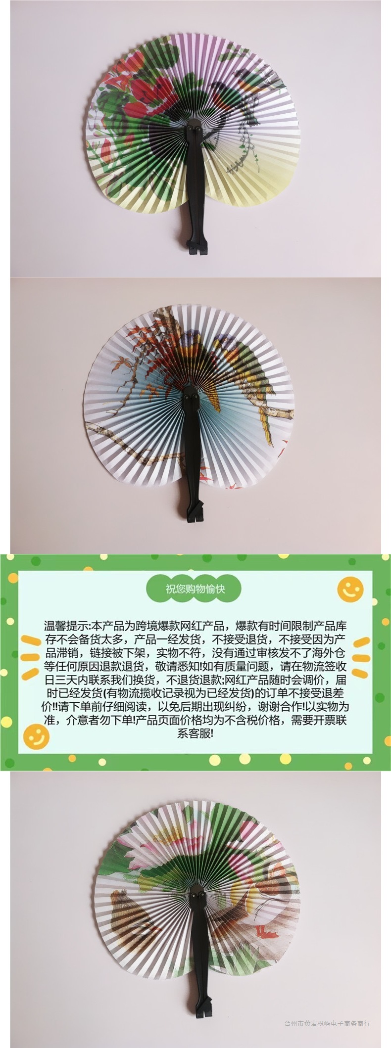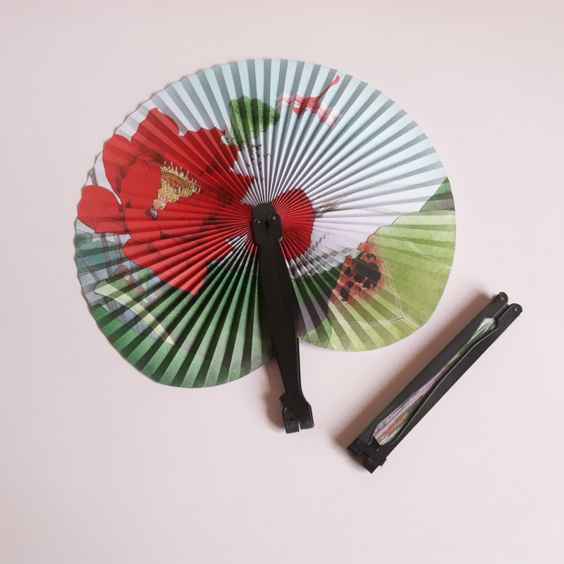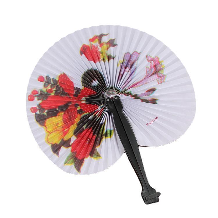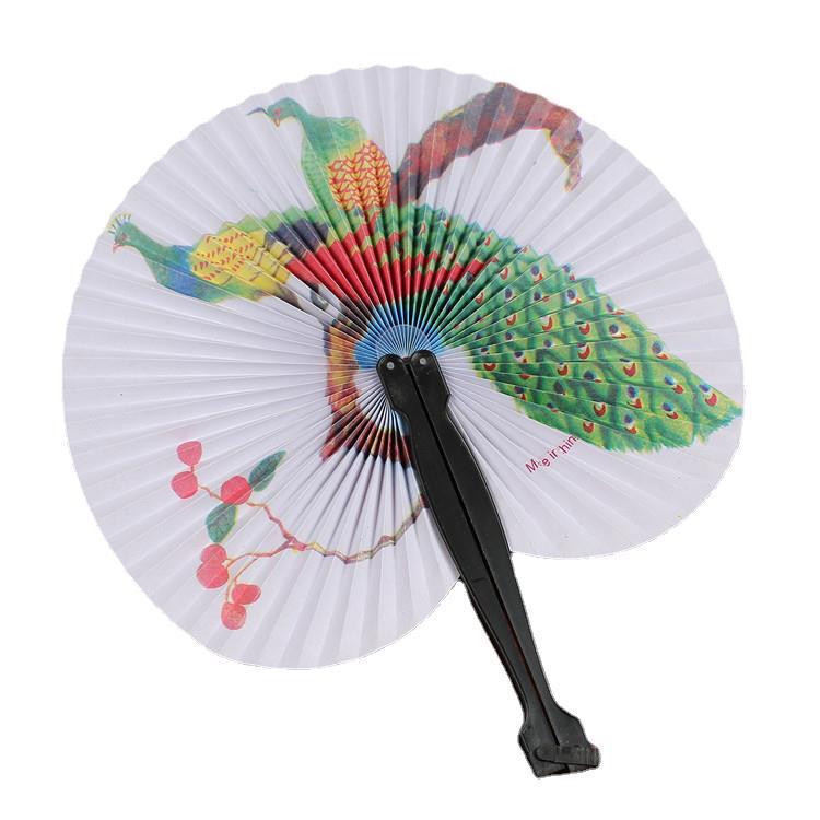 厂家直销旅行扇中国风迷你小圆纸扇折扇花鸟山水画折叠扇塑料纸扇