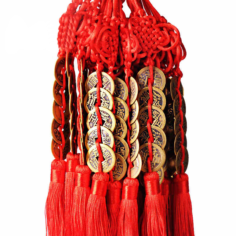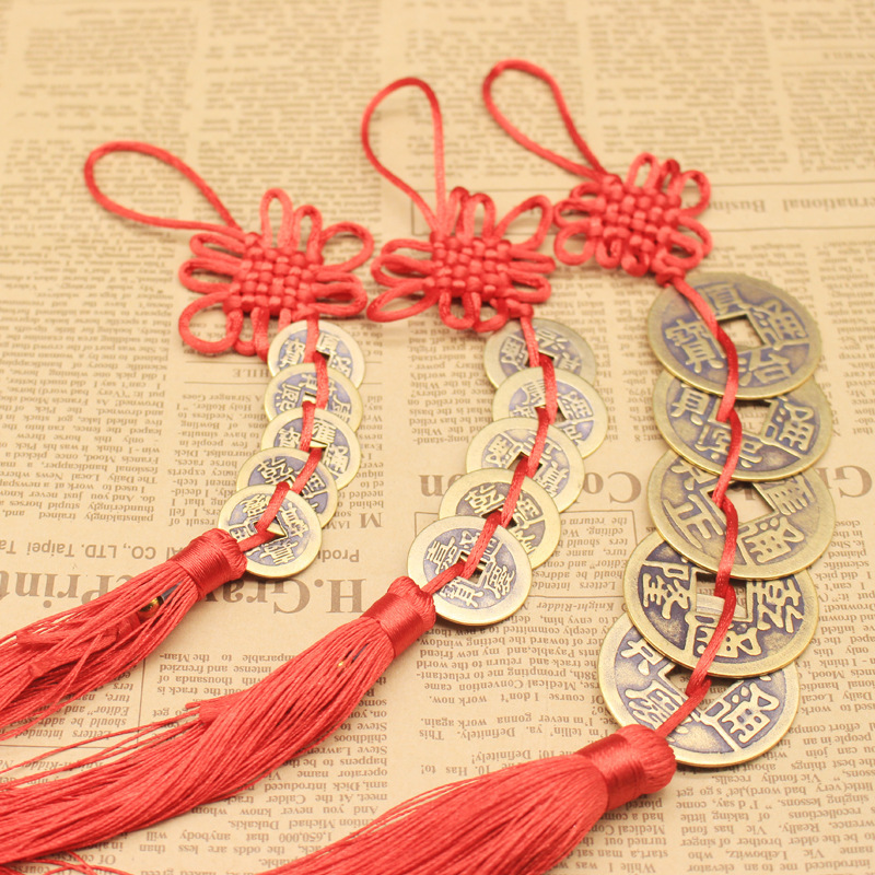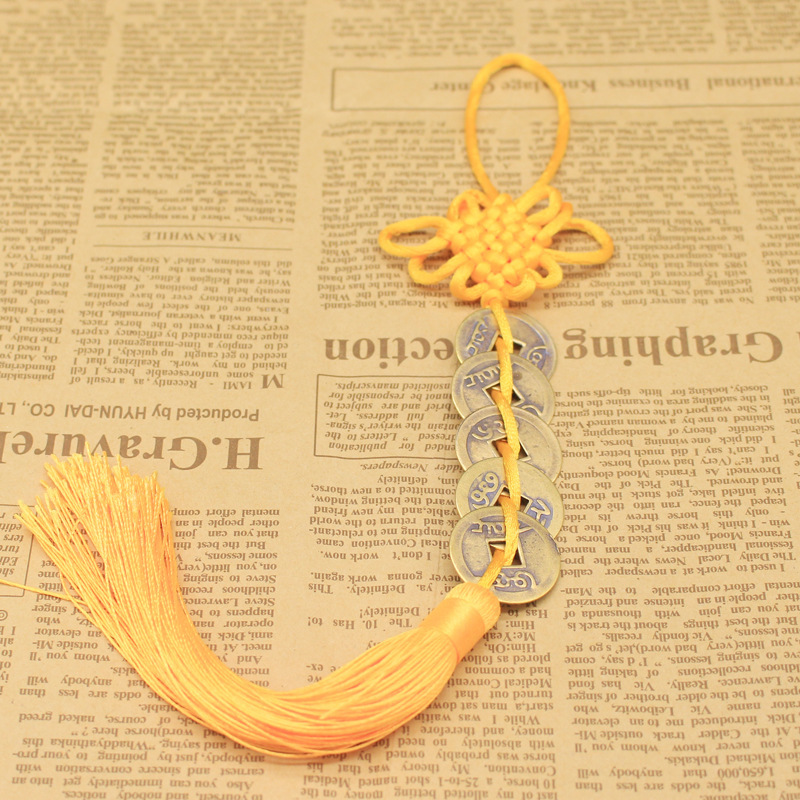 五帝钱挂件真铜装饰车载内饰汽车吊坠后中国结六帝铜钱纯铜摆地摊