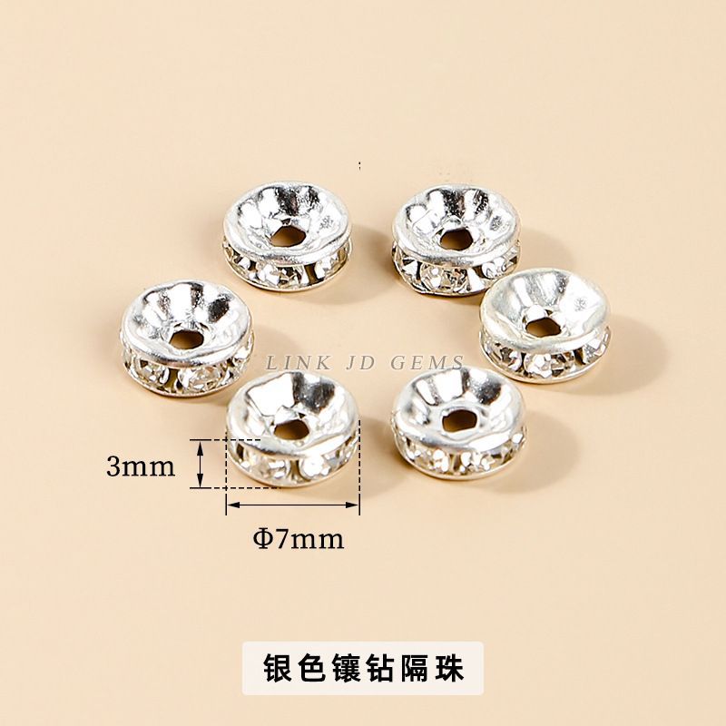 藏银锌合金圆片镶钻隔珠配件 算盘珠手工diy手链饰品配件散珠批发