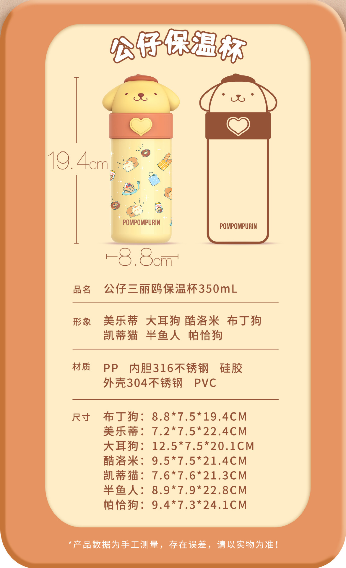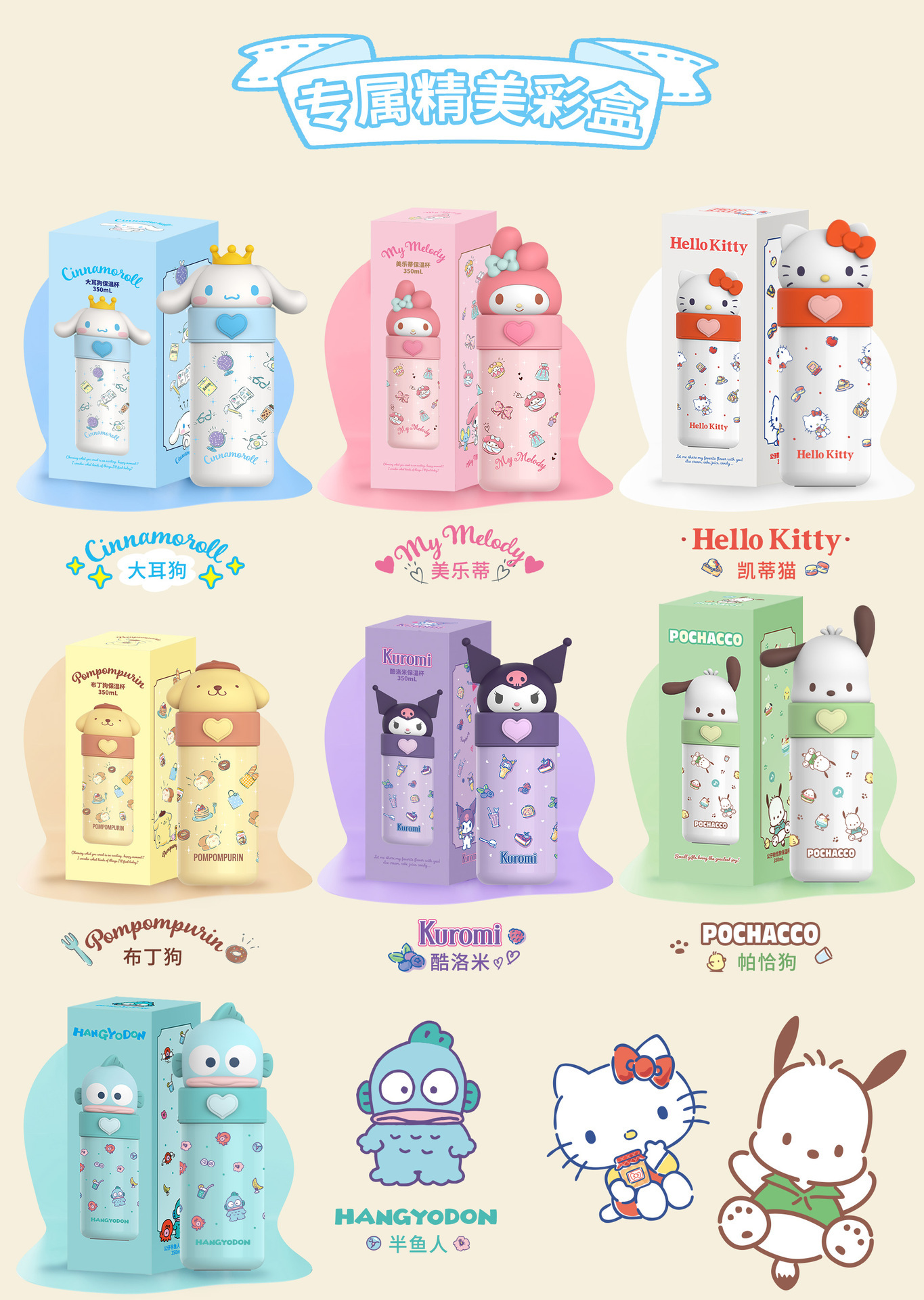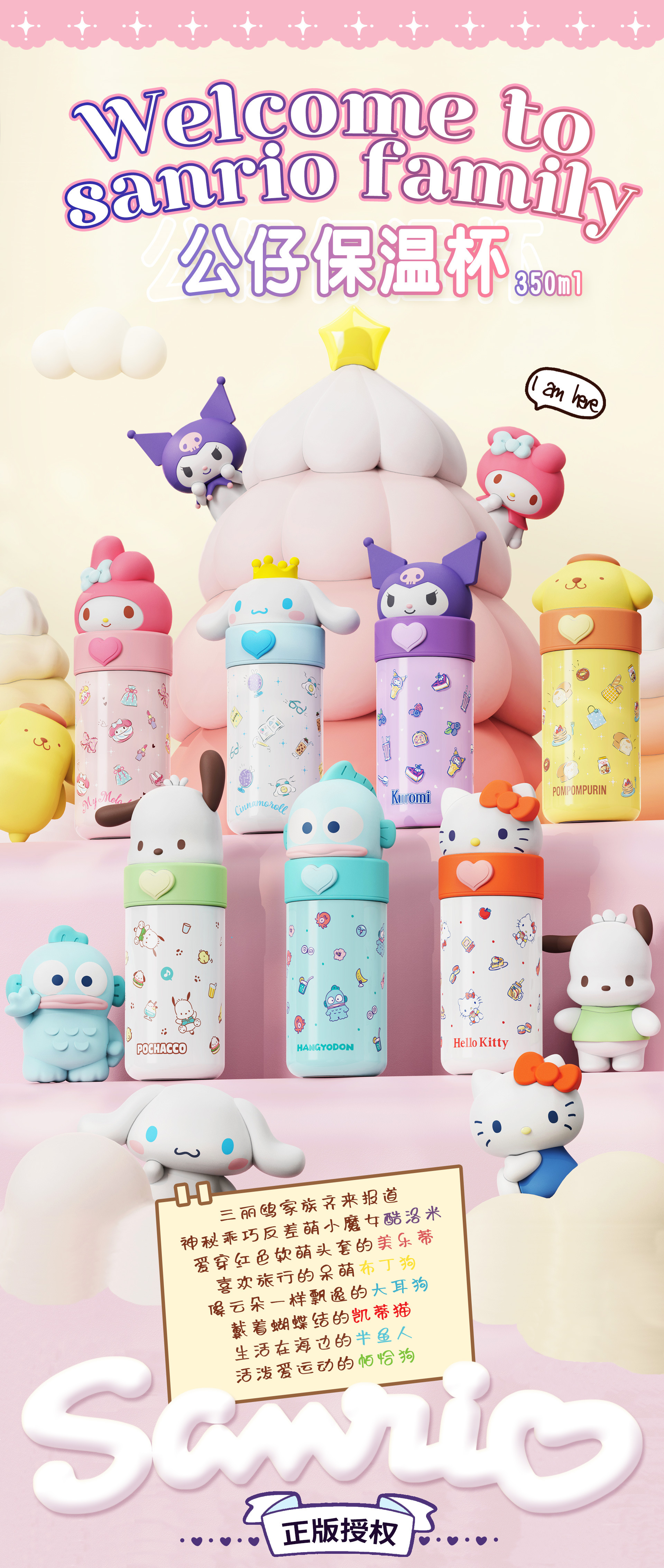 正版三丽鸥保温杯便携口袋保温杯学生上学水杯车载办公室杯子卡通